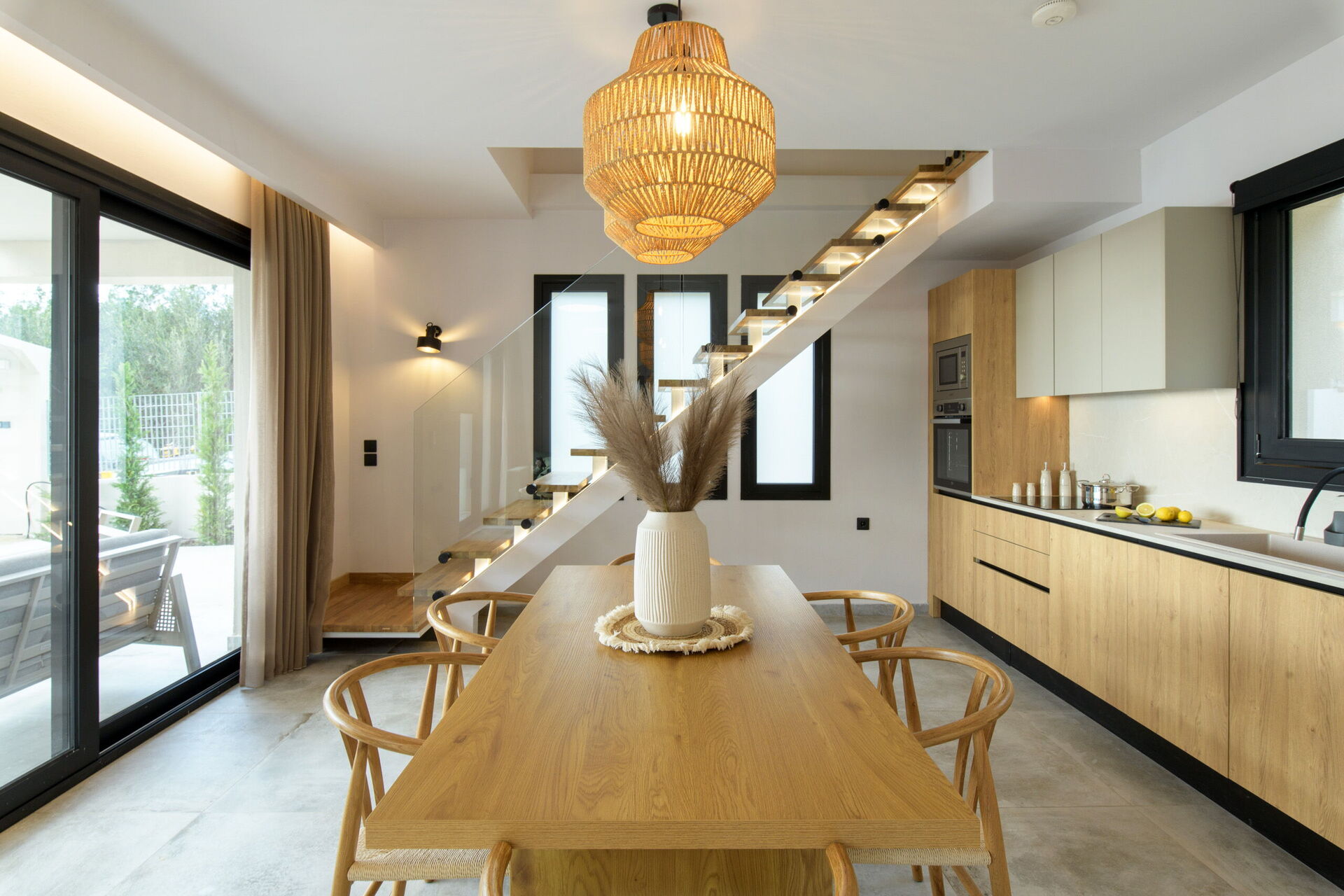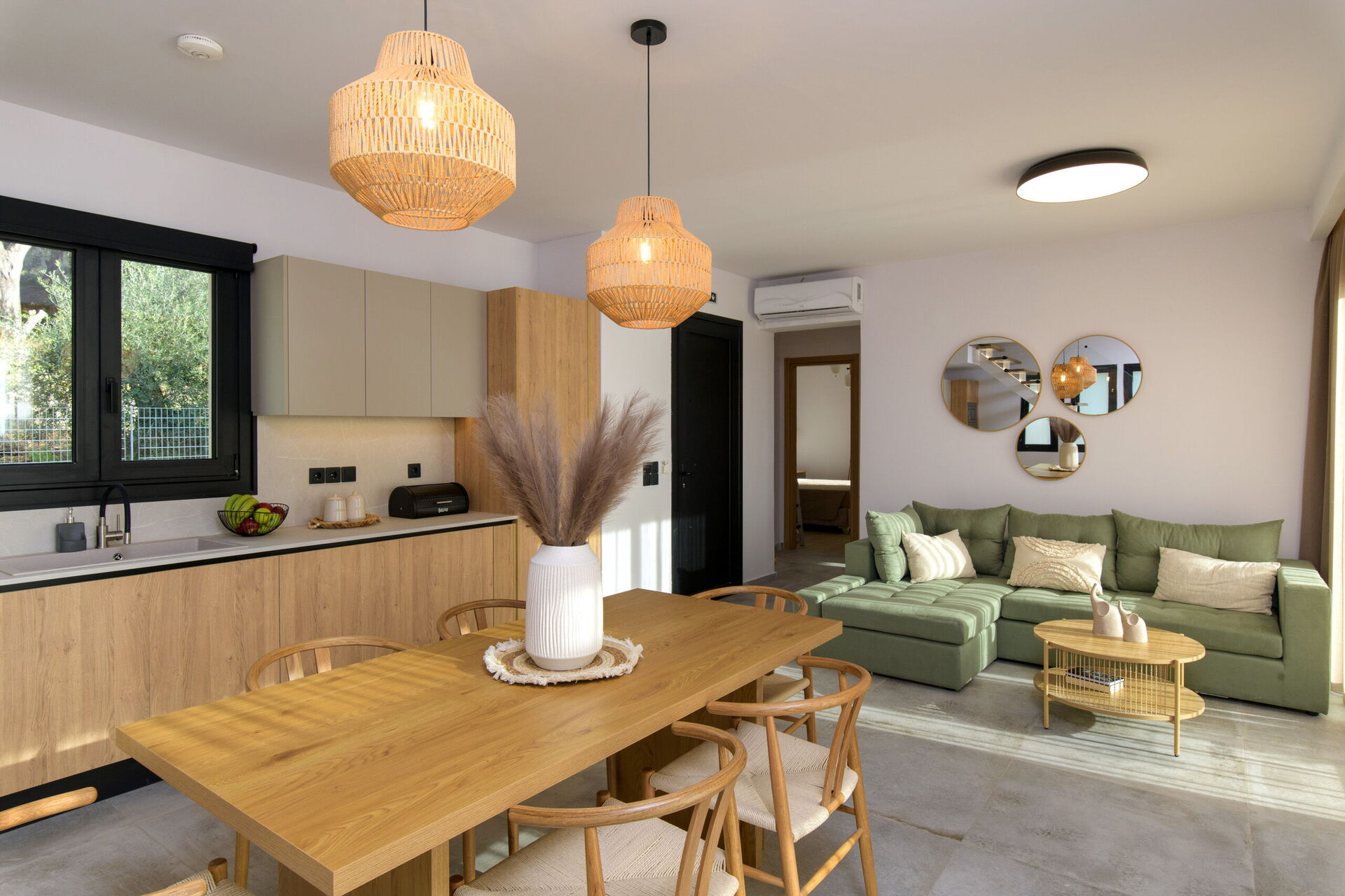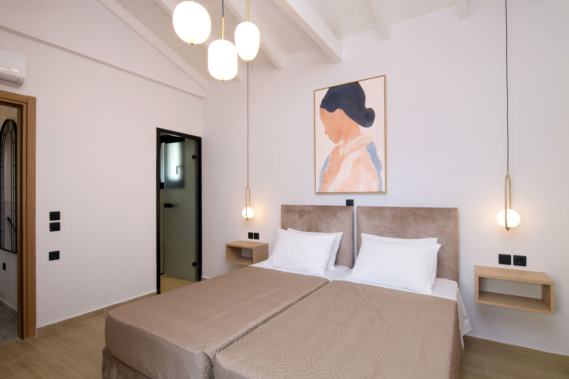 Dank ihrer Lage bietet diese wunderschöne Ferienvilla mit Schwimmbad auf Korfu einen fantastischen und erholsamen Aufenthalt mit Freunden oder der Familie. Die drei modern und geschmackvoll eingerichteten Schlafzimmer bieten Platz für bis zu sechs Gäste. Jedes Detail wurde mit viel Liebe zum Detail gestaltet, und die stetige Meeresbrise sorgt für eine erfrischende Atmosphäre, die selbst die heißesten Stunden des griechischen Sommers angenehm macht. Das Herzstück des Aufenthalts im Freien ist der großzügige Schwimmbadbereich, der zum Entspannen für die ganze Familie einlädt. Der Panorama-Außenbereich bietet mit Grillplatz und möblierter Sonnenterrasse ideale Plätze für gesellige Abendessen bei Sonnenuntergang.