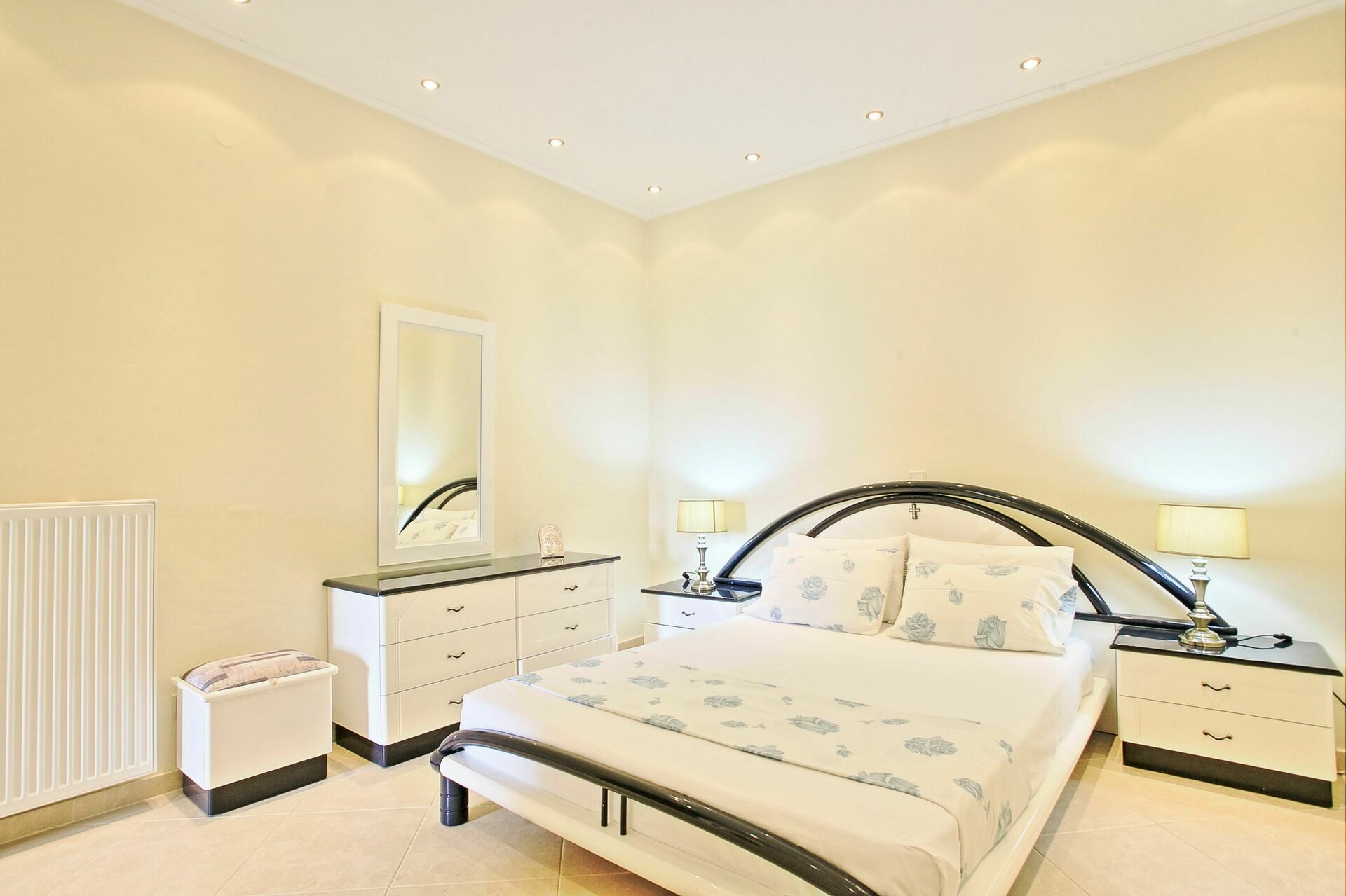 Location was just perfect - despite being less than 5 min walk from the main road and supermarket (and icecream shop !!) the property is very quiet and secluded. 10 min walk to good beach with enough tavernas to cover a week's stay ! Our family stayed here, our 3 children and their 3 kiddies - such a wonderful house for us all.
