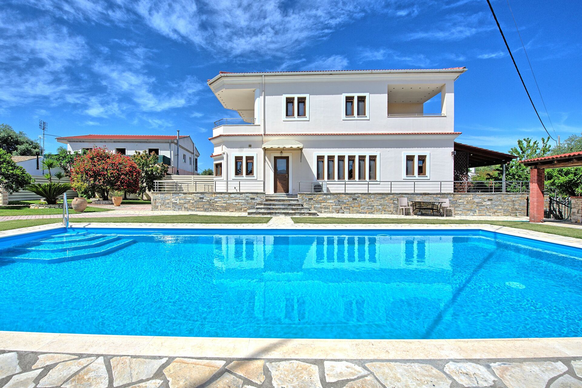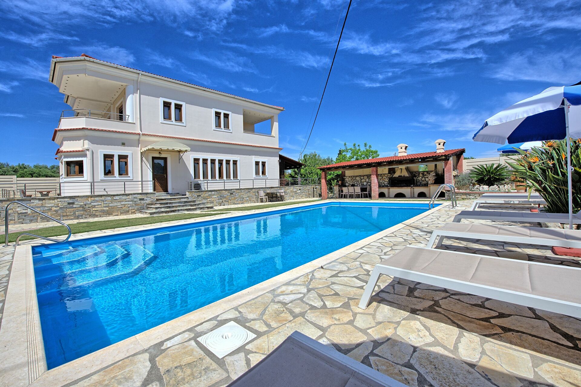 6 adults and 4 children aged 6 to 14 stayed here and we had a fabulous time. As said before supermarkets tavernas and the wonderful wide bay which is amazing for swimming is all very easily accessible. The owners live next door and therefore it is easy to contact them with any queries. We enjoyed the pool which is a great size for swimming and surrounding area with its barbecue and pizza oven. The house is large airy and air conditioned. Would recommend.