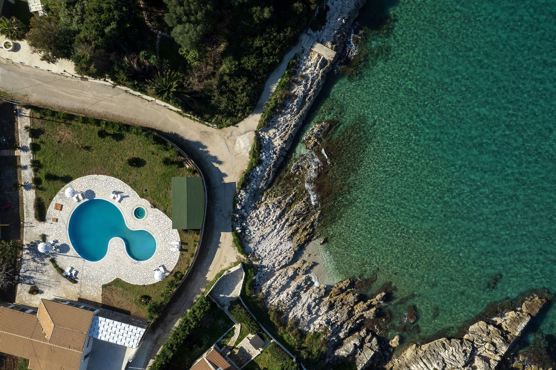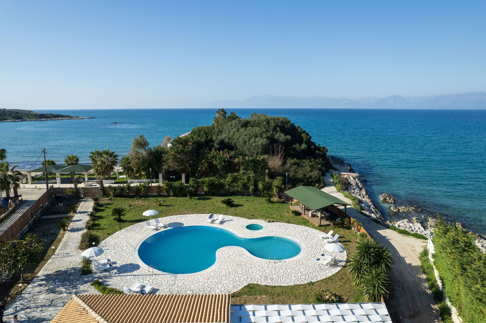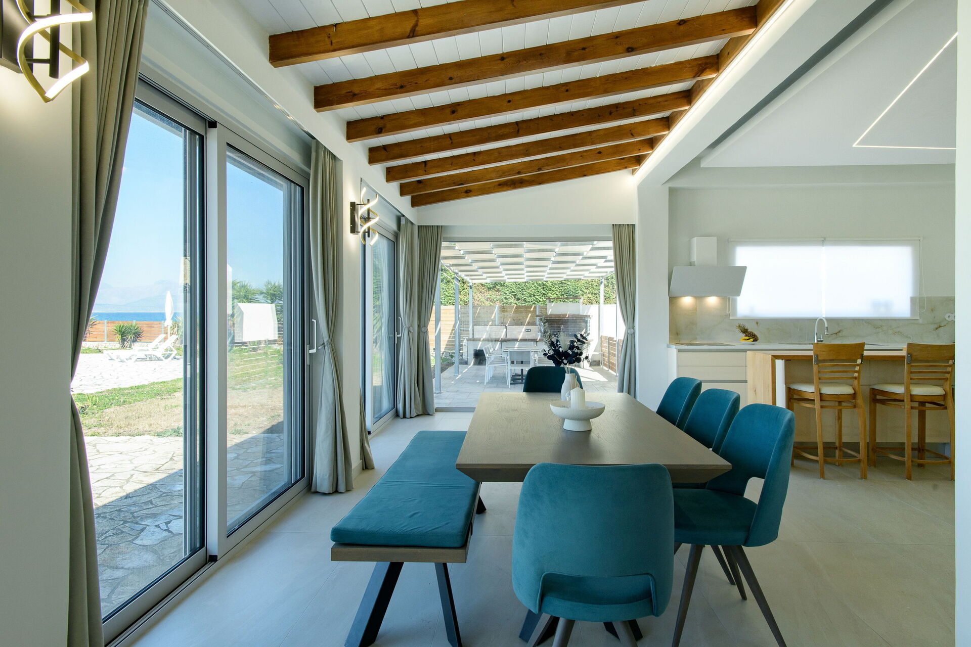 Villa Aurora Blue ist eine wunderschöne Villa mit privatem Schwimmbad, nur etwa zehn Meter vom Meer und dem Strand von San Spyridion auf Korfu entfernt.