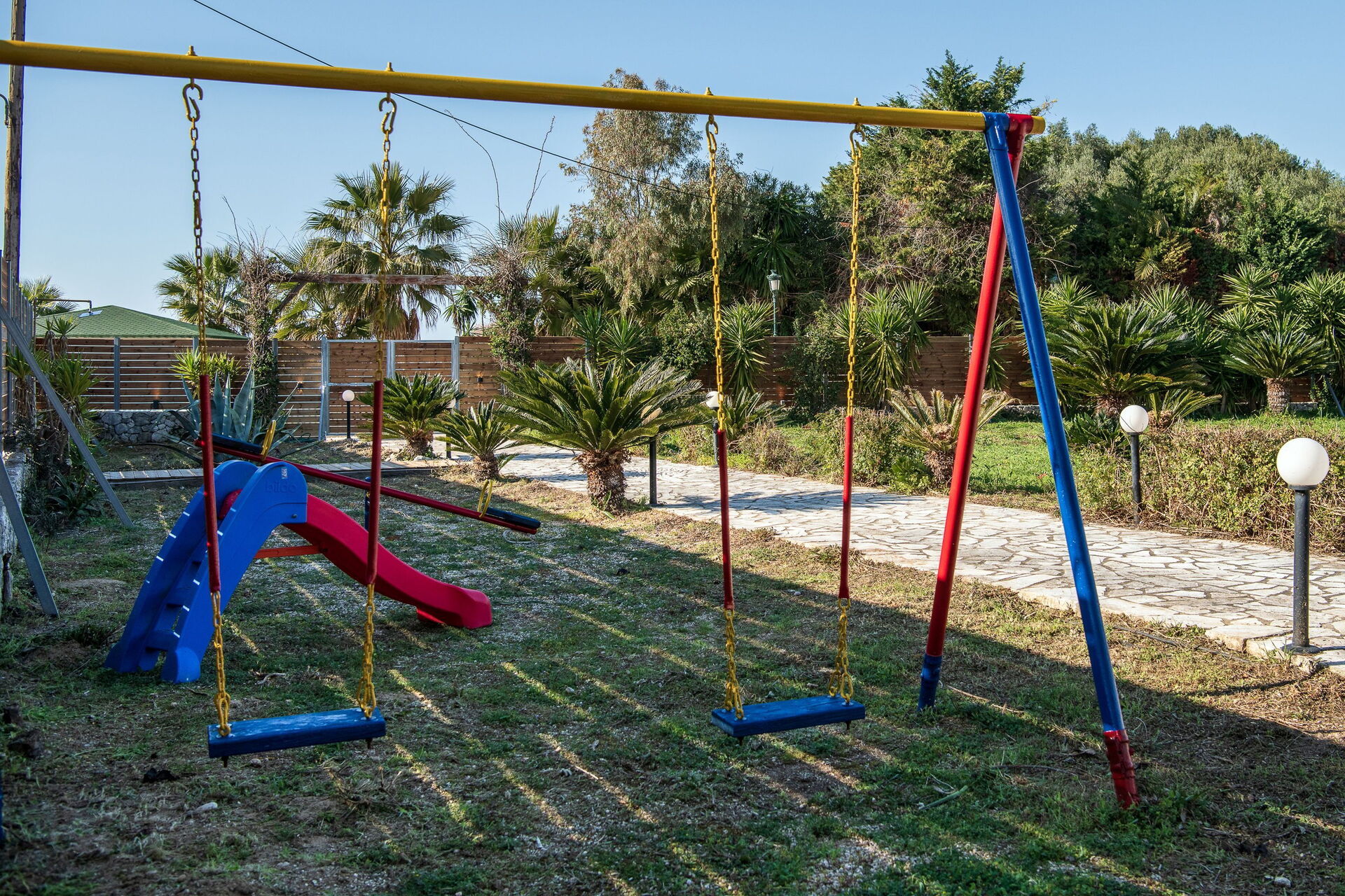 Entfernungen: nächster Strand (San Spyridon) 30 m, Taverne 50 m, Supermarkt 500 m, Acharavi 6 km, Kassiopi 8 km, Sidari 18 km, Korfu-Stadt (Flughafen) 38 km.