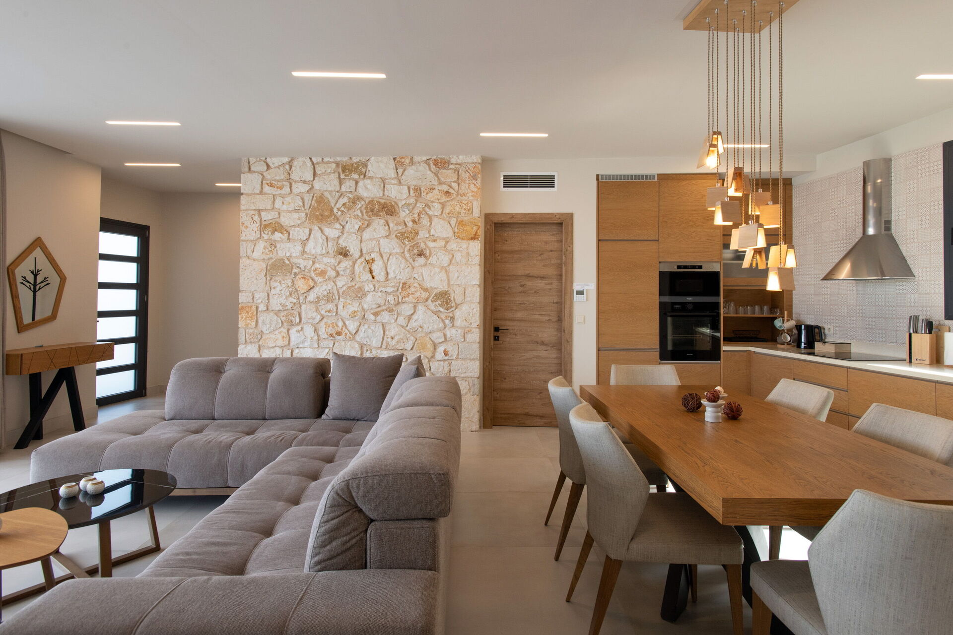 A wonderful large modern and luxurious house. Perfect for 3 couples. High standard villa. Equipped with everything and even more than you need. A huge terrace with a pleasant view and a swimming pool. Very calm and quiet neighborhood. I rate this place 11/10 :) If you come there you won't be disappointed.