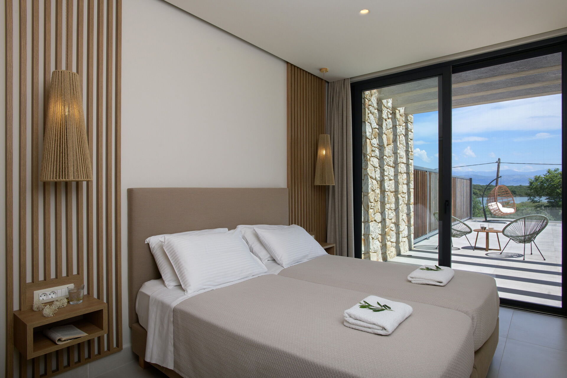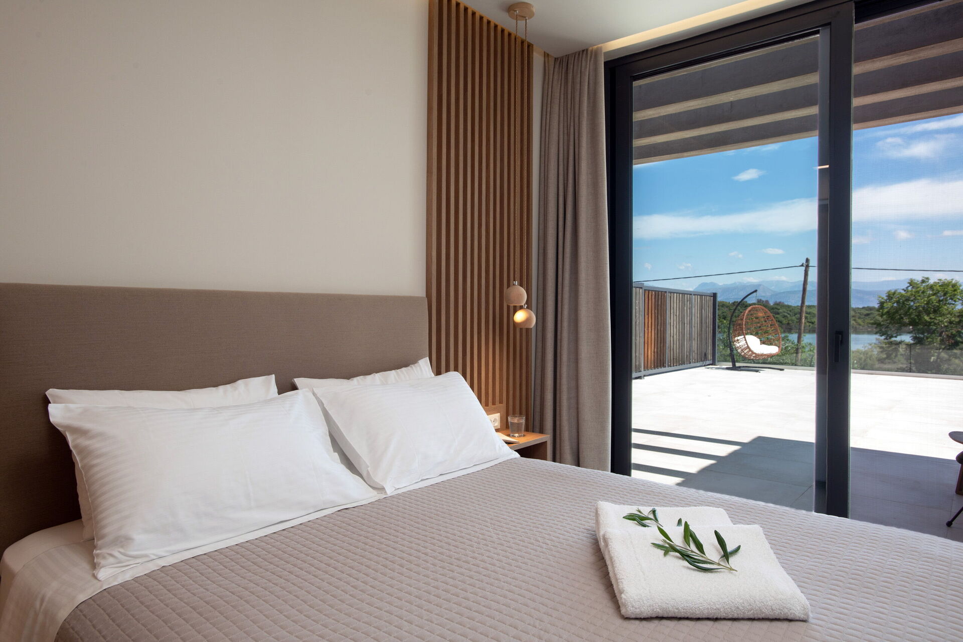 The villa is in a beautiful, quiet location with lovely views of the lagoon, the sea, and the surrounding mountains. It feels completely surrounded by nature, yet it’s only a short distance from the village. We enjoyed an amazing sunrise from there and beautiful sky during sunset. The house is spacious, modern, and well-maintained, with each bedroom having its own bathroom. It’s also close to many wonderful beaches and interesting places to explore, all within a short drive. The host was very nice and welcoming. It’s definitely a place I would be happy to come back to.