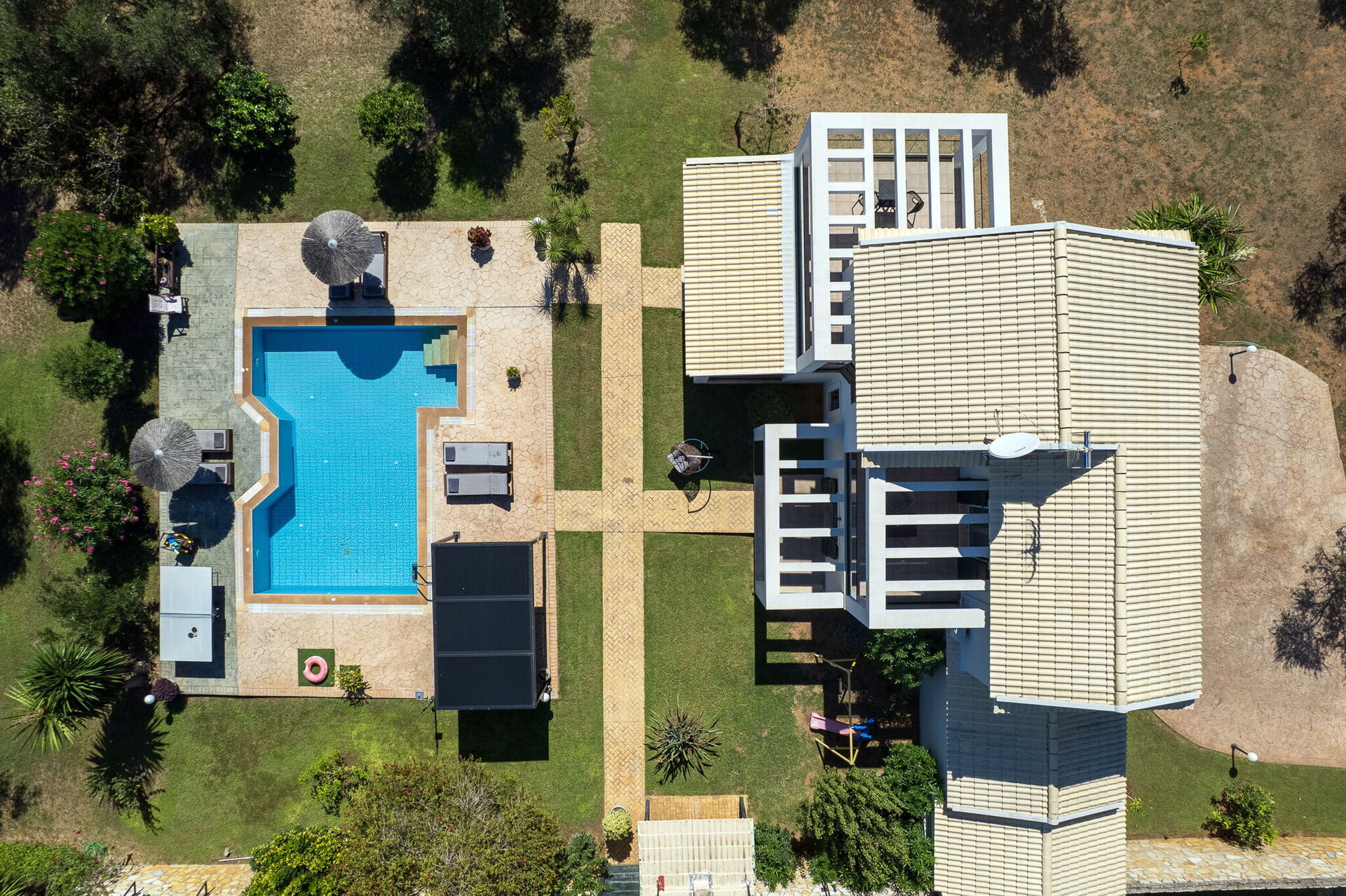 - Privates Schwimmbad (10 x 6,5 Meter; Mindesttiefe: 1,60 m; Maximaltiefe 1,00 m)