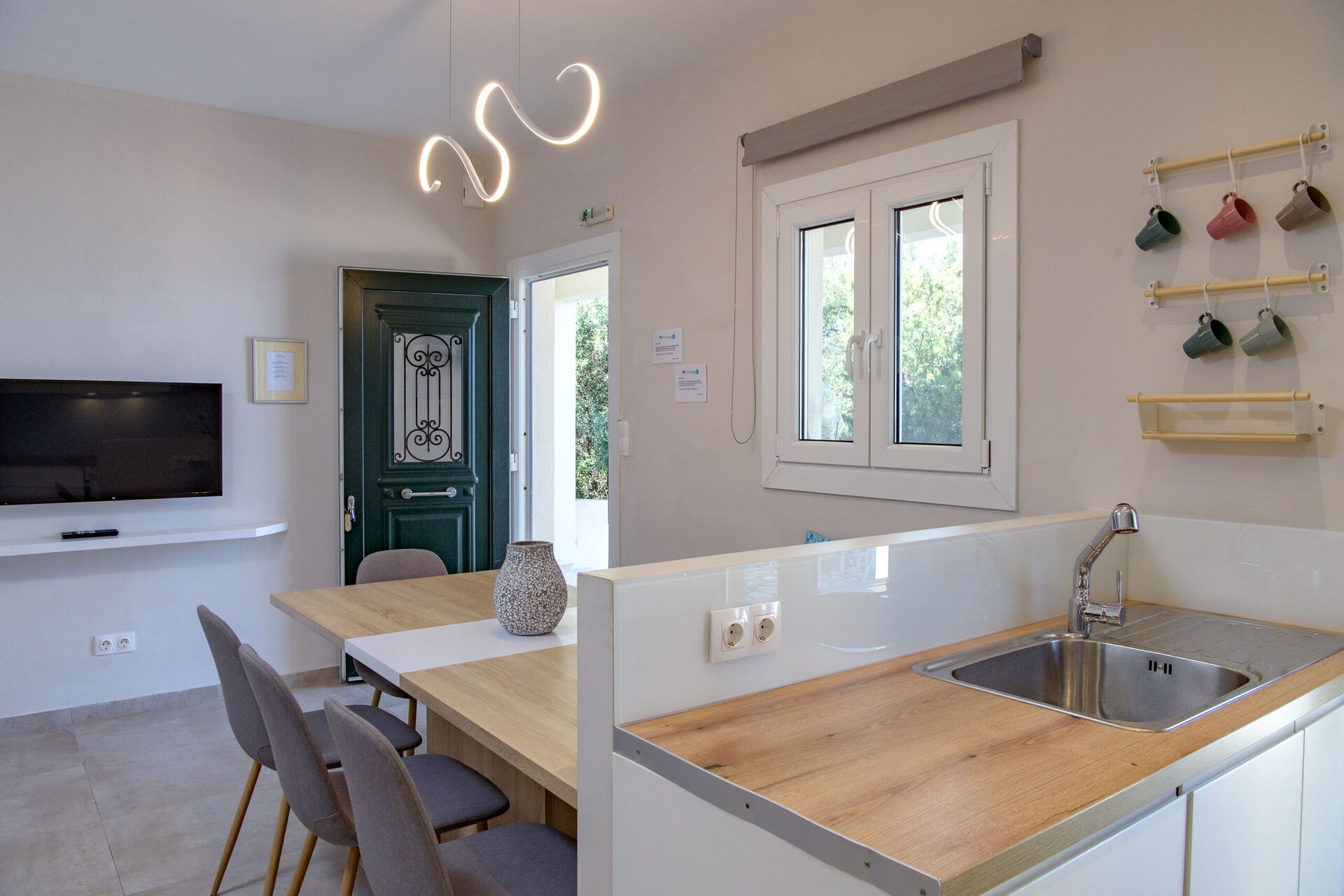 Das Grundstück mit dem super Pool in hervorragender Lage war ideal für uns (8 Erwachsene mit drei Kleinkindern) Wegen des idealen Wetters konnten wir alle Tage und Mahlzeiten draußen verbringen (teilweise im 'Kampf' mit Wespen und Mücken) Anderenfalls hätten wir allerdings Schwierigkeiten gehabt, da im Haus kein geeigneter Raum für Mahlzeiten und gemeinsame Aktivitäten für uns alle gewesen wäre. Der Service wahr sehr freundlich und jederzeit erreichbar. Geeignete Badestellen und unser schnell erkorenes 'Lieblingsrestaurant' waren sehr nah, ein kleiner Laden und etliche weitere Restaurants problemlos zu Fuß erreichbar. Die Küche war sehr schlicht, aber genug Töpfe, Geschirr etc. war vorhanden. Glücklicherweise waren die Fenster mit sehr gutem Insektenschutz ausgerüstet. Die abendliche 'Beschallung' unserer Terrasse durch die Animationen eines nahegelegenen Hotels war nicht unser Fall, hat aber unseren guten Gesamteindruck nicht verdorben. Wir haben die Zeit sehr genossen.