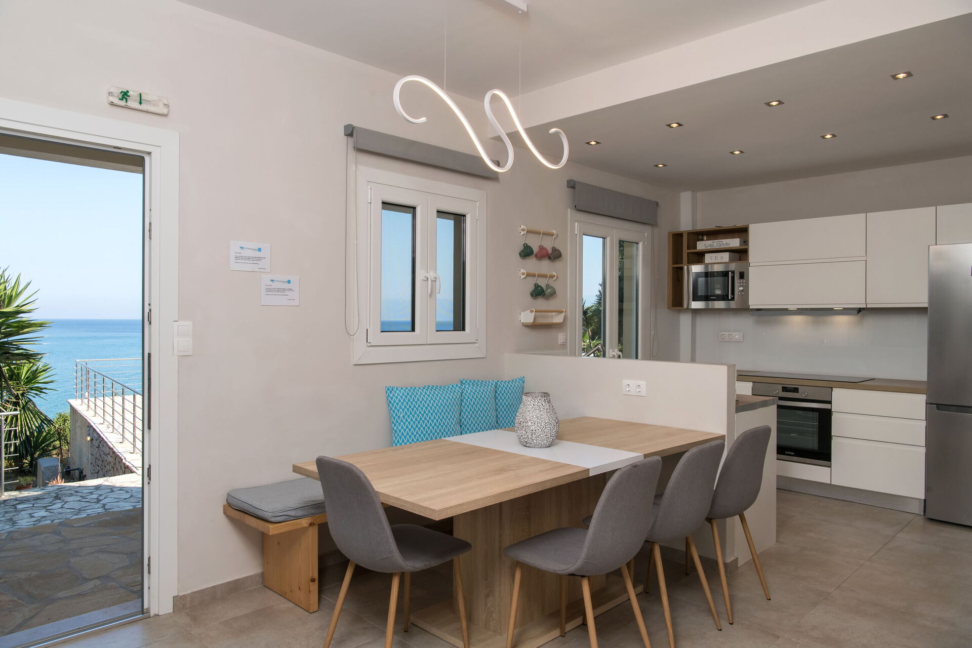 Amazing. Stunning views. It is in a quiet area which we knew. But that suited us. Stunning views and a few restaurants. Locals so friendly. Very steep drive.Dish washer great. Plenty of cutlery and plates etc.The inside is better than the photos.Comfy sun loungers. tasteful decor etc. Perfect. The communal areas inside are small if it rains but there is a covered outside area too.
