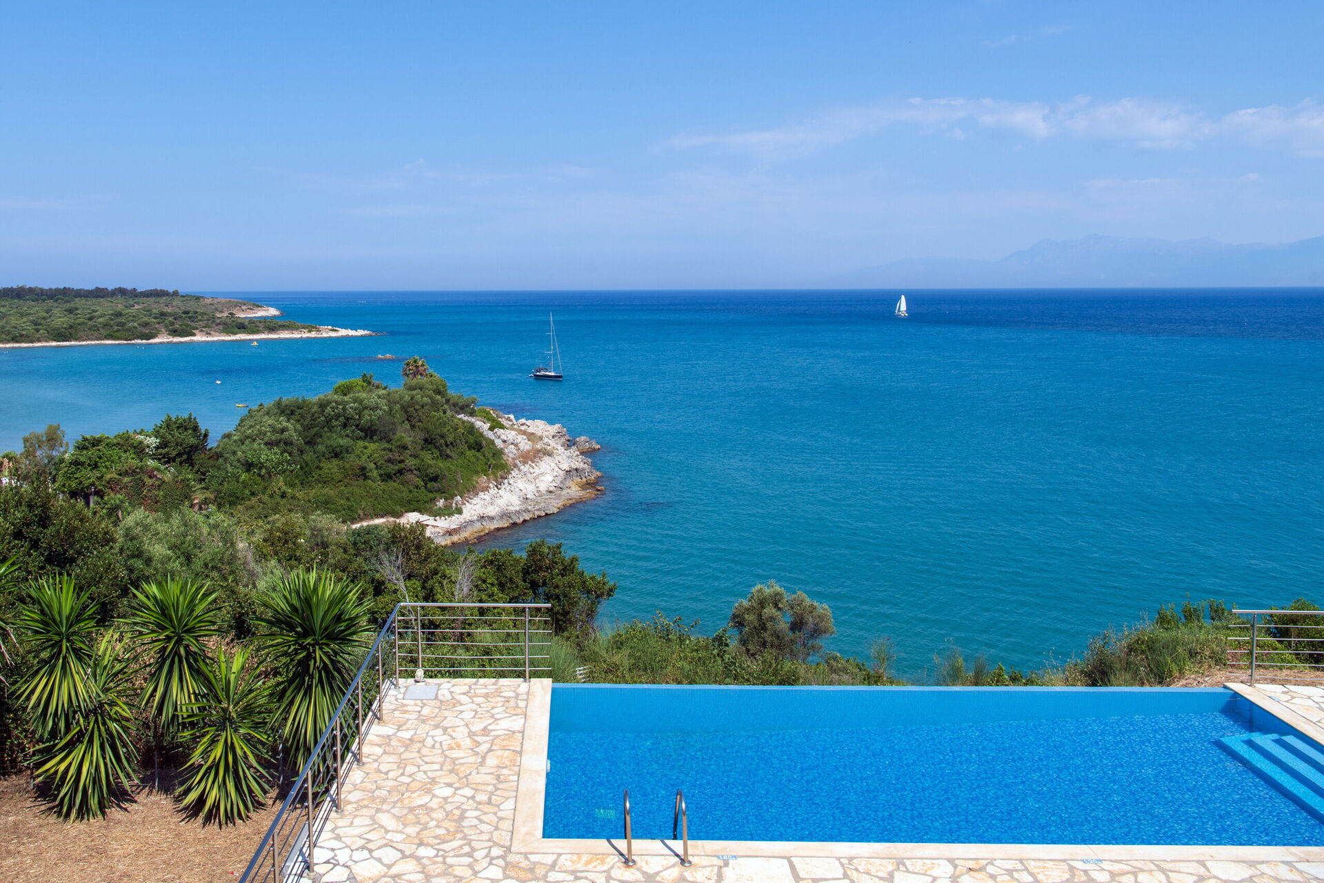 It is set in such a gorgeous setting with the most spectacular view of the bright blue sea and shadows of mountains a distance away.