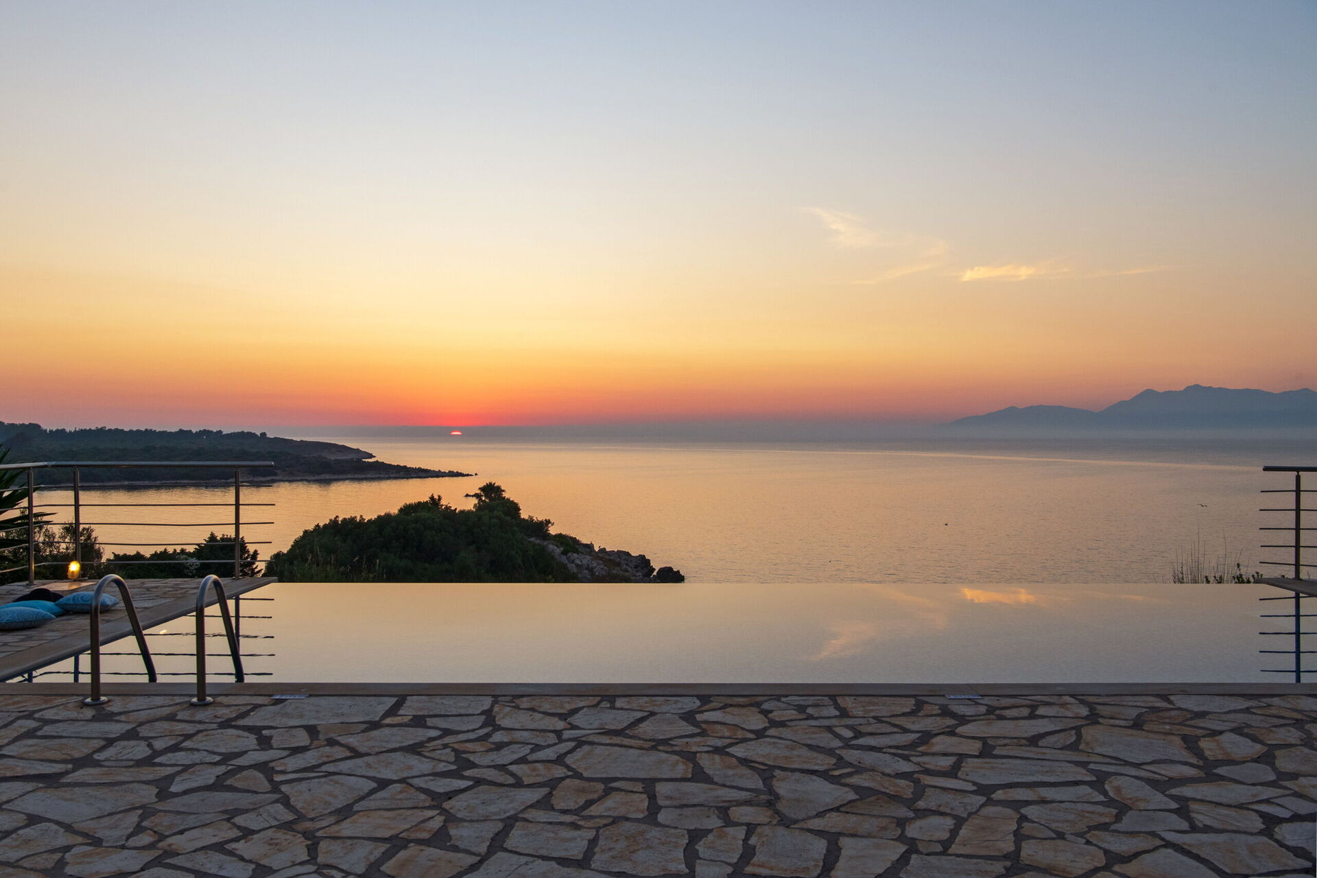 The first impressions of the Villa are the stunning views over the Ionian Sea to Albania and also over the lagoon towards north west Corfu. The sunsets are amazing.