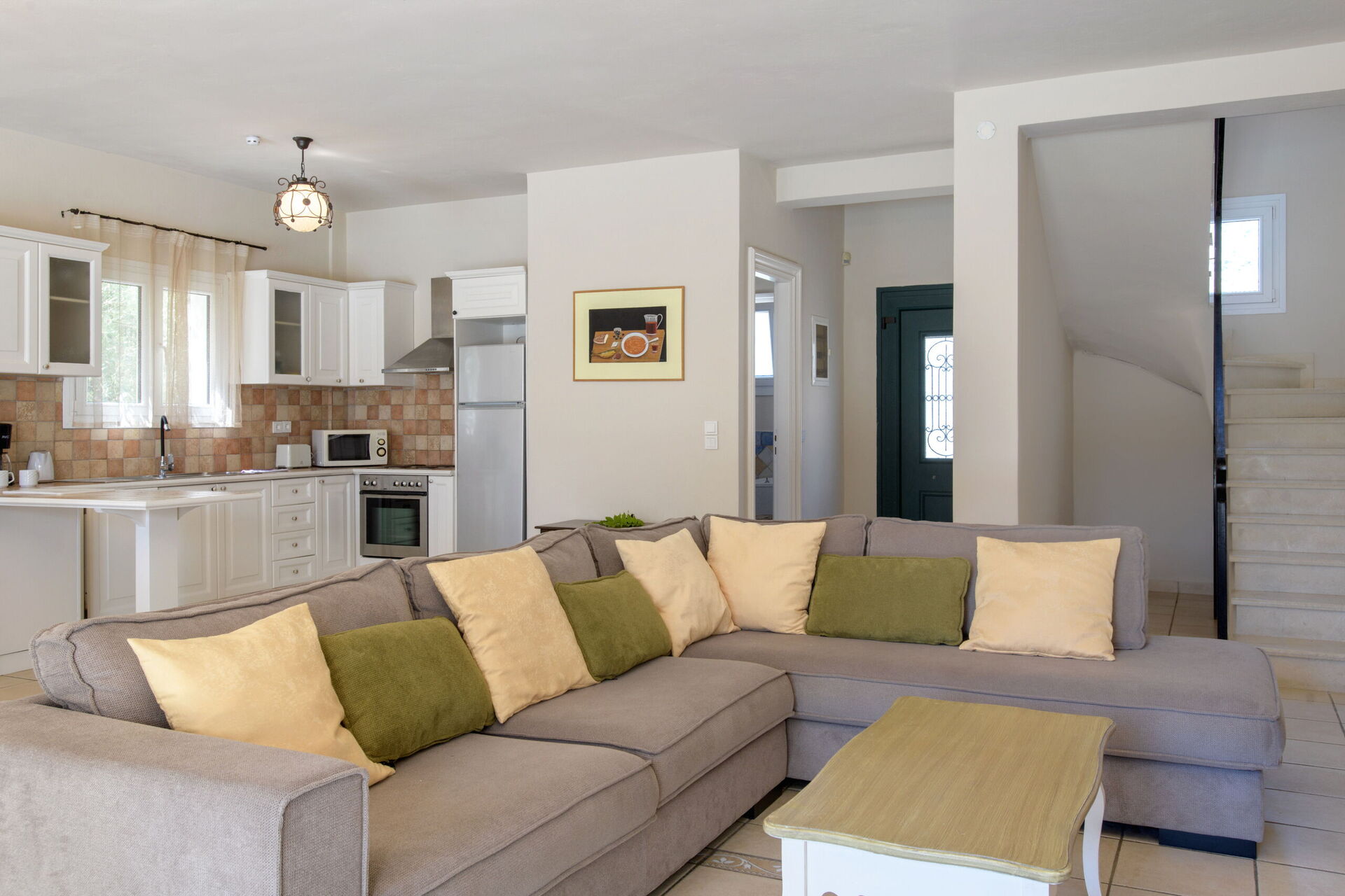 Amazing villa with a perfect location - 3 minutes from beaches, 1 min from tavernas and shops but quiet and peaceful. Immaculate, well stocked kitchen, lovely pool, incredible balcony views. Helpful and prompt communication from Posarelli. We came back to this villa because we came 10 years previously - we'd love to come back again.