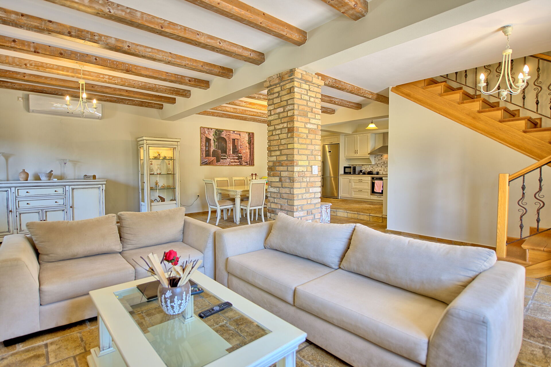 Beautiful spacious villa - clean and comfortable with great air con. Outdoor space was lovely - on two levels with the BBQ garden at the villa entry level and the pool area down steps and across the lawn. Great to be able to park the hire car inside the electric gates on the grass. We had some queries/items not working correctly and Takis (the contact in the village during our stay) was amazingly helpful and responsive. Little to do locally but lots in driving distance. Very much a locals village with no other English voices heard. We felt very much welcomed into the local community. We loved our stay and would return - highly recommended.