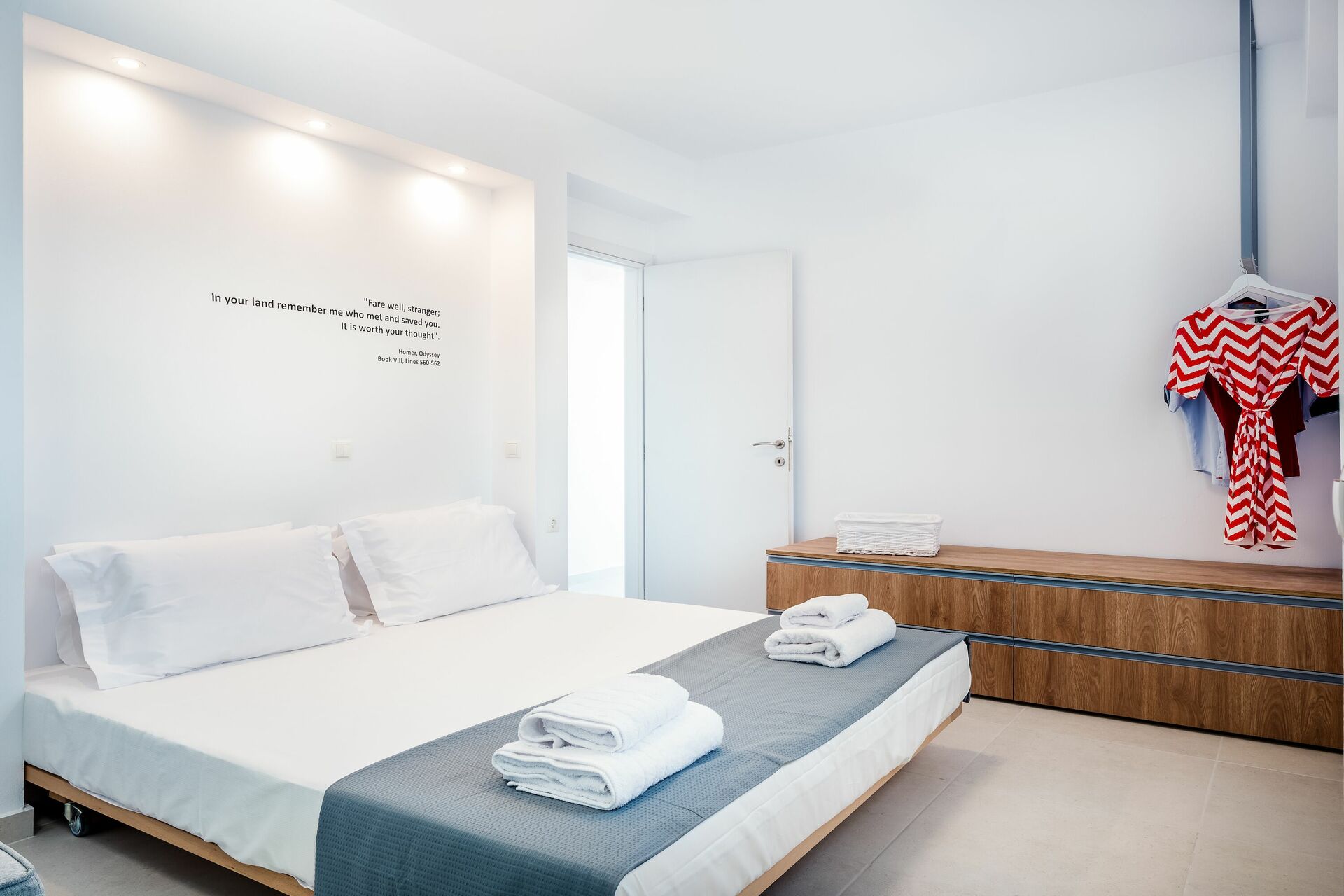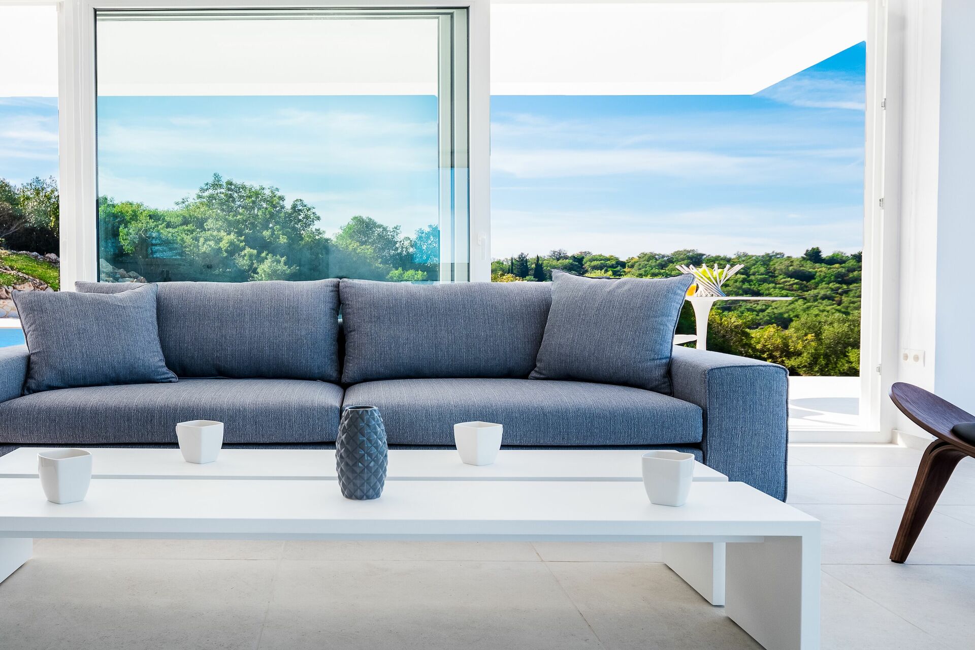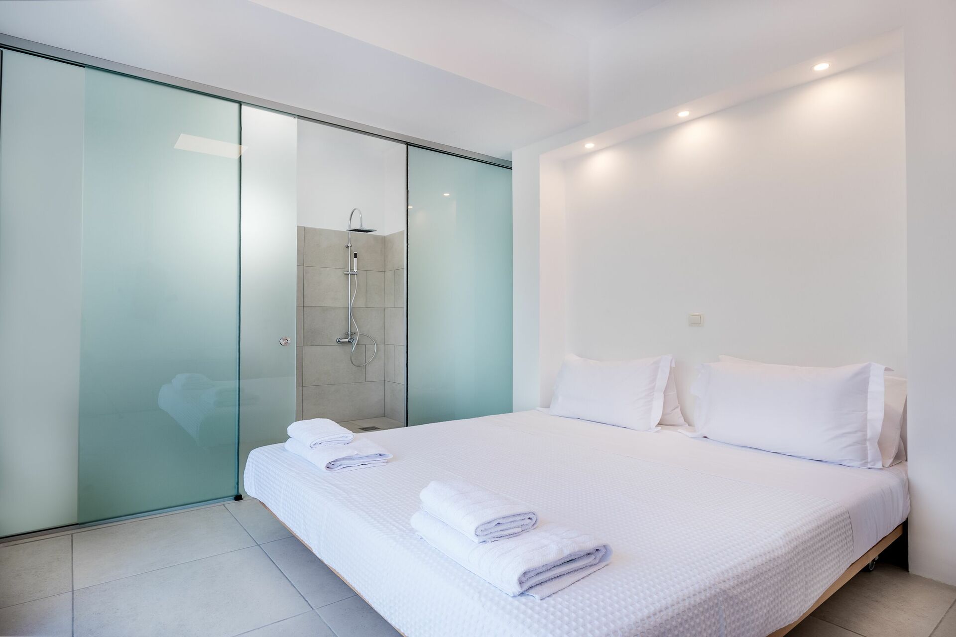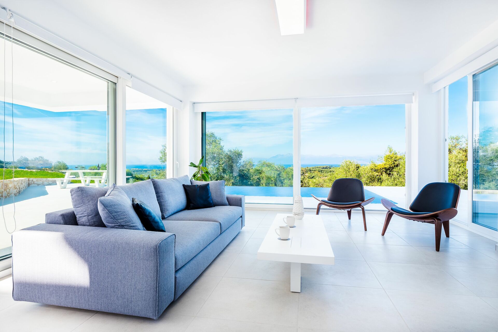 Mit ihren riesigen französischen Fenstern und Designermöbeln nutzt die Villa Nafsika die Sonne und das Licht, die Griechenland zu bieten hat.