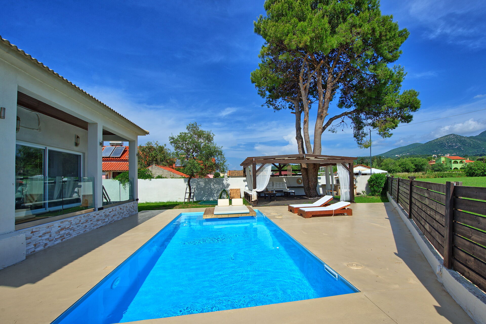 Beautiful villa located in a great area with a 5 minute walk either way to restaurants and beach. Clean and modern inside and out with a beautiful pool and great surroundings. Definitely would recommend for parties of 3-5 people