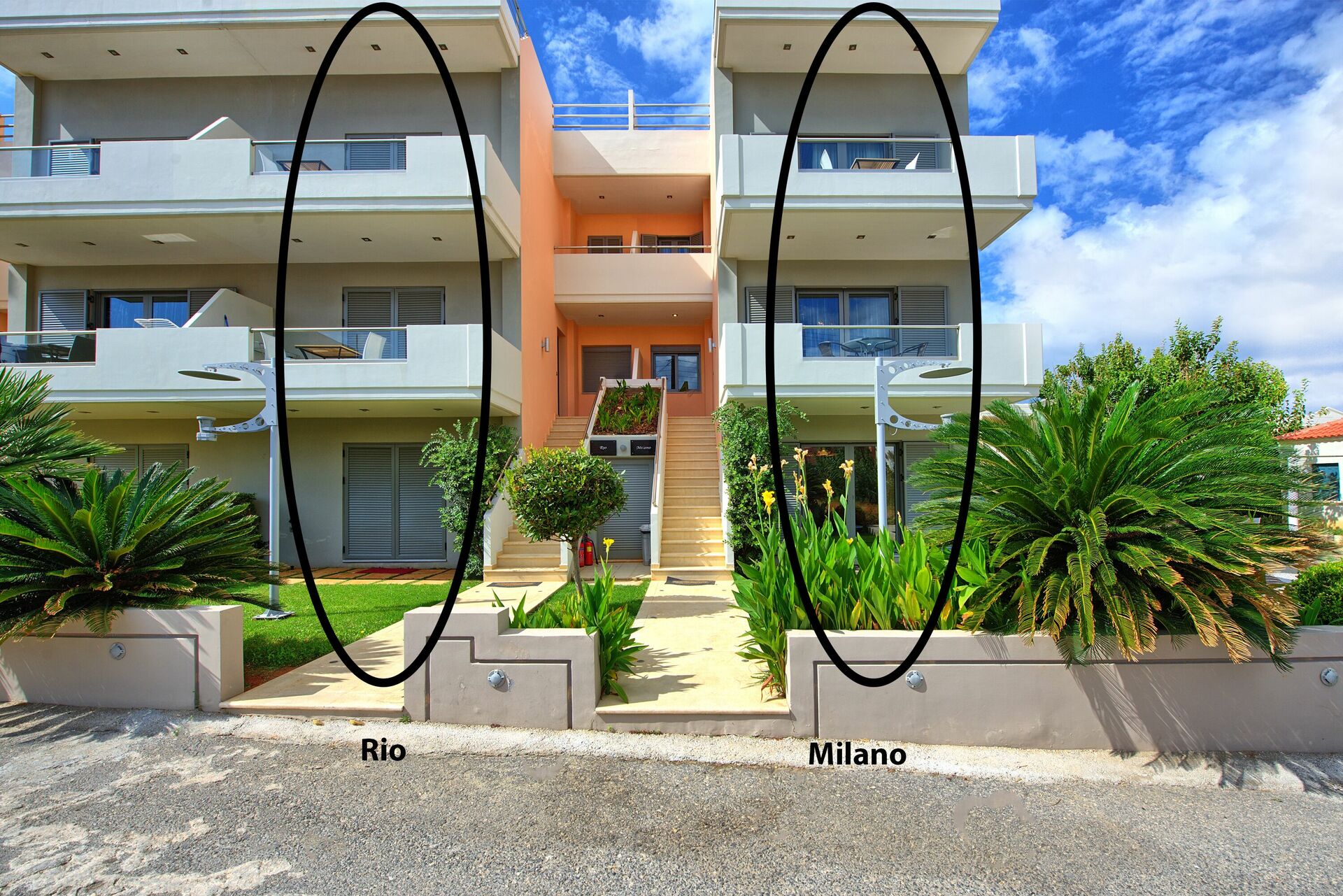 Es stehen 3 Villen zur Miete zur Verfügung (aufgelistet mit der am nächsten zum Meer gelegenen):