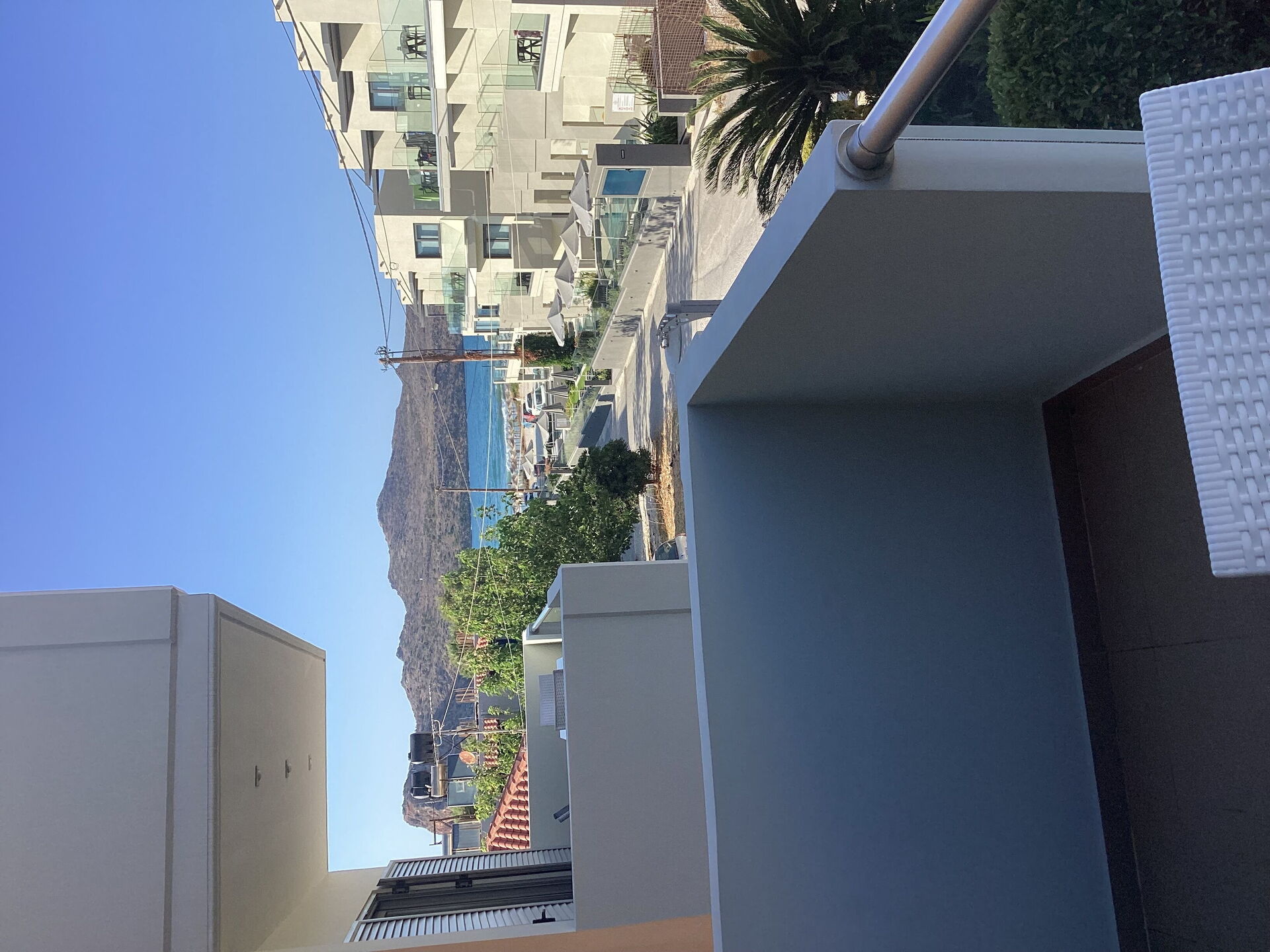 - Panoramaterrasse mit Tisch und Stühlen (immer im obersten Stockwerk jeder Villa)