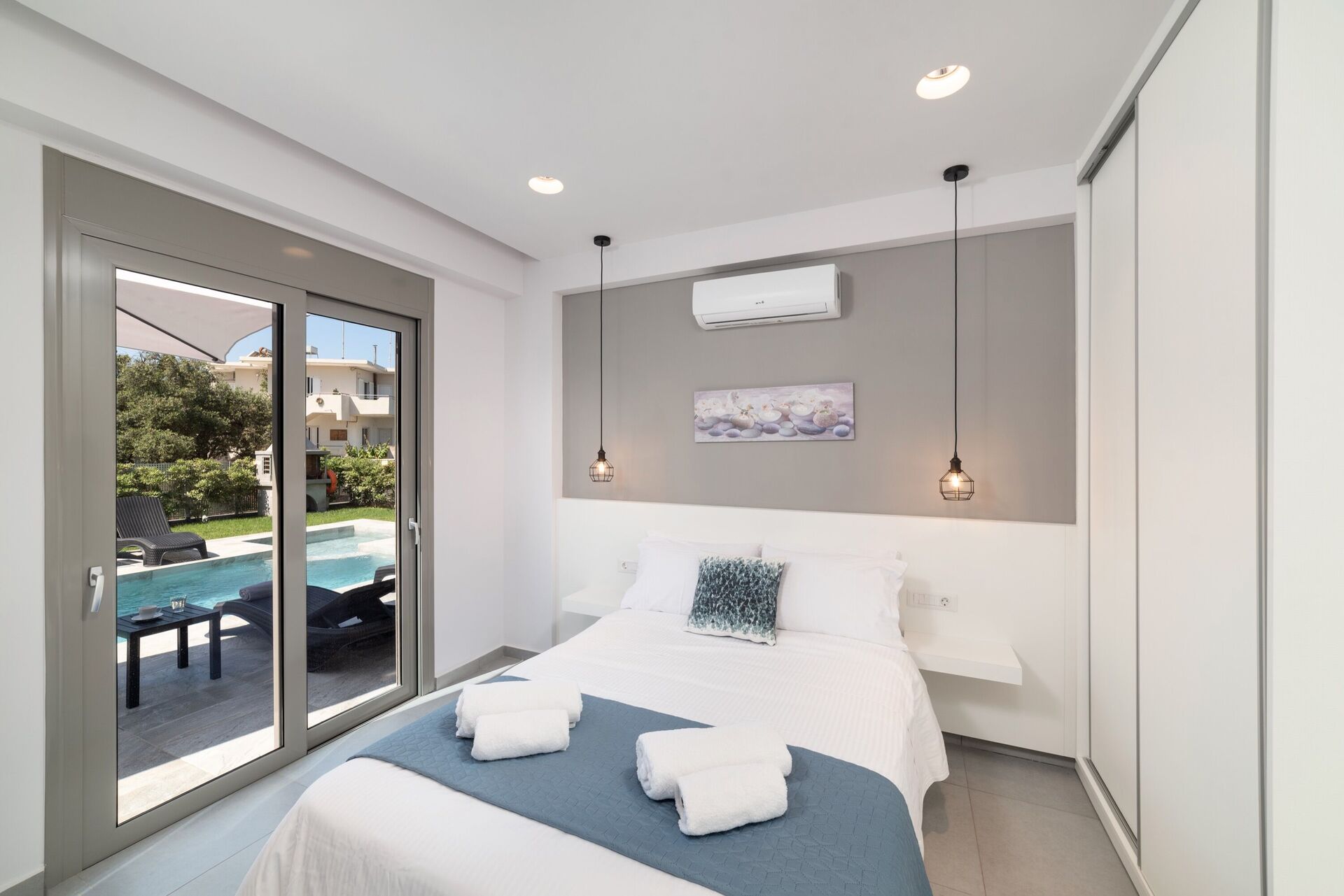 This villa was very well appointed with comfortable beds, very nice bathrooms and a large living space. The location was ideal - took about 7 mins to leisurely stroll to the beach. It was a sandy beach with beautiful clear water and lots of nice beach bars and tavernas. Tavernas and restaurants literally a 2-3 minute stroll away and yet the villa felt peaceful.