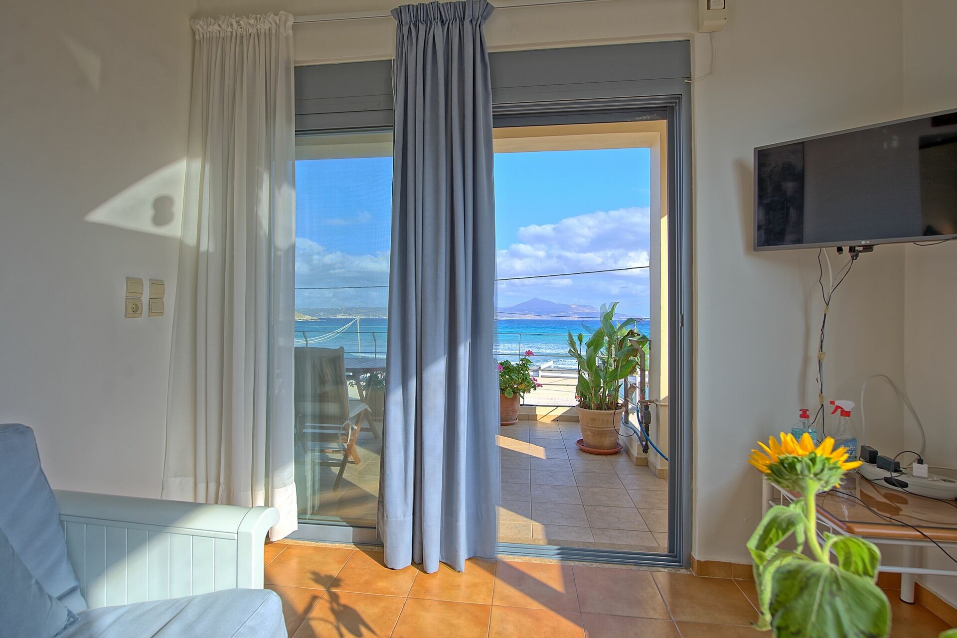 We had a wonderful time at the apartment, and we really loved the atmosphere and the beauty of the small village of Almyrida. Castellina is a very kind and caring host and helped us with everything. The apartment is really in front of the sea and you have a great view from the balcony on the ocean. When you get out of the apartment, you find yourself next to very good restaurants and a beach to take a bath or a stroll and even some supermarkets and nice little souvenir shops are close by so everything is just as you would love it, we definitely recommend