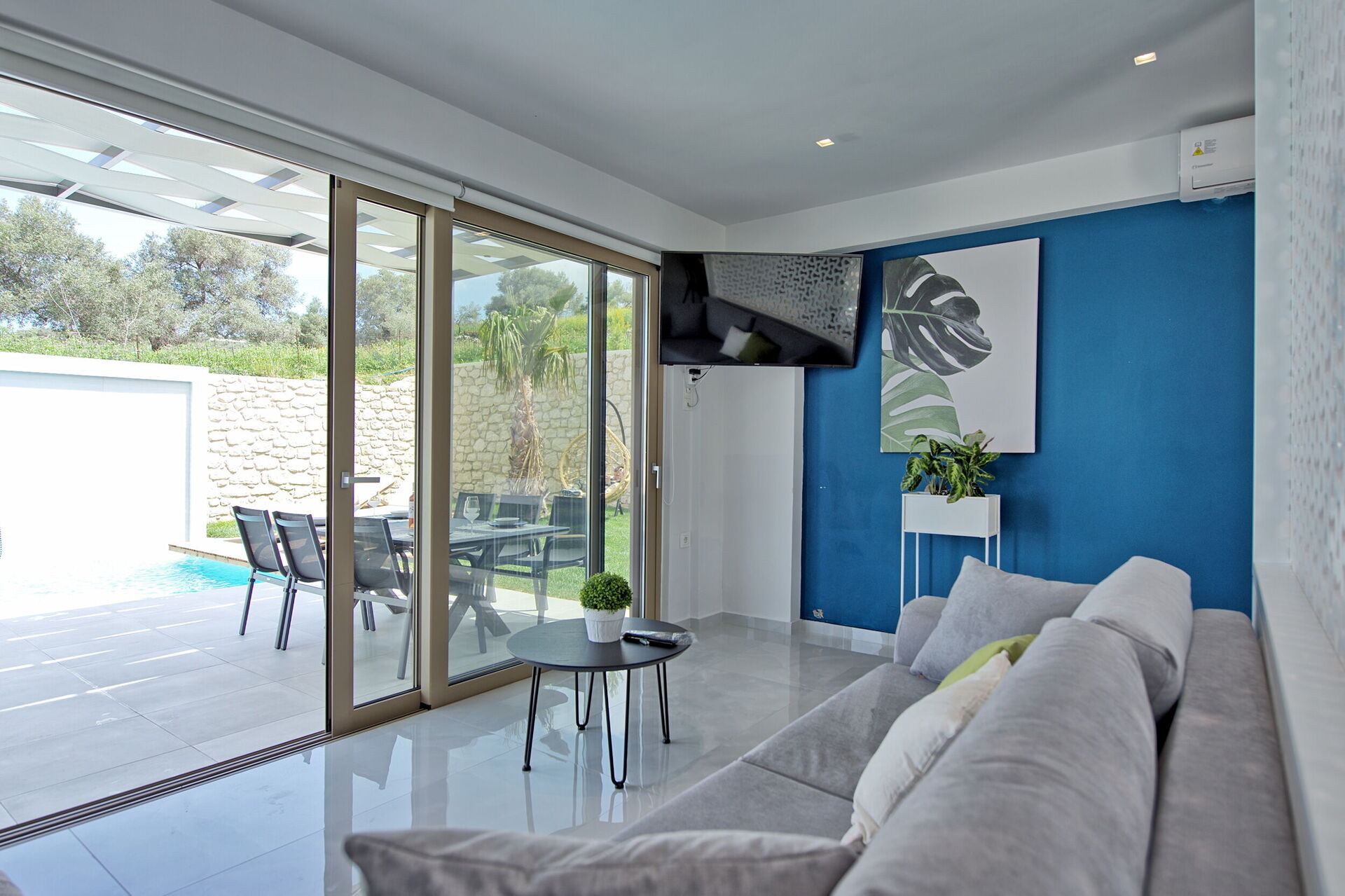 Die Villa ist Teil des Silentium-Komplexes, der aus einer Panoramagruppe von 3 freistehenden Villen mit jeweils einem privaten Schwimmbad besteht: Neben der Villa Silentium Ionia gibt es die Villa Silentium Evilia und die Villa Silentium Olia (beide Villen in unserem Mietprogramm): die drei Villen können auch alle drei zusammen für ein Familientreffen oder eine große Gruppe von Freunden gemietet werden.