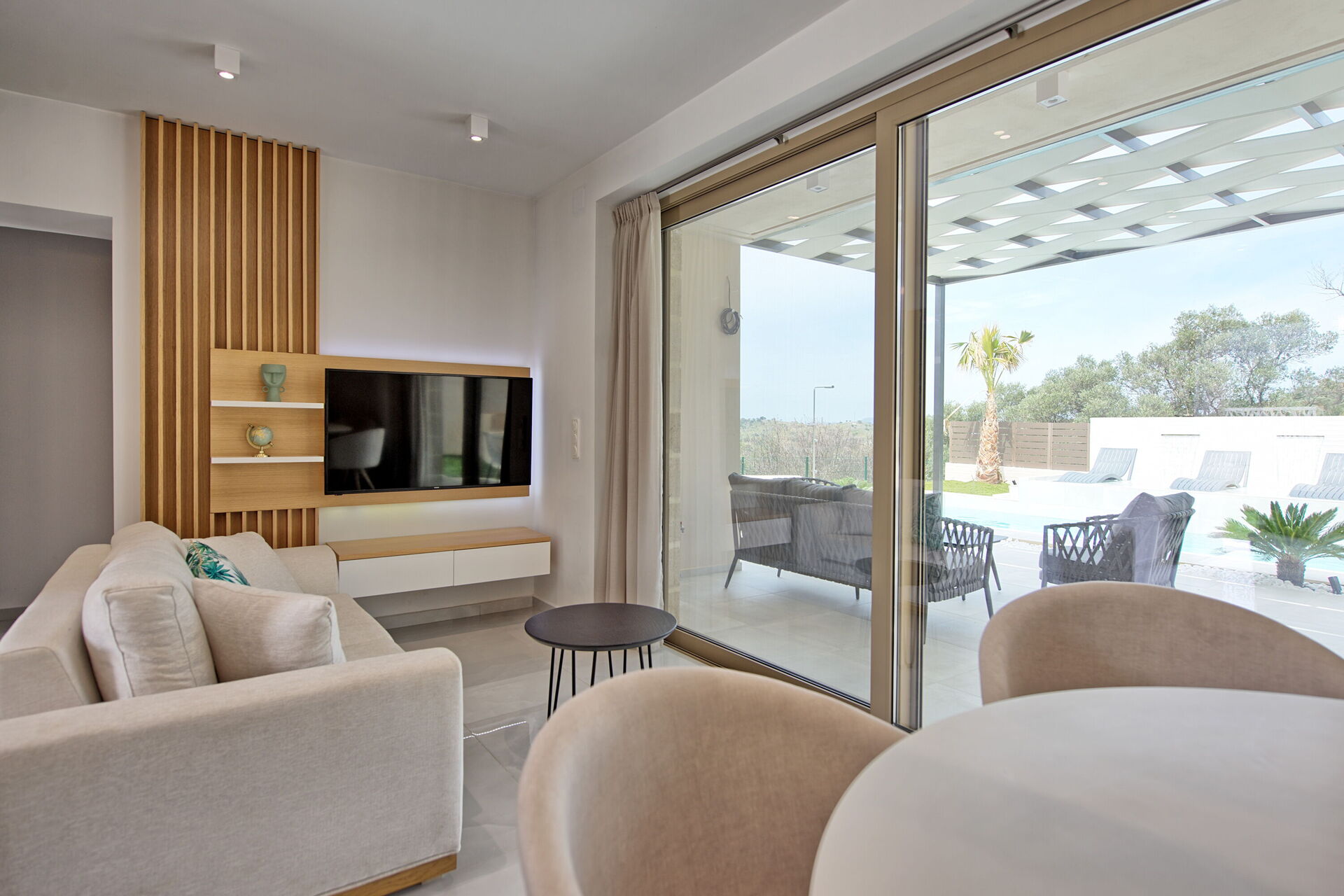 Die Villa ist Teil des Silentium-Komplexes, der aus einer Panoramagruppe von 3 freistehenden Villen mit jeweils einem privaten Schwimmbad besteht: Neben der Villa Silentium Olia gibt es die Villa Silentium Evilia und die Villa Silentium Ionia (beide Villen in unserem Mietprogramm): die drei Villen können auch alle drei zusammen für ein Familientreffen oder eine große Gruppe von Freunden gemietet werden.