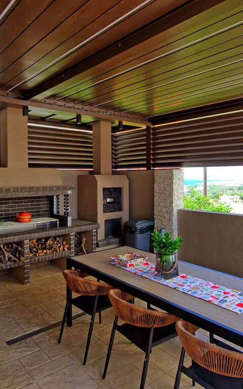 - Außenbereich, der zum Essen im Freien ausgestattet ist