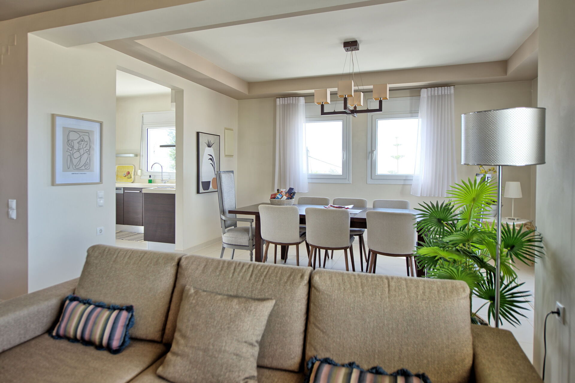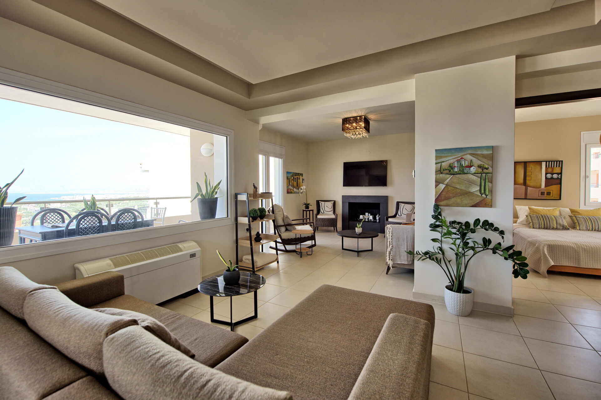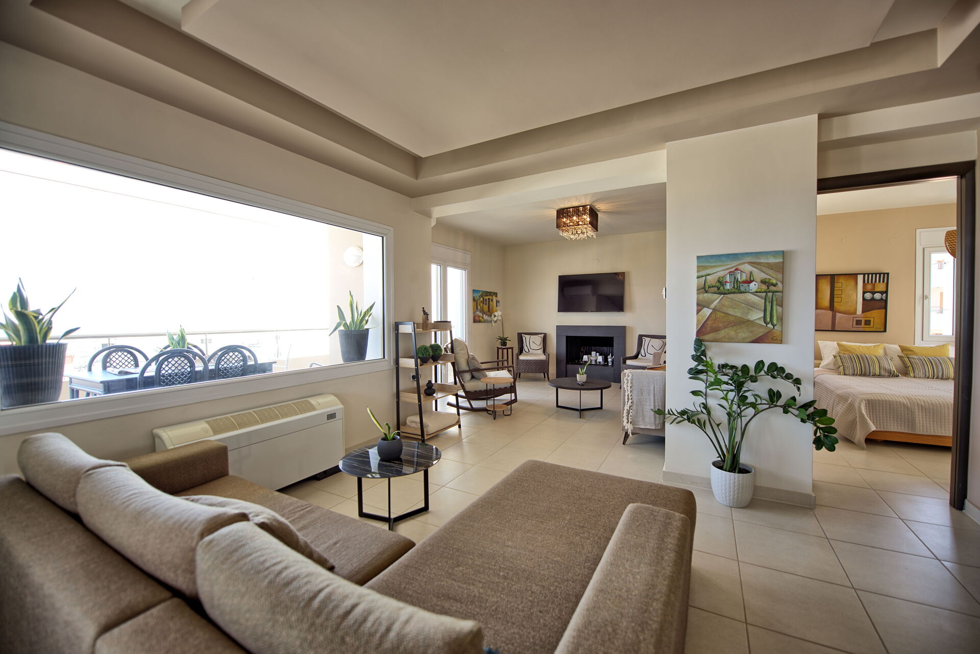 Vom hellen Wohnzimmer des Hauses aus kann man ein wunderschönes Panorama bewundern, das bis zum Meer reicht. Wer auf der Suche nach einem Zuhause für Ihren Urlaub auf Kreta ist, wird von der Villa Endless View nicht enttäuscht sein: Dank der 3 Schlafzimmer bietet die Villa bequem Platz für bis zu 6 Personen in einer sehr komfortablen und gastfreundlichen Umgebung.