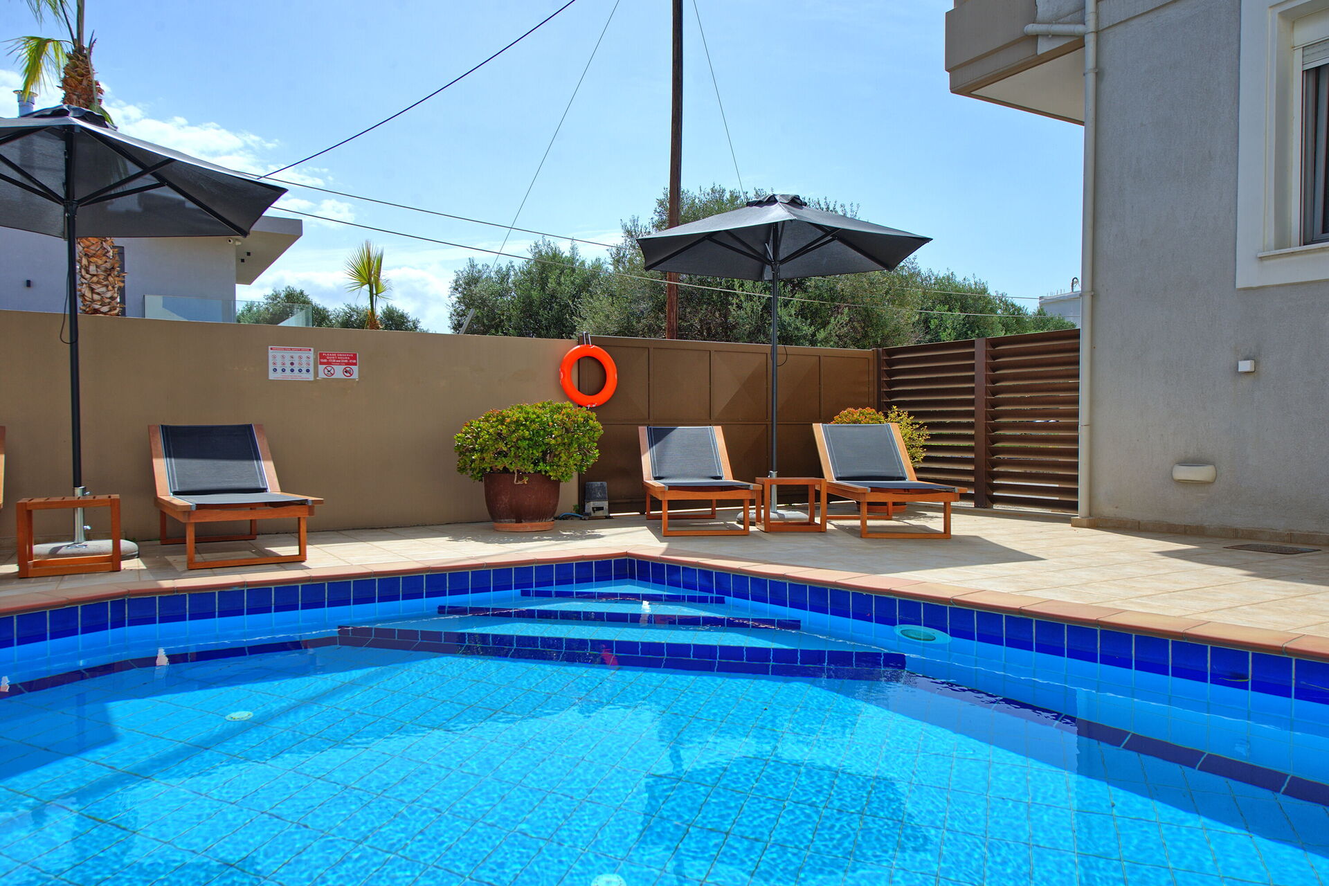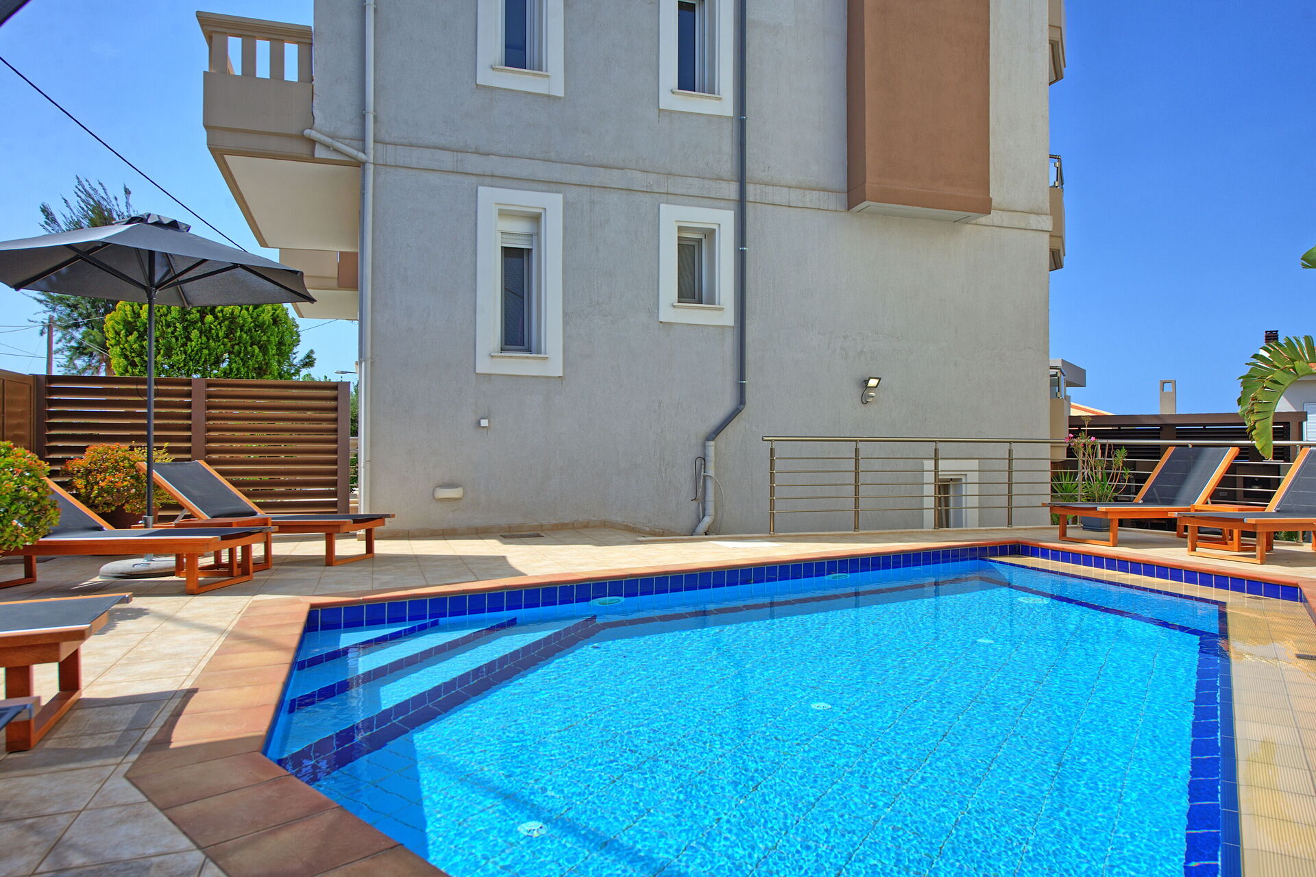 Schöne Villa in Panorama-Lage mit privatem Schwimmbad zur Miete für einen Urlaub auf Kreta, nicht weit vom Meer und den Stränden von Chania und Agios Apostoli entfernt.