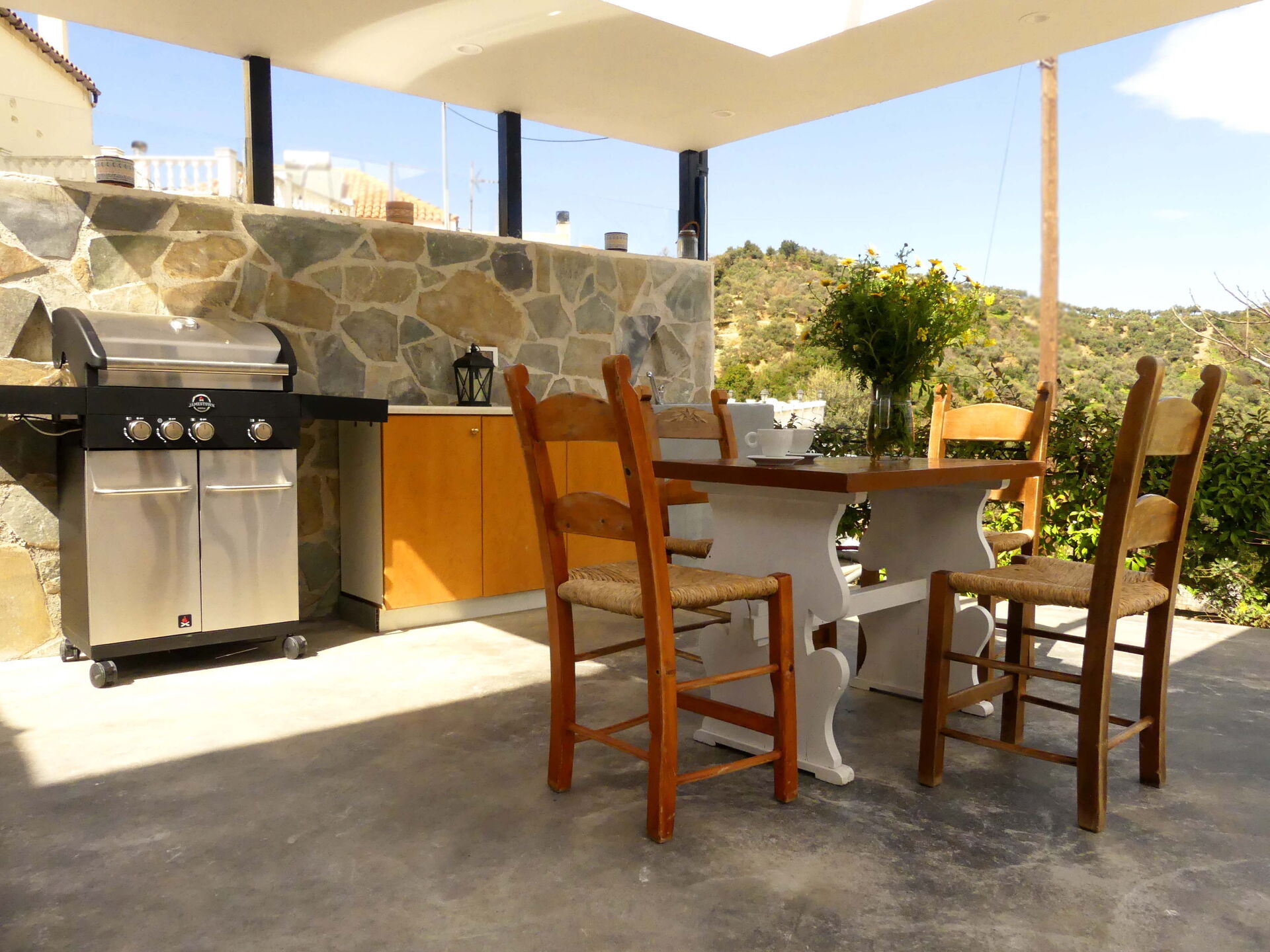 - Außenbereich, der für Mahlzeiten im Freien ausgestattet