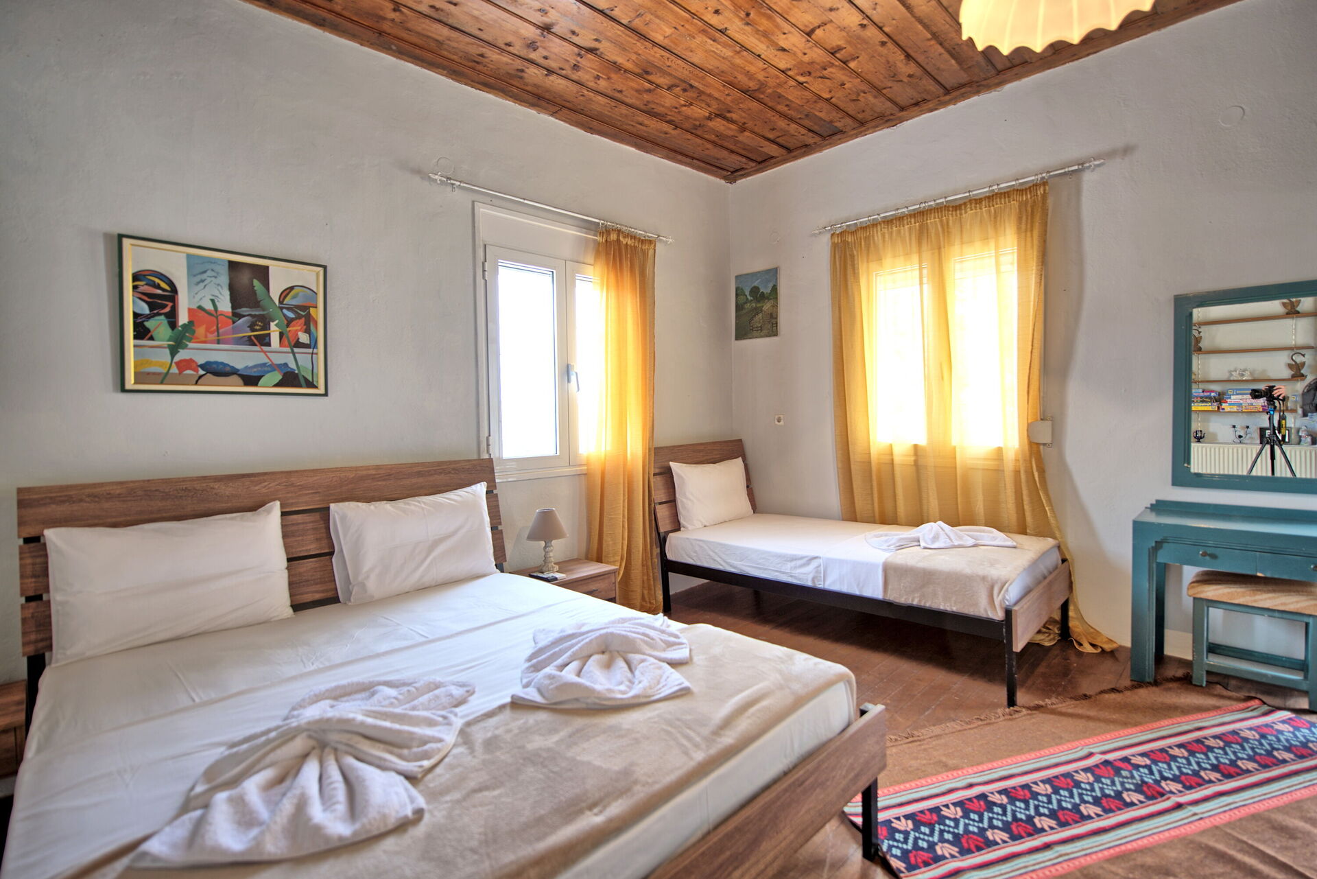 Halbe Etage: 1 französisches Doppelbett und 1 Einzelbett.