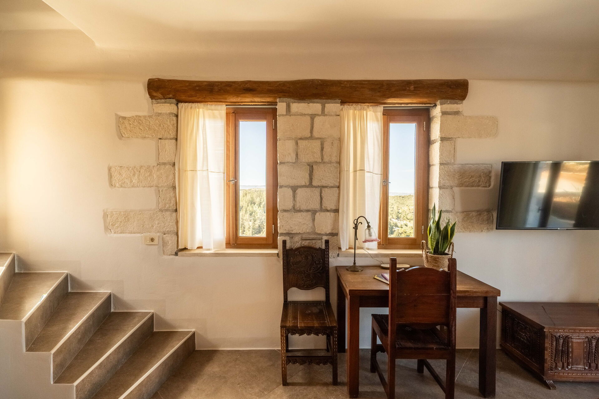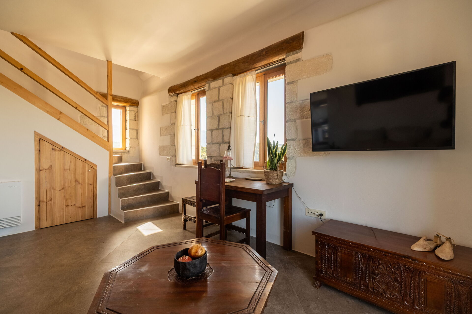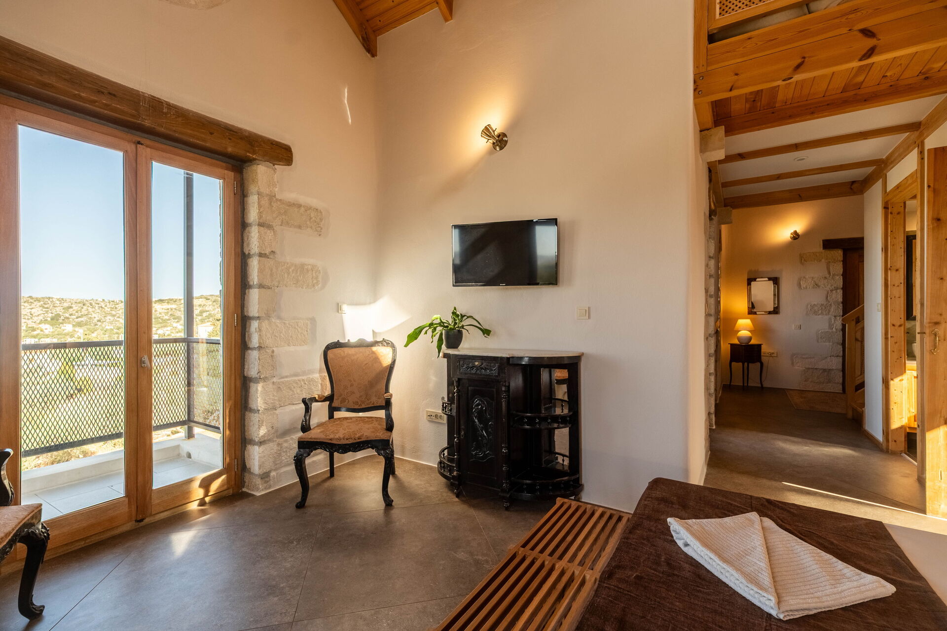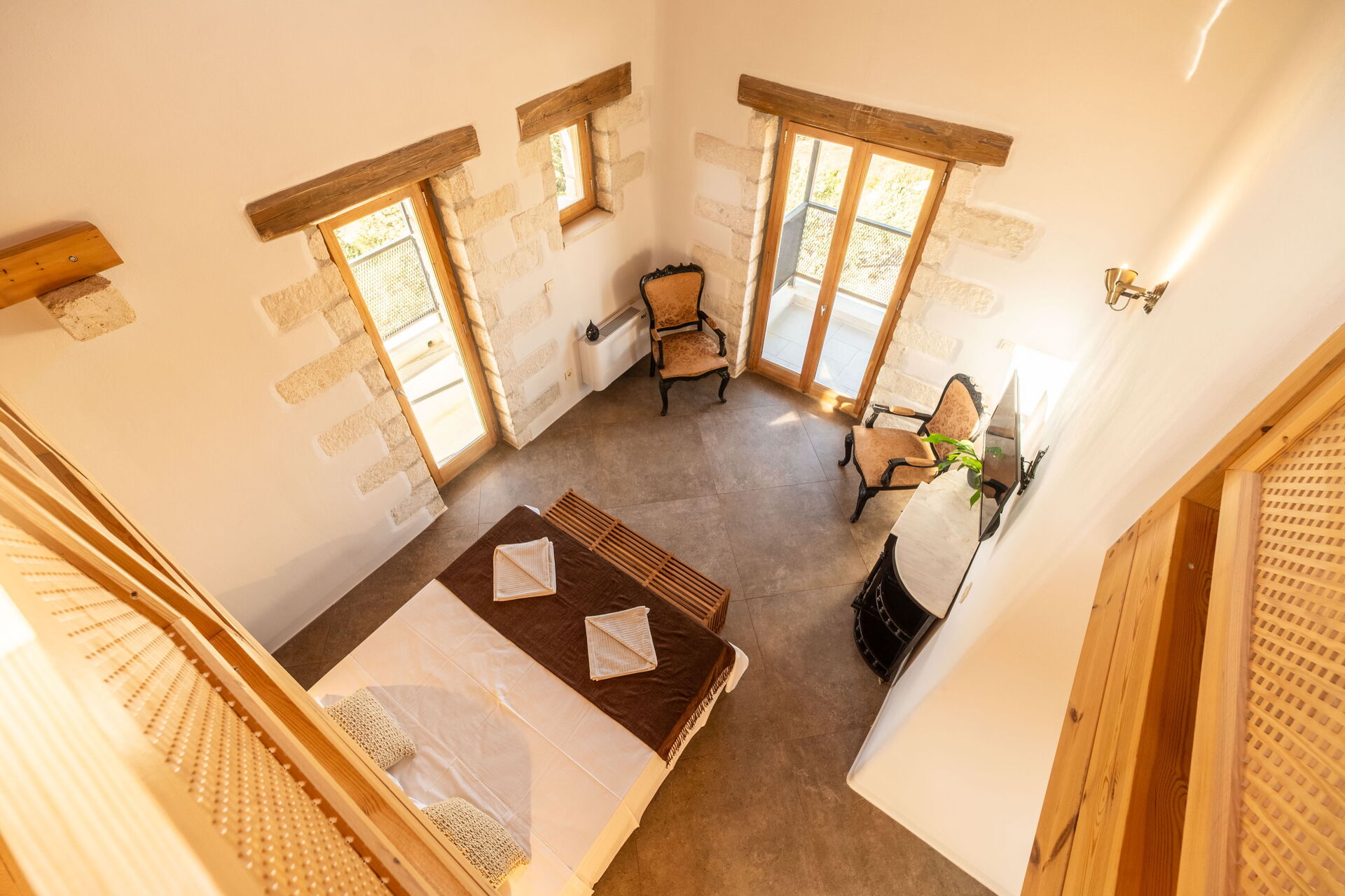 Im Außenbereich erwartet die Gäste ein möblierter Bereich mit Grill und Tisch für Mahlzeiten im Freien, ein privates Schwimmbad zum Abkühlen an heißen Sommertagen und zum Genießen der Ruhe und Stille der Landschaft. Ein herrlicher Panoramablick auf das kristallklare kretische Meer rundet das Angebot ab.