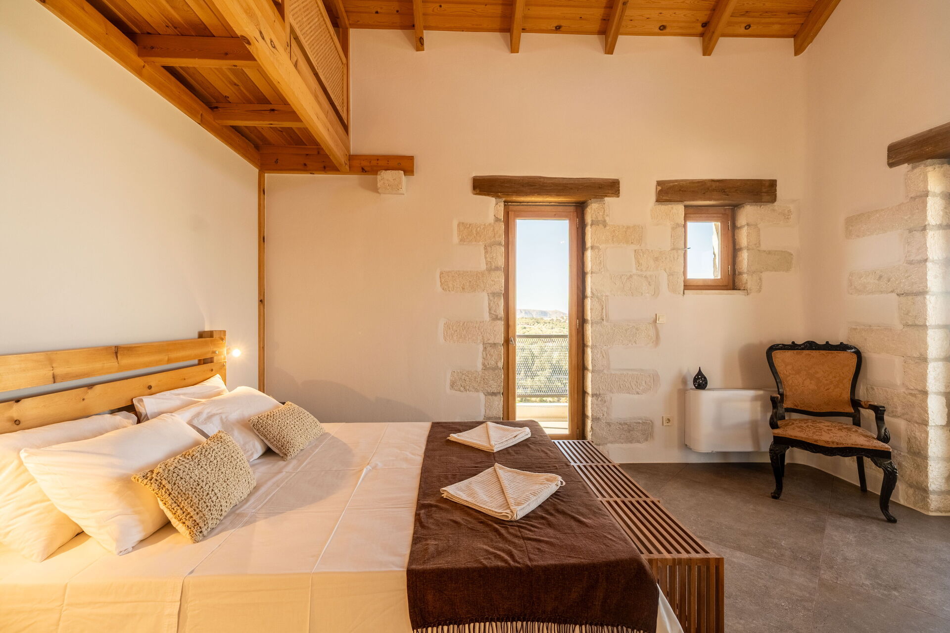 Die Villa wurde erst kürzlich erbaut und ist sehr einladend: Die Einrichtung ist im traditionellen kretischen Stil gehalten, und die Räume sind hell und komfortabel. Auf zwei Etagen bietet sie Platz für 2-4 Gäste, dank eines Doppelzimmers mit Zugang zu einer Galerie mit zwei Einzelbetten. Die Villa Falcos ist ideal für einen Urlaub auf Kreta. Die fantastische Lage der Villa ermöglicht atemberaubende Ausblicke auf das Meer und traumhafte Sonnenuntergänge.