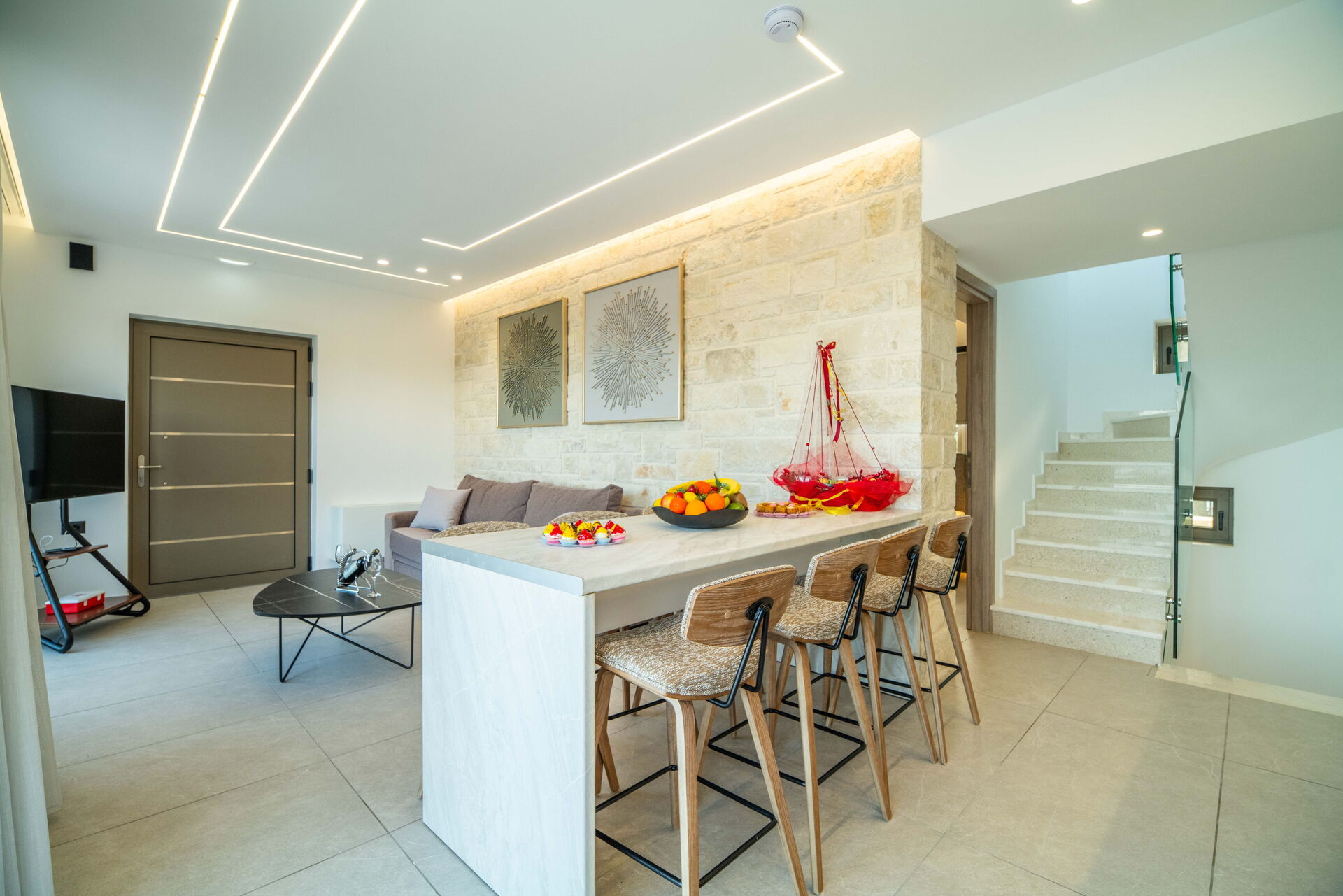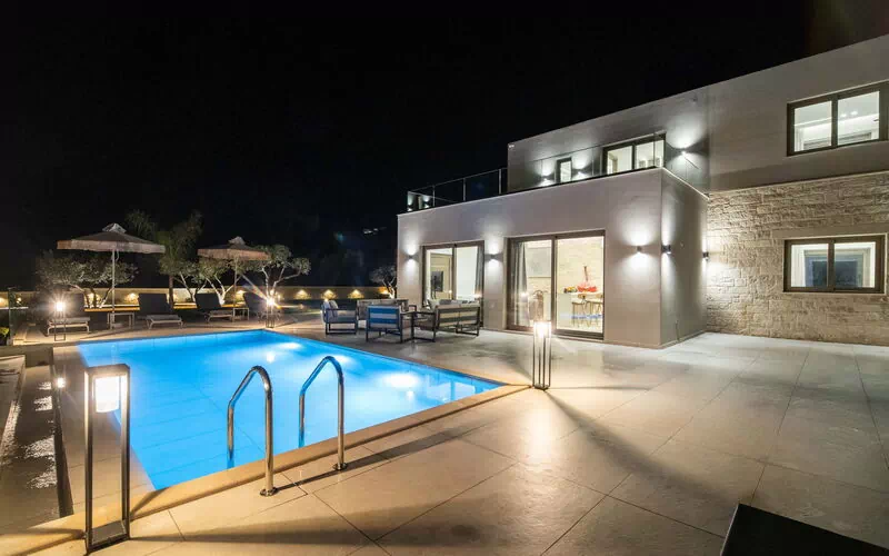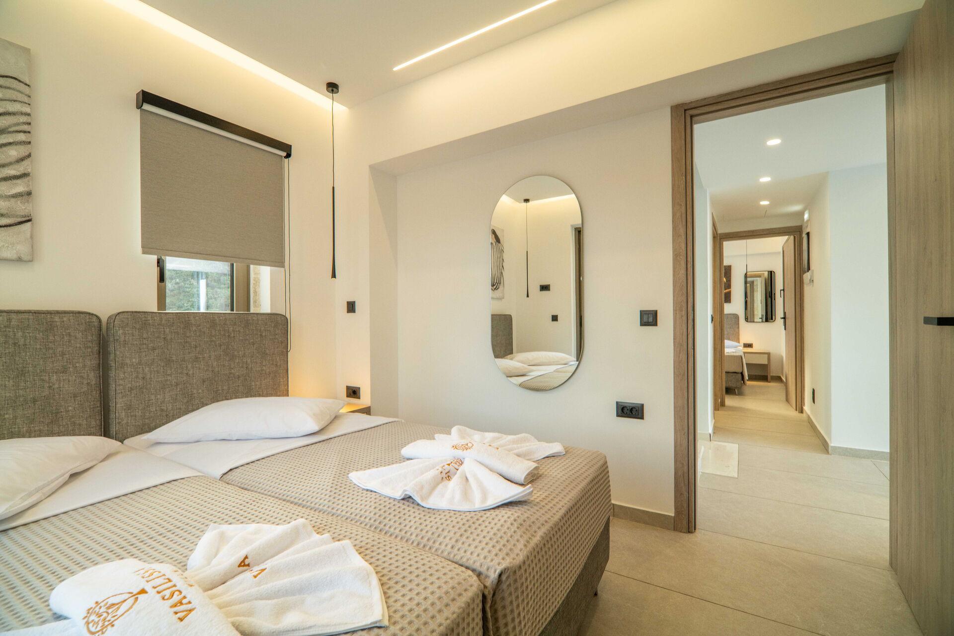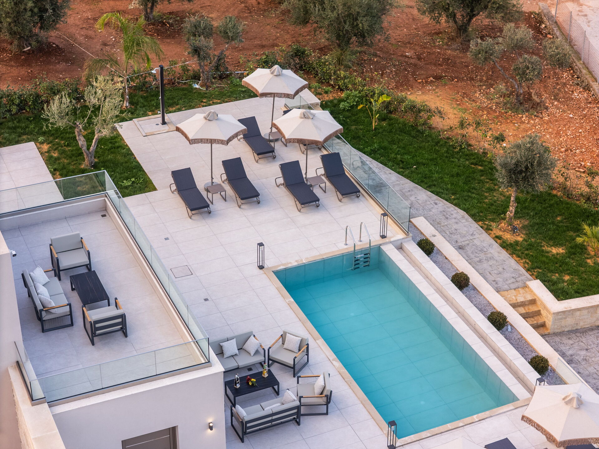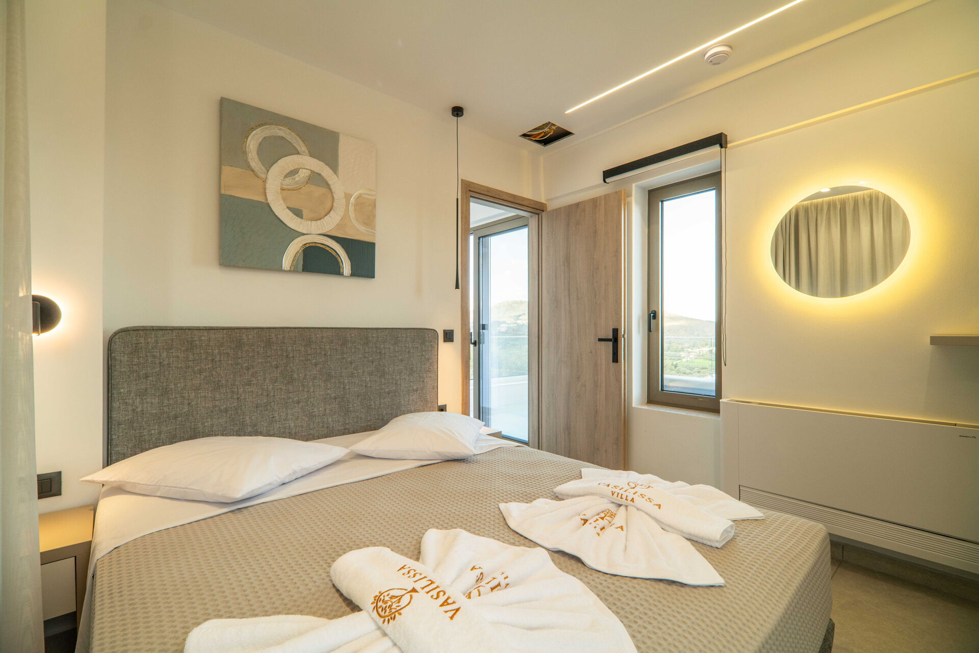 Der Bau der Villa wurde im Januar 2026 abgeschlossen; somit ist in der Villa Vasilissa alles brandneu: Ein Panorama- Schwimmbad mit Blick auf das Meer und die kretische Landschaft lädt an sonnigen Sommertagen zu erfrischenden Bädern ein. Die Villa erstreckt sich über drei Etagen und verfügt über insgesamt fünf Schlafzimmer: zwei im ersten Stock, zwei im Erdgeschoss und eines im Untergeschoss – alle komfortabel und bestens ausgestattet. Ein Essbereich mit Panoramablick bietet einen herrlichen Blick auf das Schwimmbad, die Landschaft und das Meer. Im Außenbereich lädt eine Terrasse zum Essen im Freien ein.
