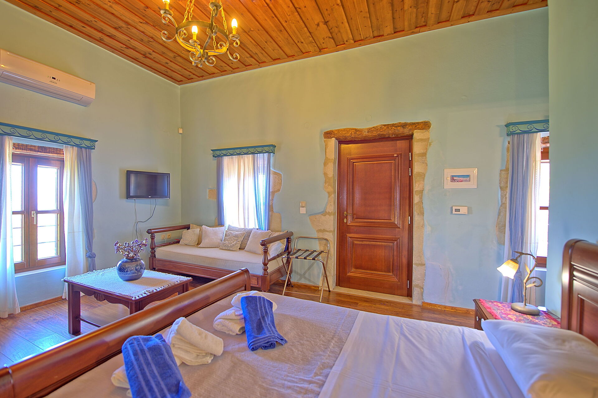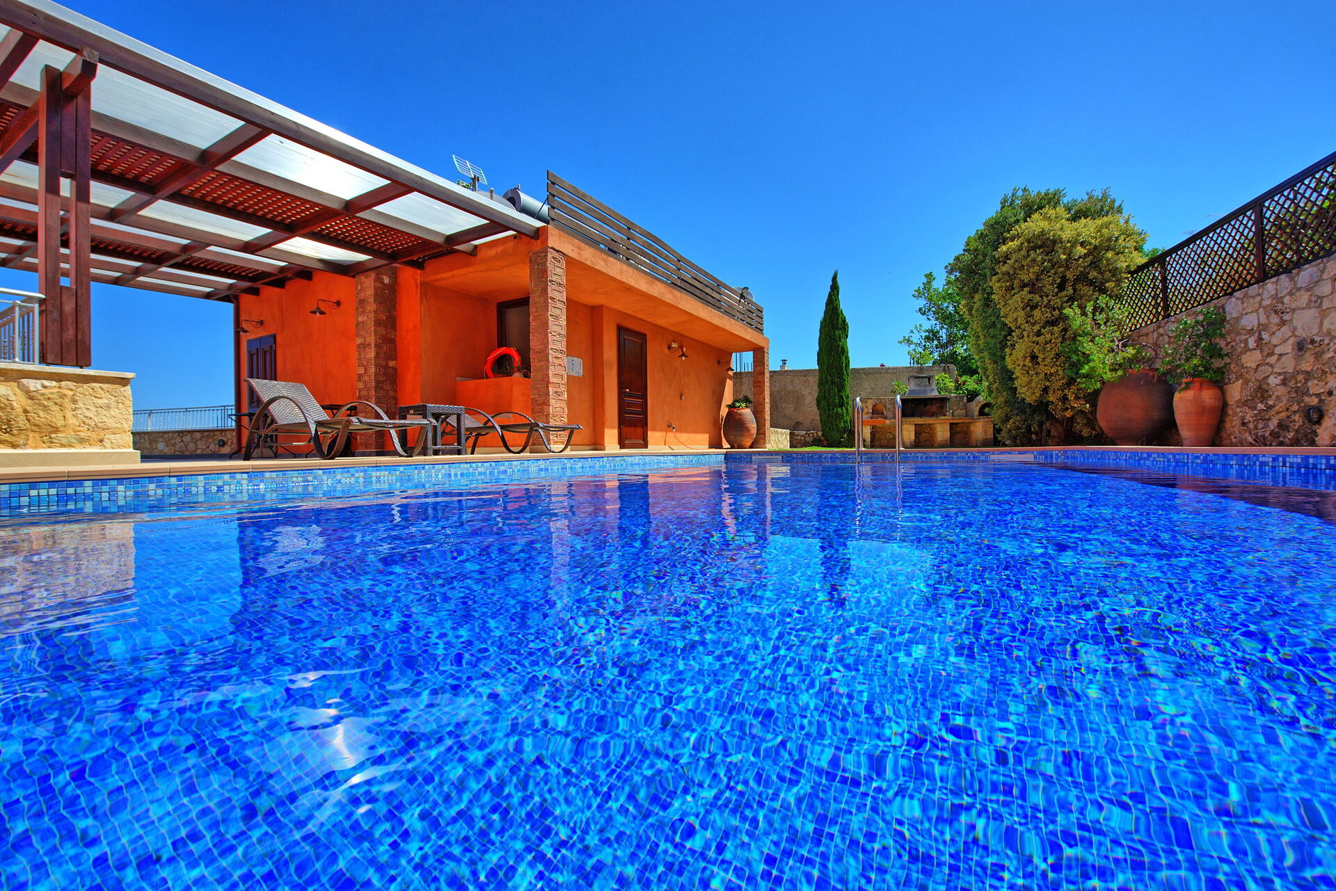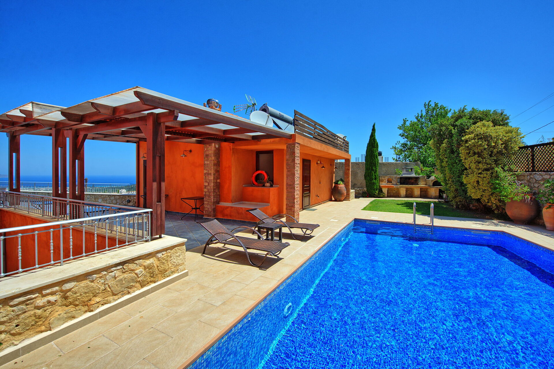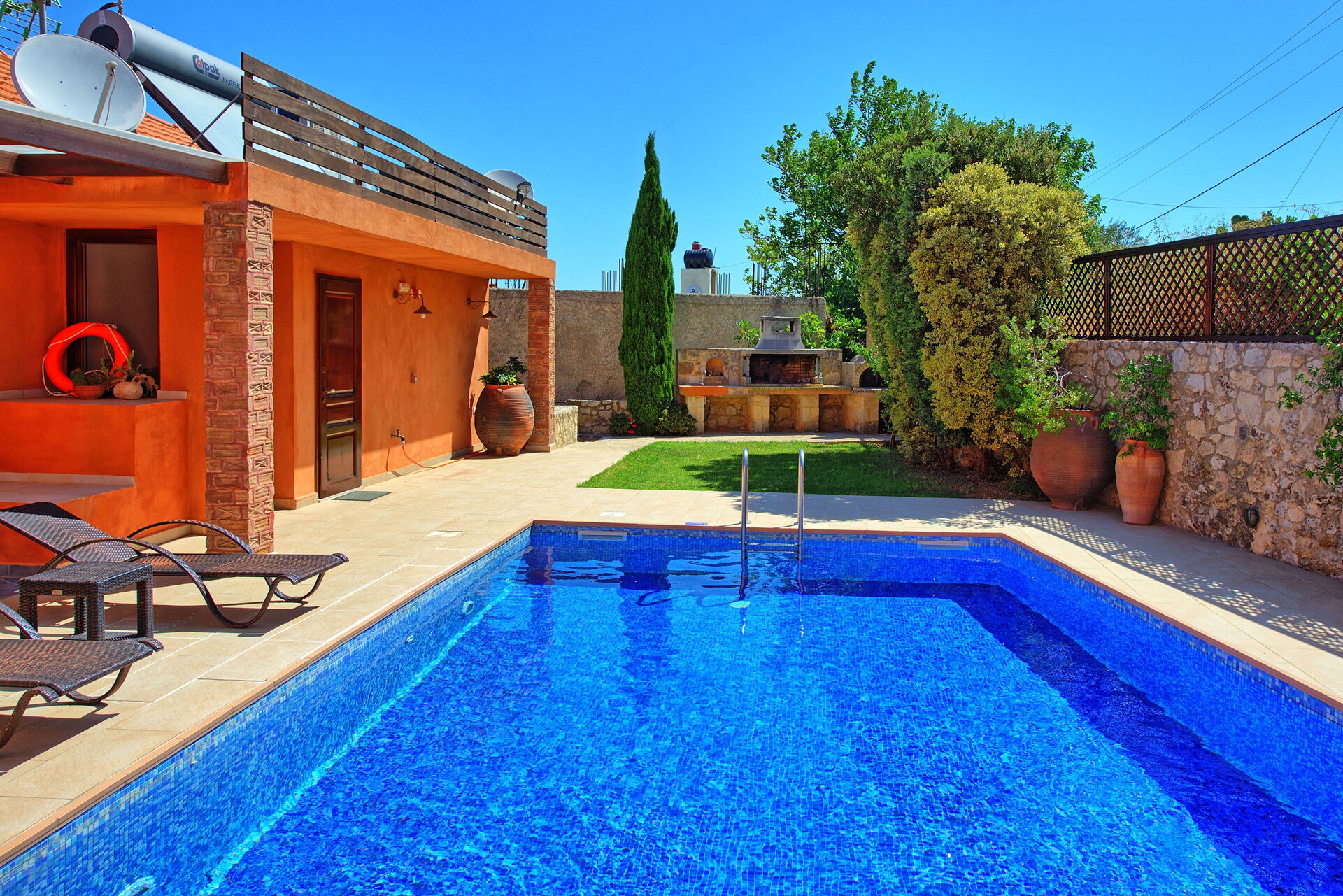 Wer nach einer Villa mit privatem Schwimmbad für den Urlaub auf Kreta sucht, wird von dieser Villa nicht enttäuscht sein! Die Villa stammt aus dem Jahr 1919, ist aus Stein gebaut und mit traditionellen lokalen Gegenständen dekoriert; Gleichzeitig bietet sie modernen Komfort, der einen angenehmen Urlaub in Griechenland beschert. Die Villa verfügt über 4 Doppelzimmer und bietet bequem Platz für bis zu 8 Personen. Im Aussenbereich befindet sich ein schönes Schwimmbad, um sich an den sonnigen Tagen Kretas abzukühlen, und auf einer schönen Panoramaterrasse kann man im Freien essen.