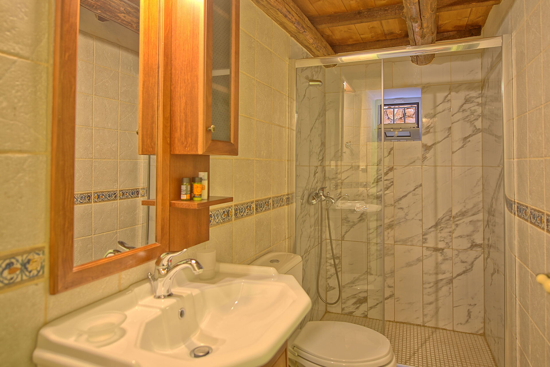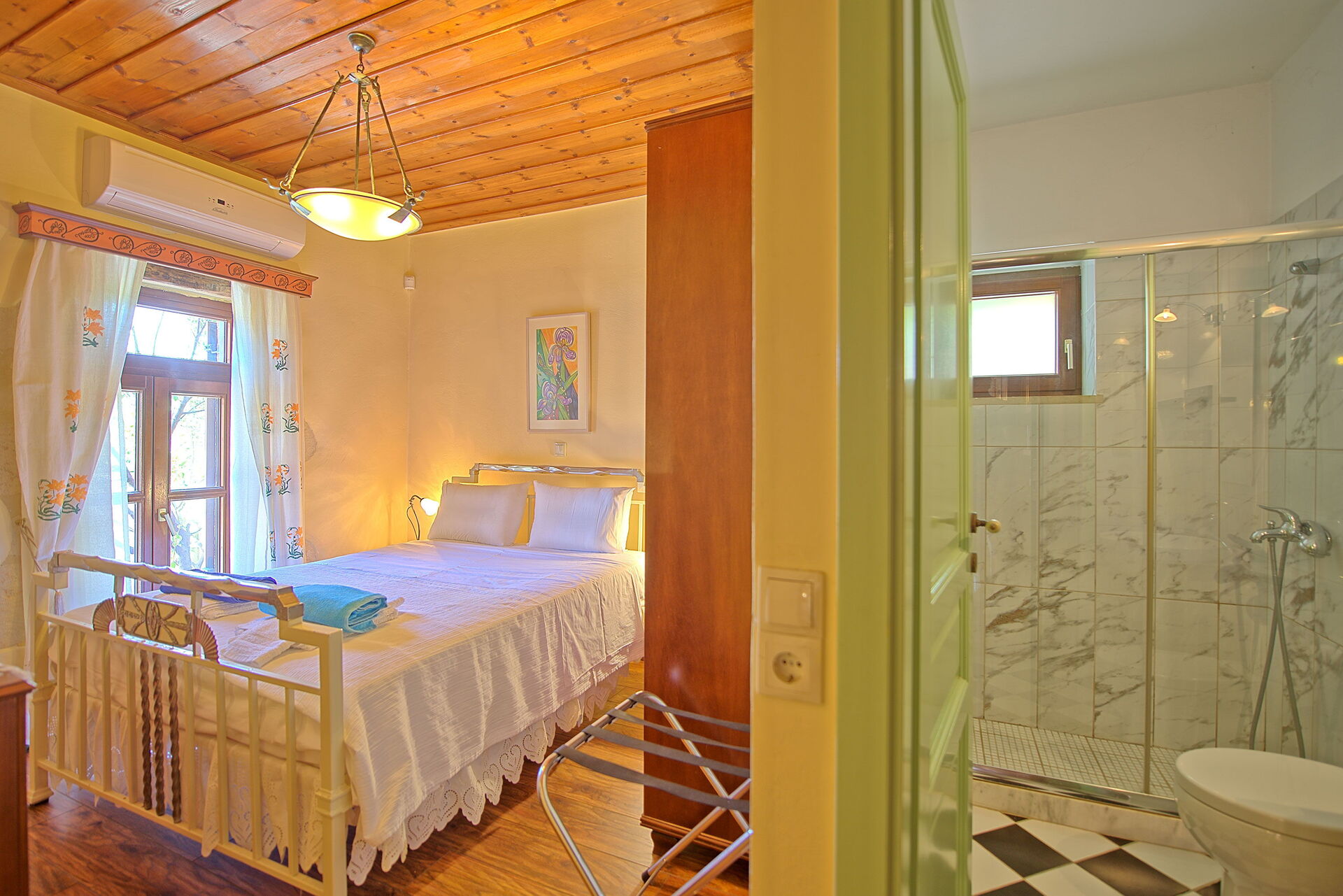 Erster Stock: Doppelzimmer mit eigenem Bad mit Dusche.