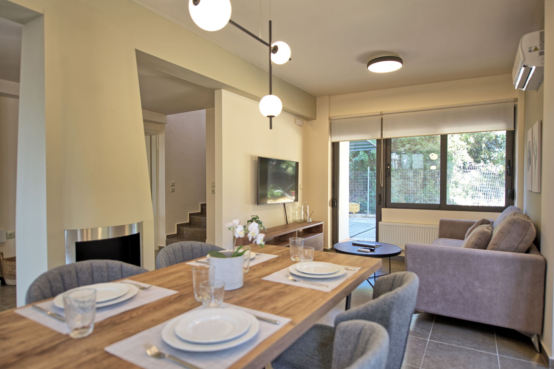 Diese wunderbare Villa zur Miete ist Teil eines Komplexes von 4 Doppelvillen, den "Efrossini Suites". Sie erstreckt sich über drei Ebenen und die schöne Villa zur Miete bietet 2 Bettzimmer und ein Zimmer mit Schlafsofa für bis zu 5 Personen. Neben der sehr guten Ausstattung zeichnet sich diese hochmoderne Villa durch Licht aus: die großen Fenster machen jeden Raum der Mietvilla unglaublich hell.
