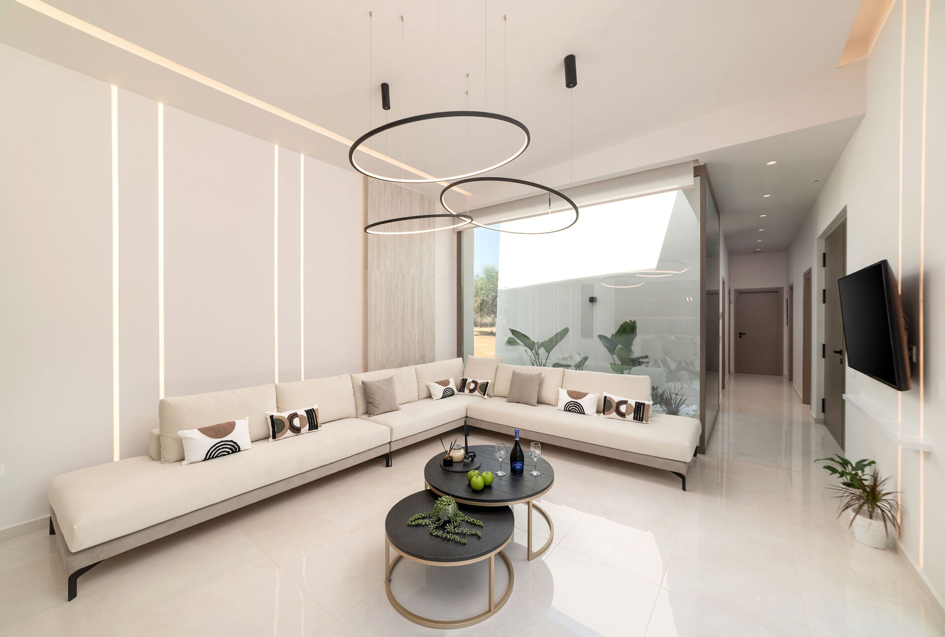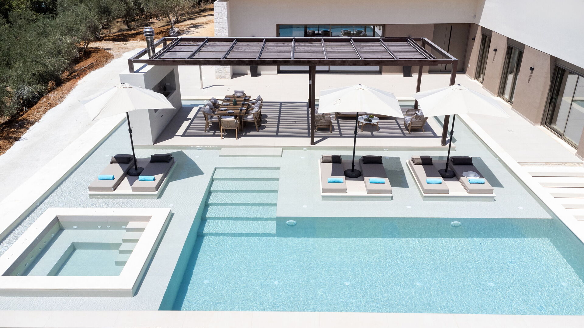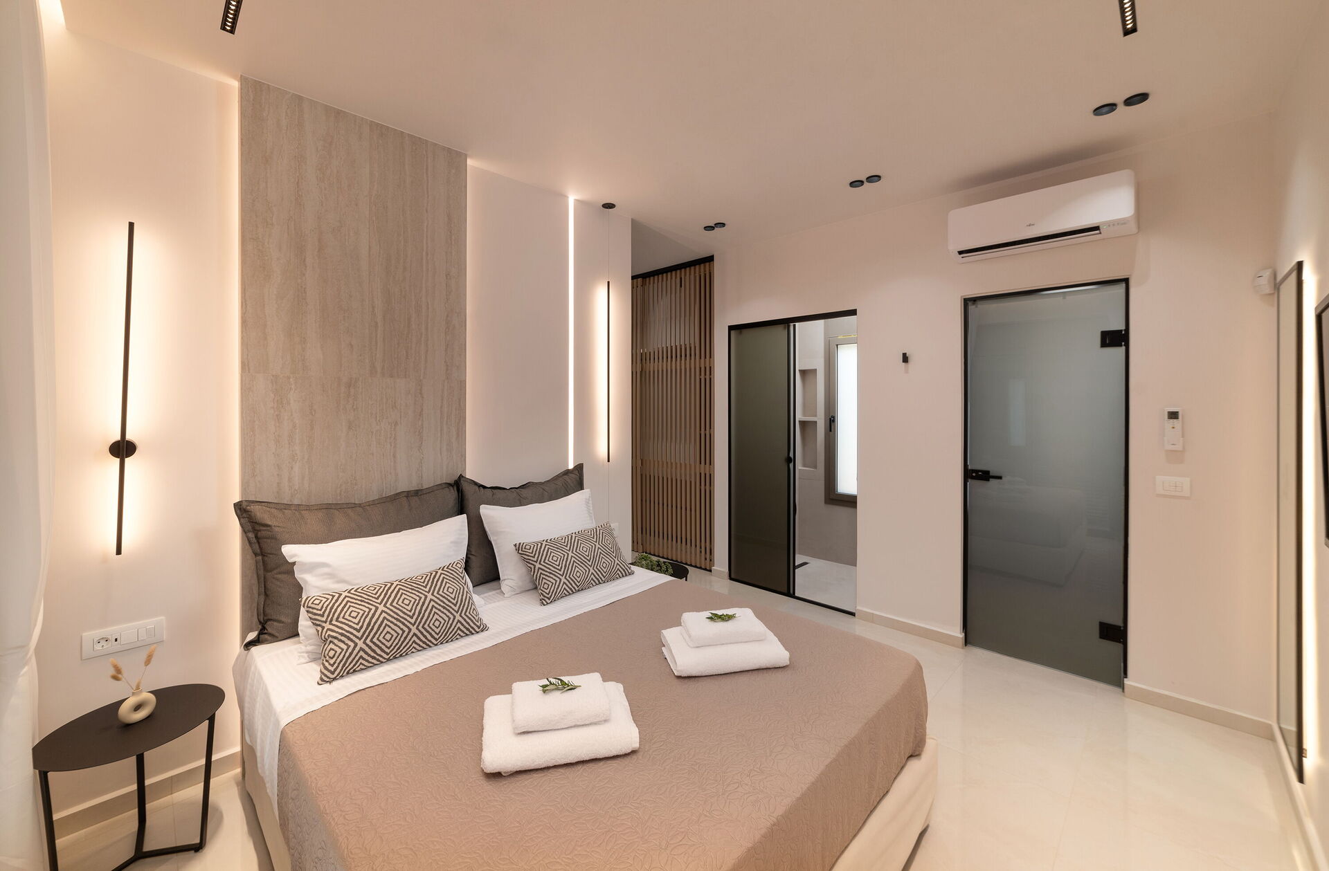 Diese sehr helle Luxusvilla ist ausgezeichnet durch schönes Design und Komfort: große Sorgfalt wurde auf die Auswahl der Einrichtung und die Aufteilung der Räume gelegt. Sowohl im Innenbereich als auch im Aussenbereich wurde alles darauf ausgelegt, den Gästen maximalen Komfort zu bieten. Dank seiner 4 Schlafzimmer bietet die Villa bequem Platz für bis zu 7/8 Personen. Im Aussenbereich befindet sich ein großer Bereich, der zum Kochen und Essen im Freien ausgestattet ist und es den Gästen ermöglicht, die schönen Sonnentage der Insel Kreta zu genießen. Ganz zu schweigen von dem schönen Schwimmbad (mit Hydromassagebereich), das den Gästen exklusiv zur Verfügung steht und Erfrischung und Spaß für alle bietet.