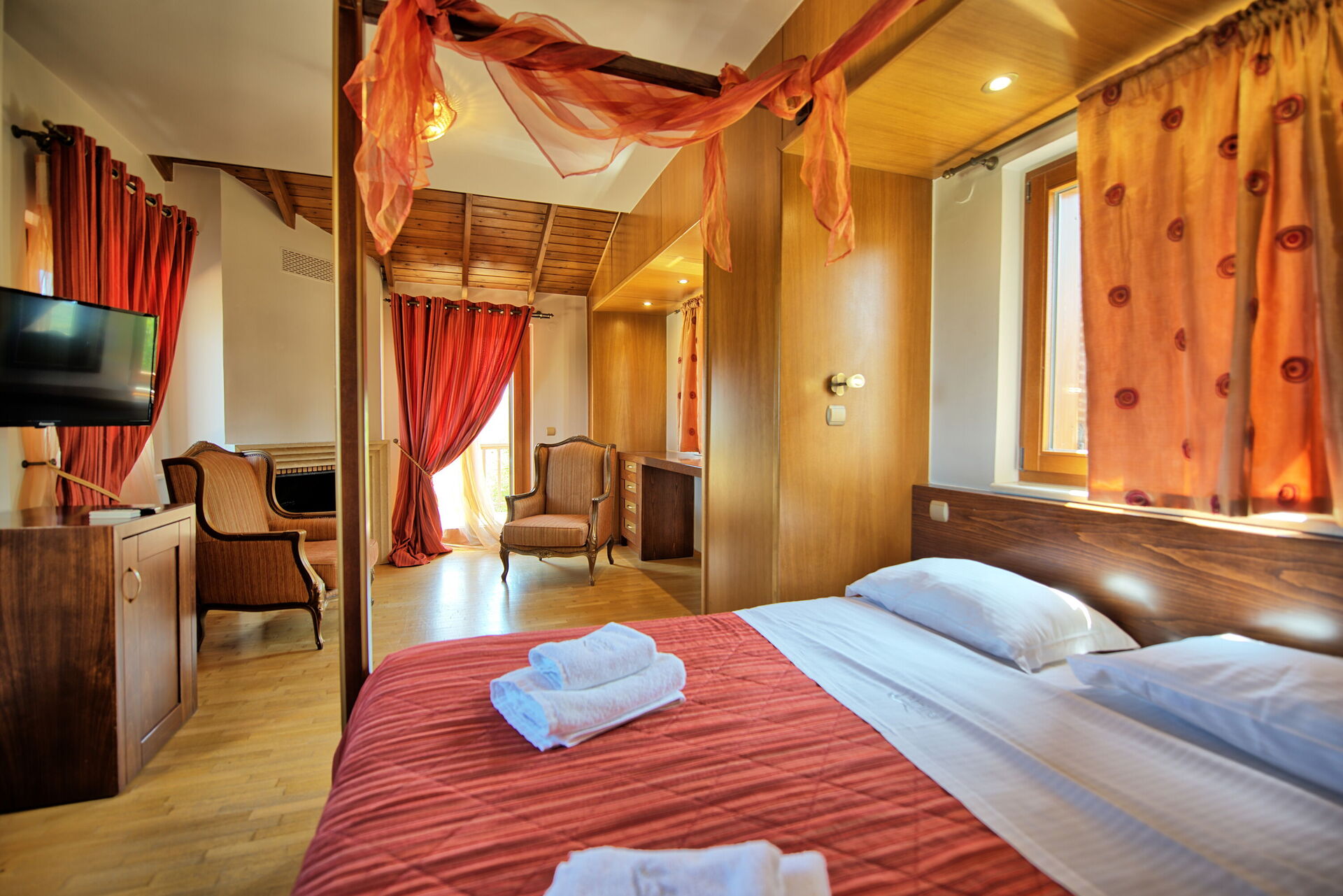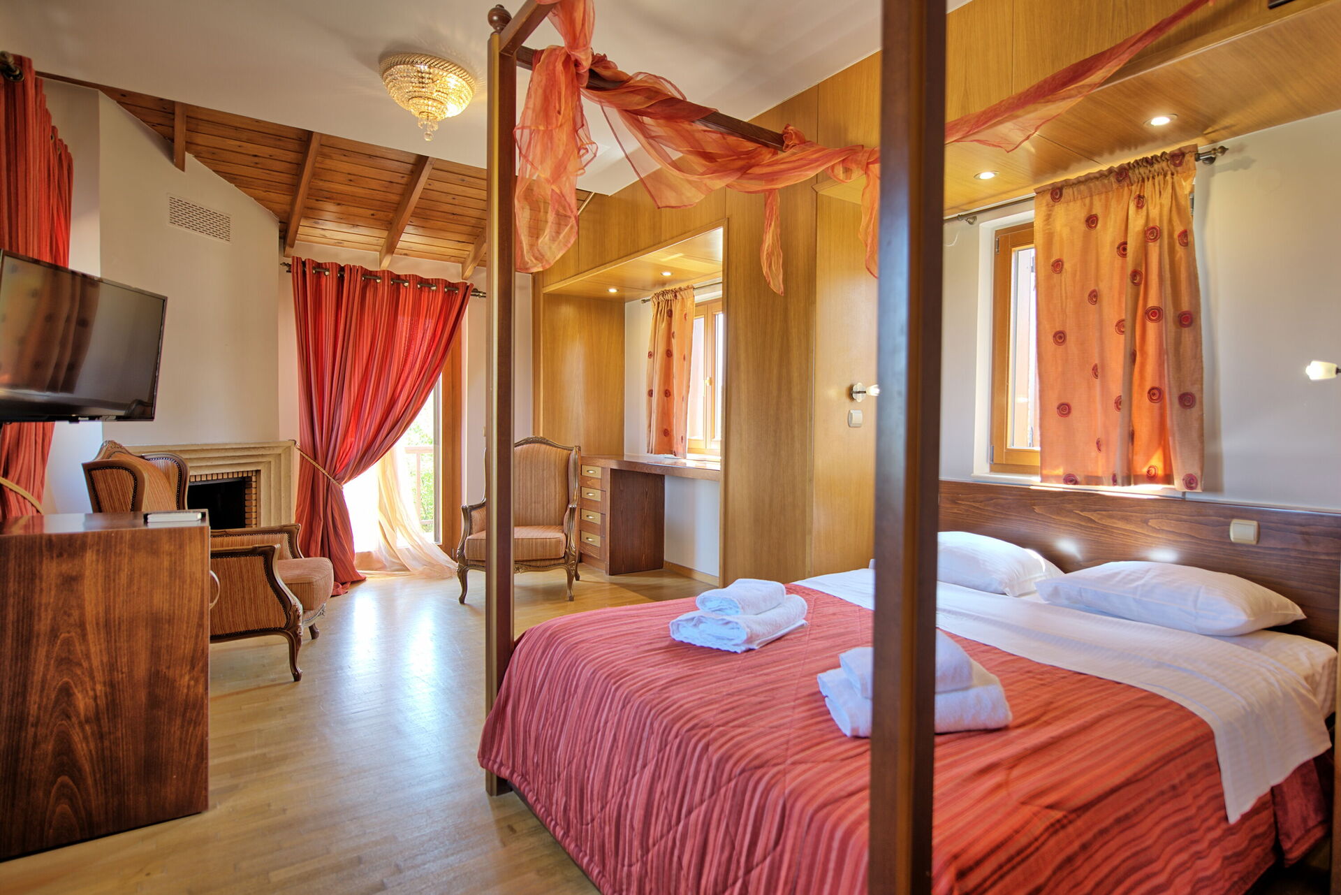 1. Stock: Doppelzimmer ( King size , Himmelbett), Bad mit Badewanne (Whirlpool).