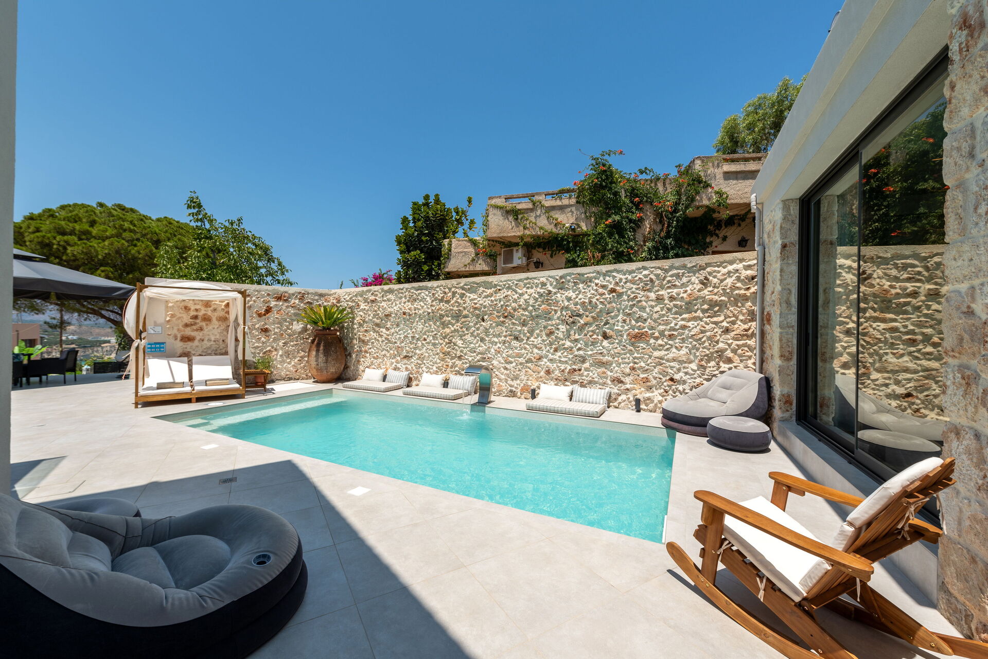 Great villa. The location was beautiful, within easy walking distance to Almyrida for a day out but not busy. It was perfect for a group of four to get away for a week and relax a bit. Inside, the decor was spectacular and the finish felt very high end. The kitchen was well equipped and had more gadgets than we needed. Leo & Michaelis were very friendly and attentive, with seamless check-in and out. Overall we’ve had a great time and will probably book again! Highly recommend.