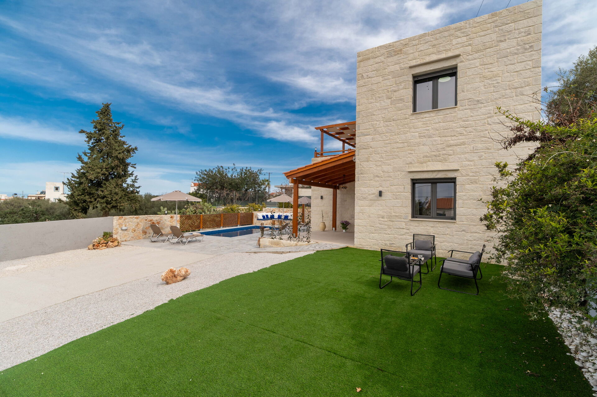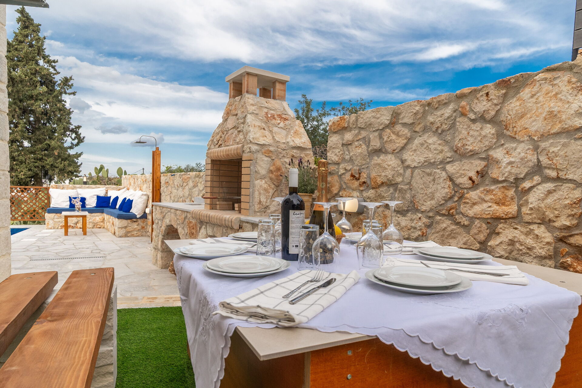 Im Außenbereich bietet die Villa einen privaten Bereich mit Grill und Tisch für Mahlzeiten im Freien und einen schönen privaten Schwimmbad zur Abkühlung an heißen Sommertagen. Wer das Meer liebt muss nicht weit reisen, um es zu erreichen: Das Meer ist nur 2 km entfernt und im hübschen Almyrida findet man Bars, Geschäfte und typische Tavernen am Meer.