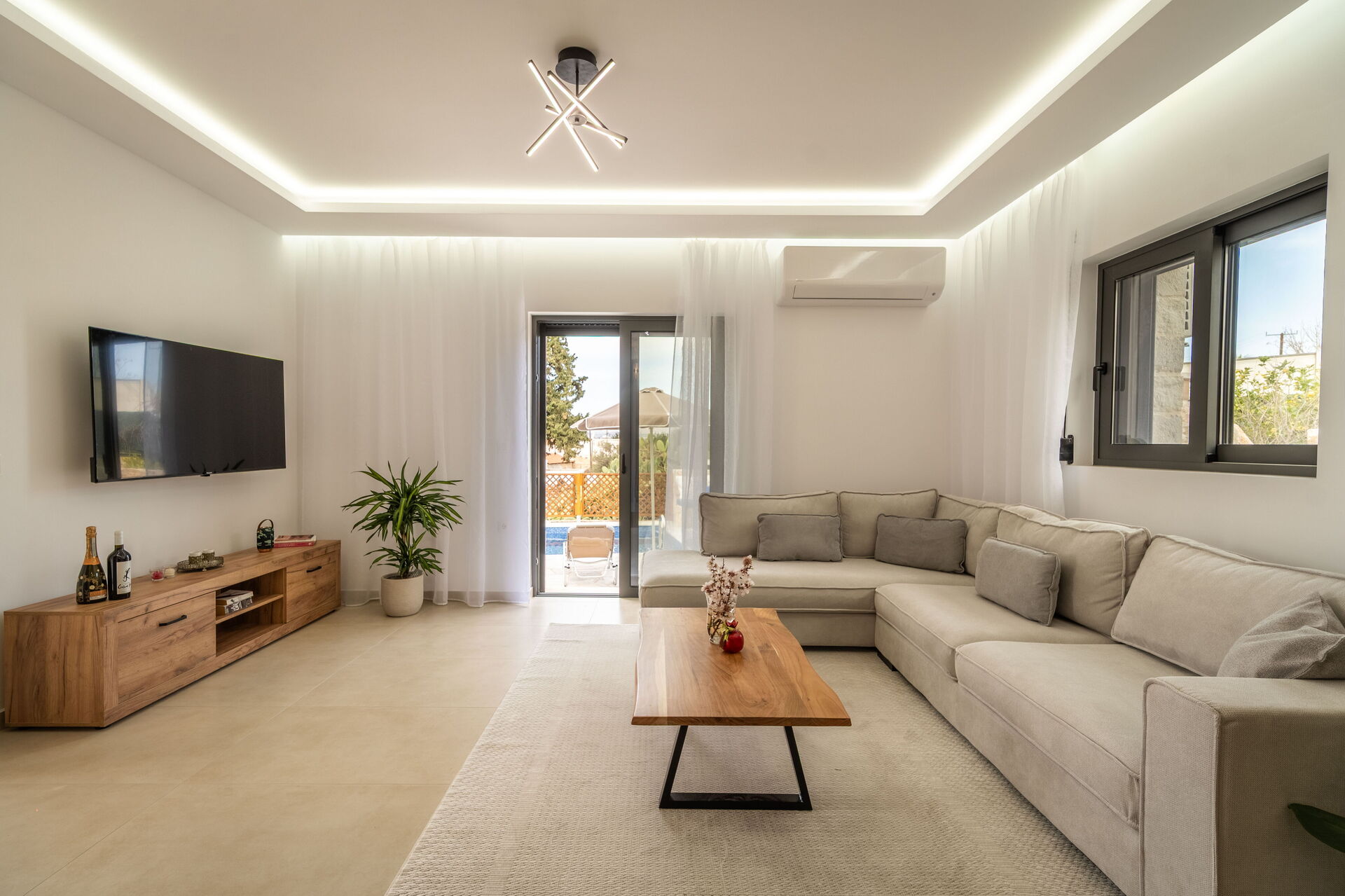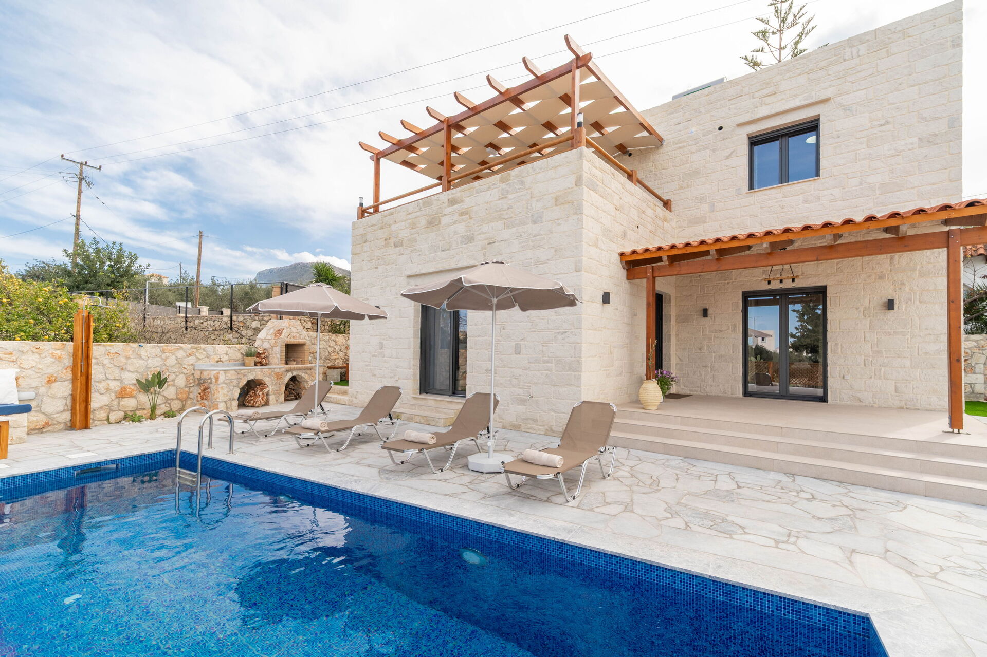 Villa Blini ist eine wunderschöne und neue Villa mit privatem Schwimmbad in bester Lage im kleinen Dorf Plaka in der Region Apokoronas auf Kreta.