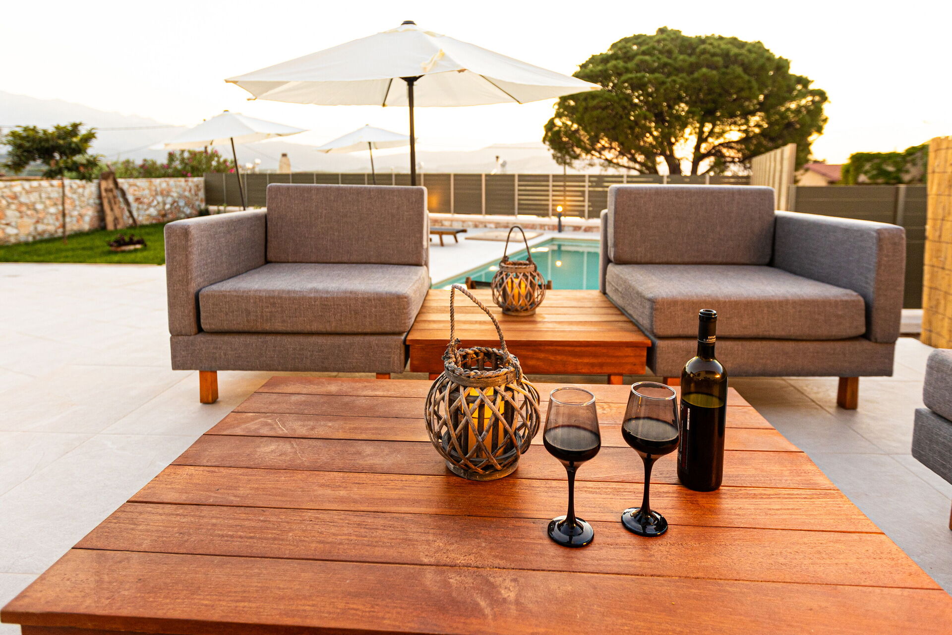 Im Außenbereich bietet die Villa Platon einen Panoramabereich mit Grill und Tisch für Mahlzeiten im Freien sowie ein neues Schwimmbad, das exklusiv den Gästen zur Verfügung steht und zum Entspannen und Genießen der griechischen Sonne einlädt.