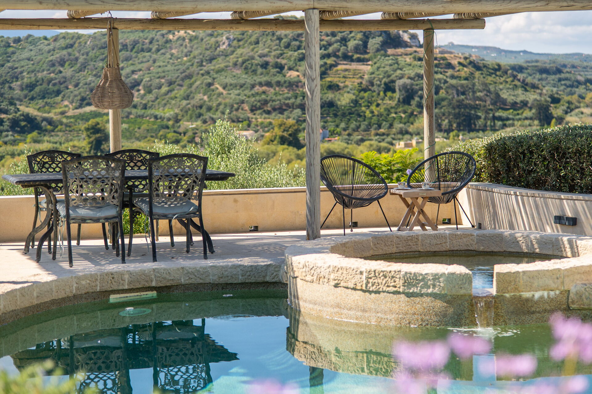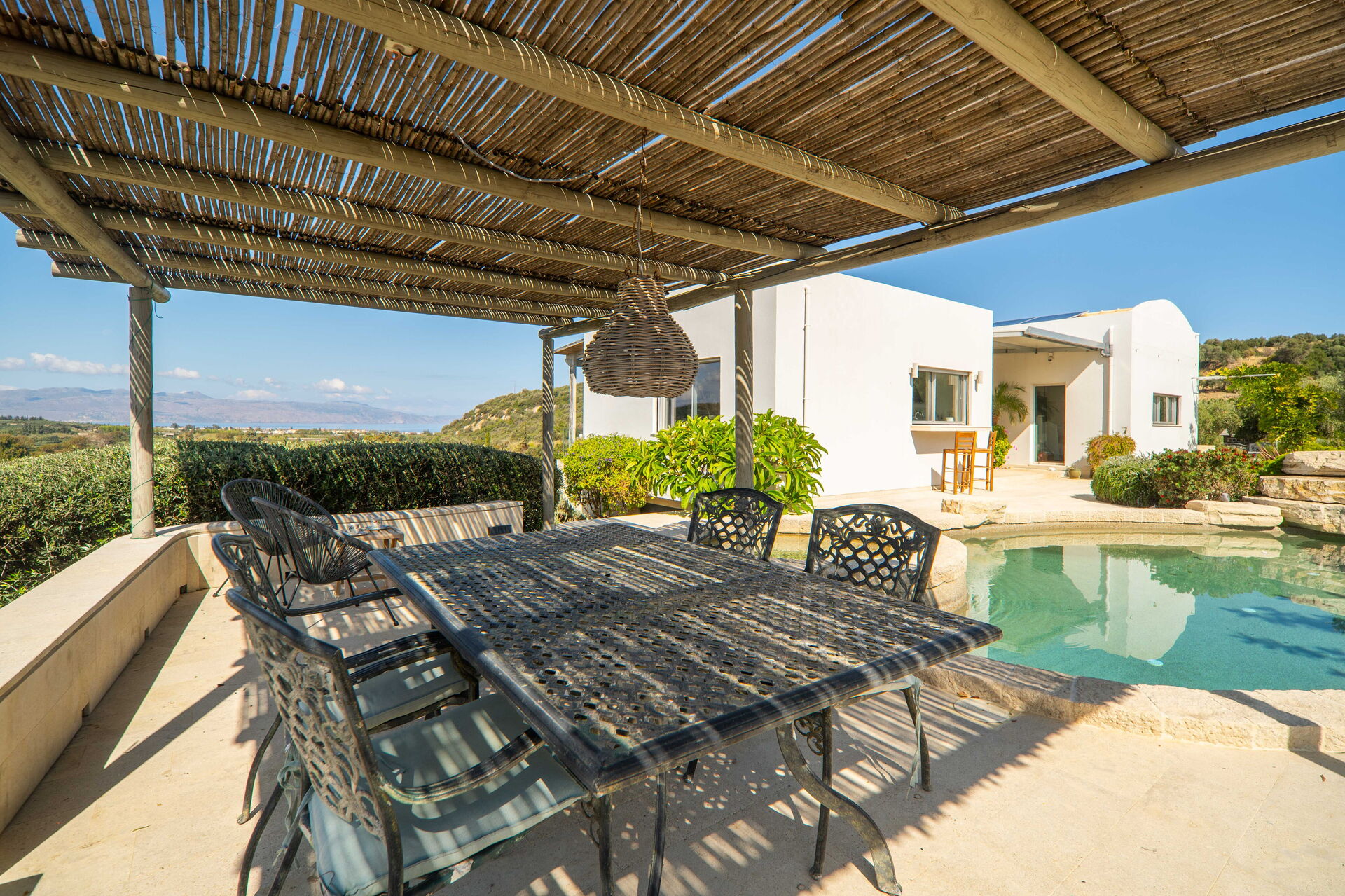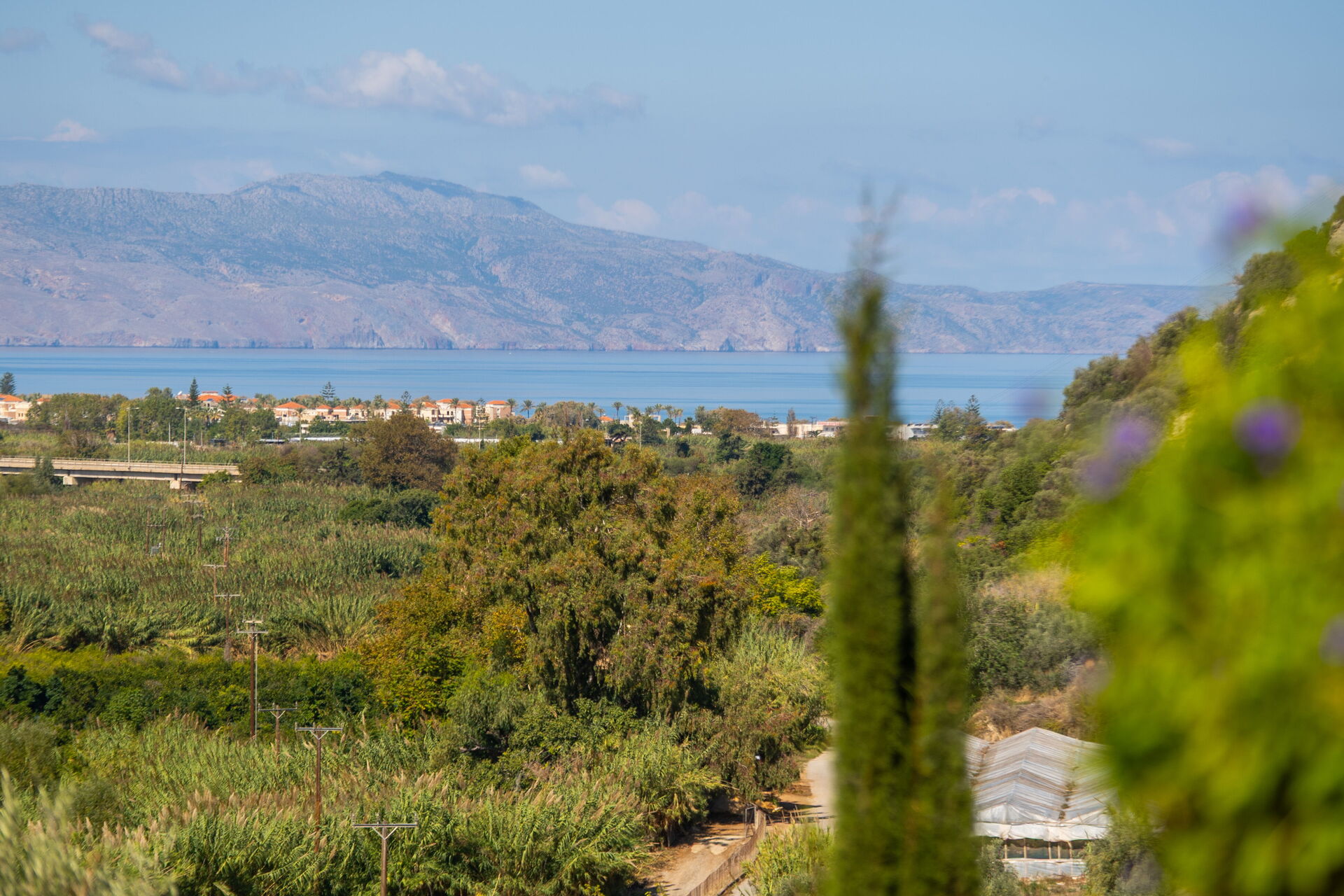 The villa offers amazing privacy. Situated on a hilltop location overlooking the beautiful valley and sea of Crete. Breathtaking.