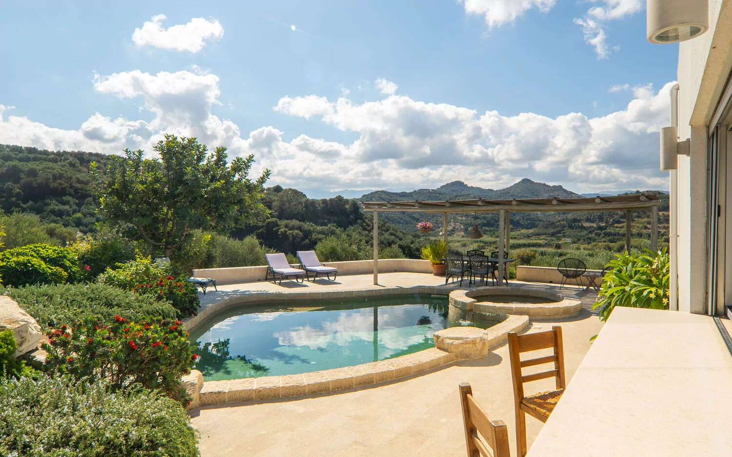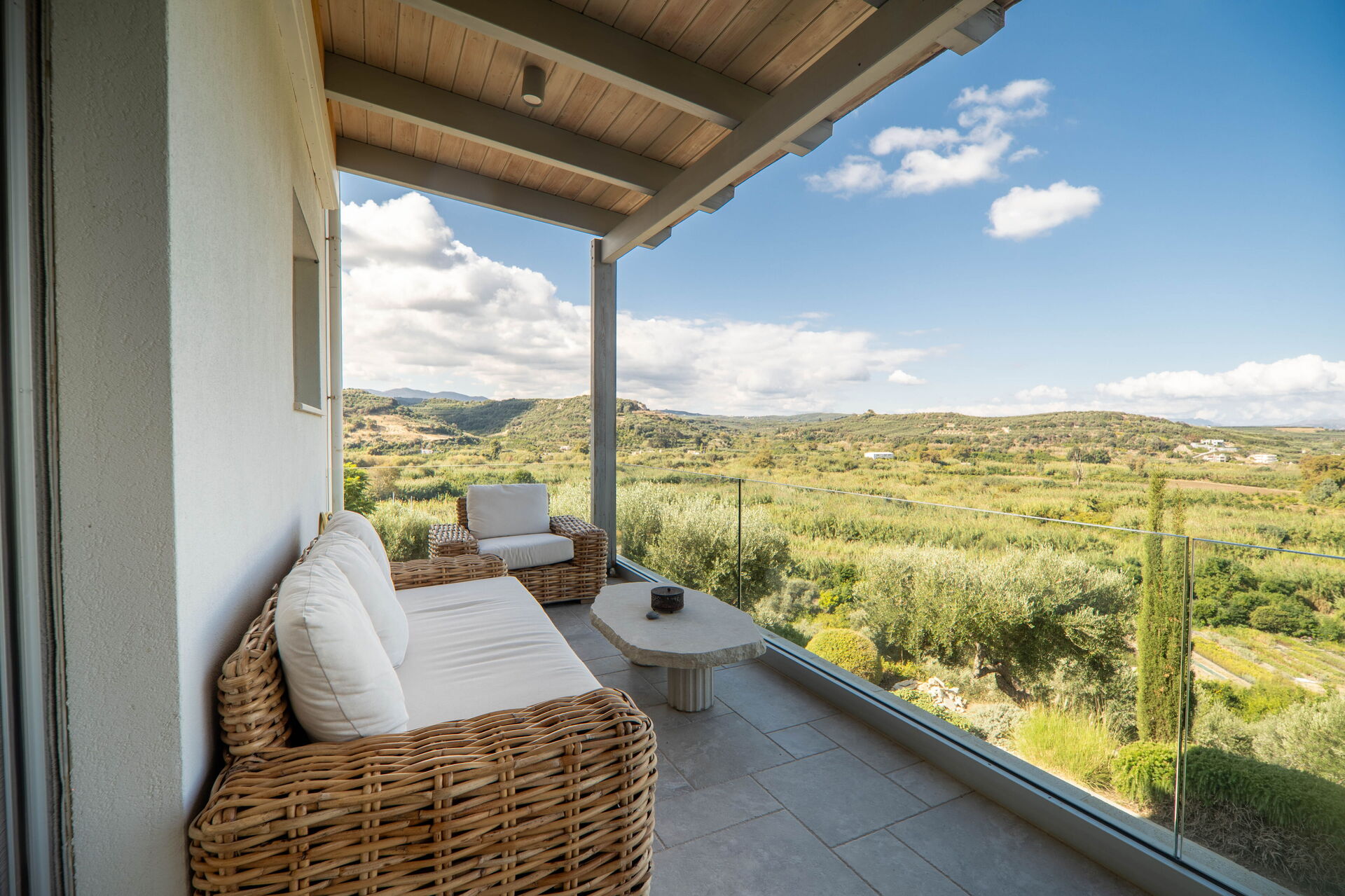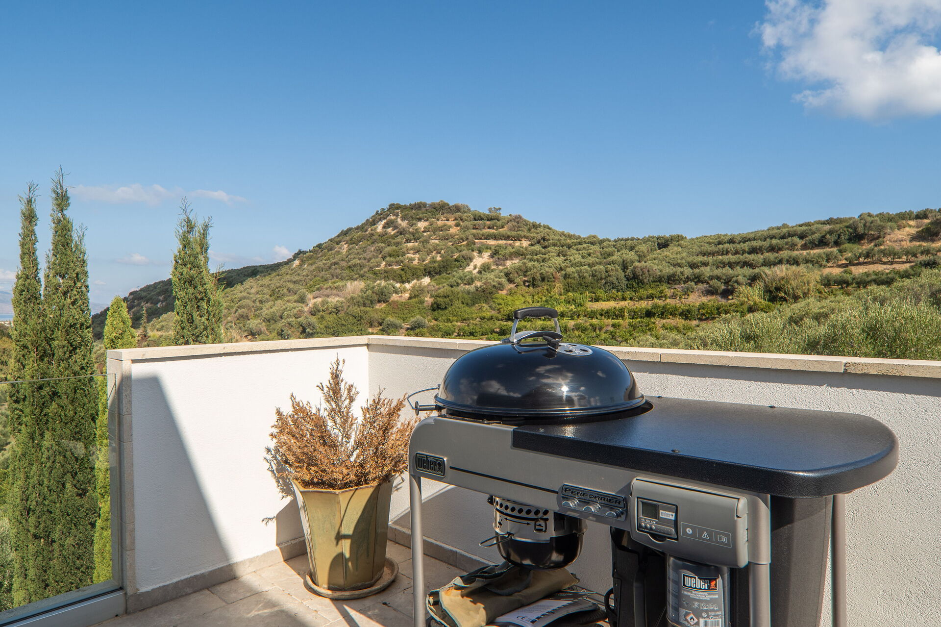 The villa offers amazing privacy. Situated on a hilltop location overlooking the beautiful valley and sea of Crete. Breathtaking.