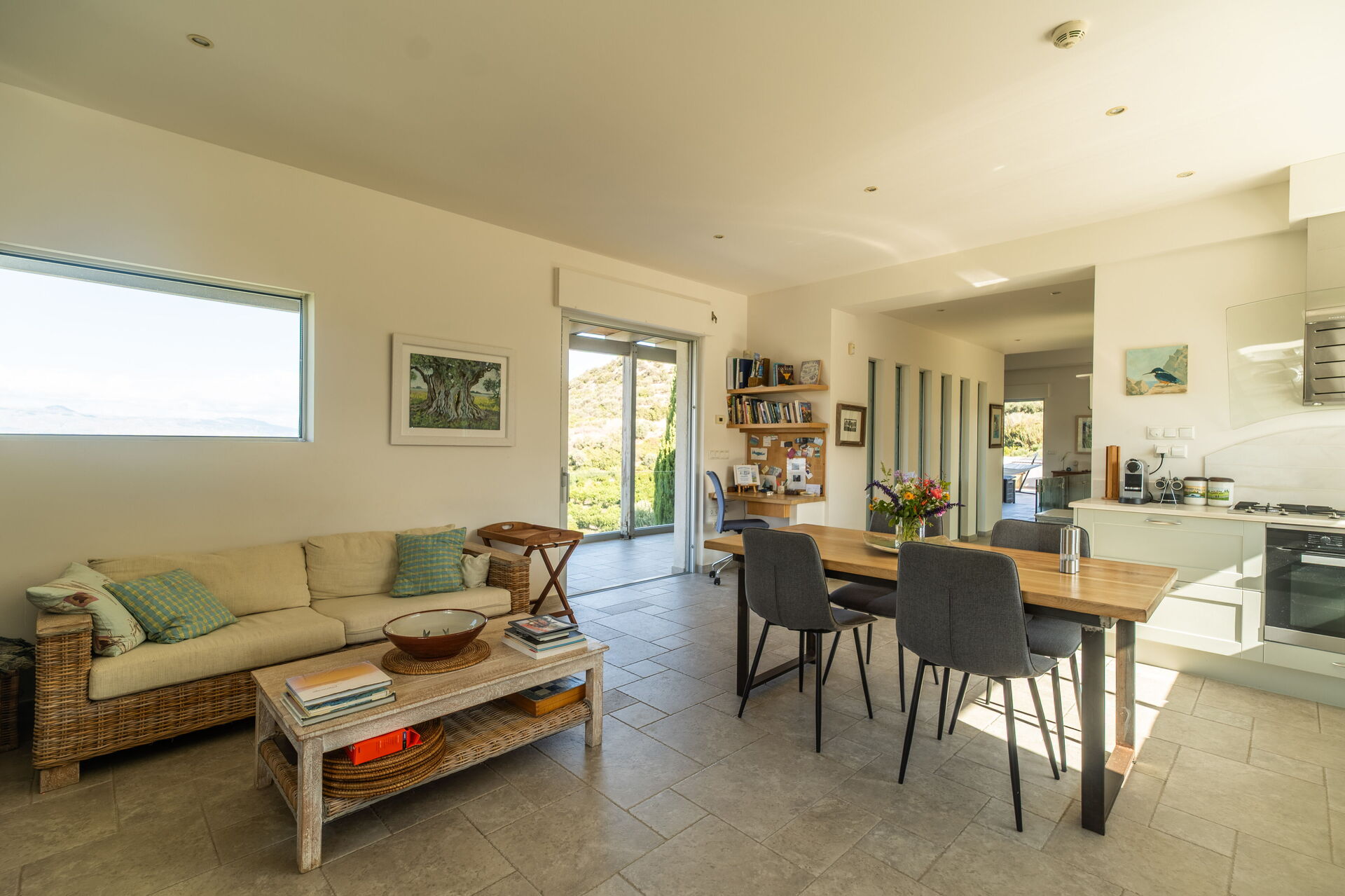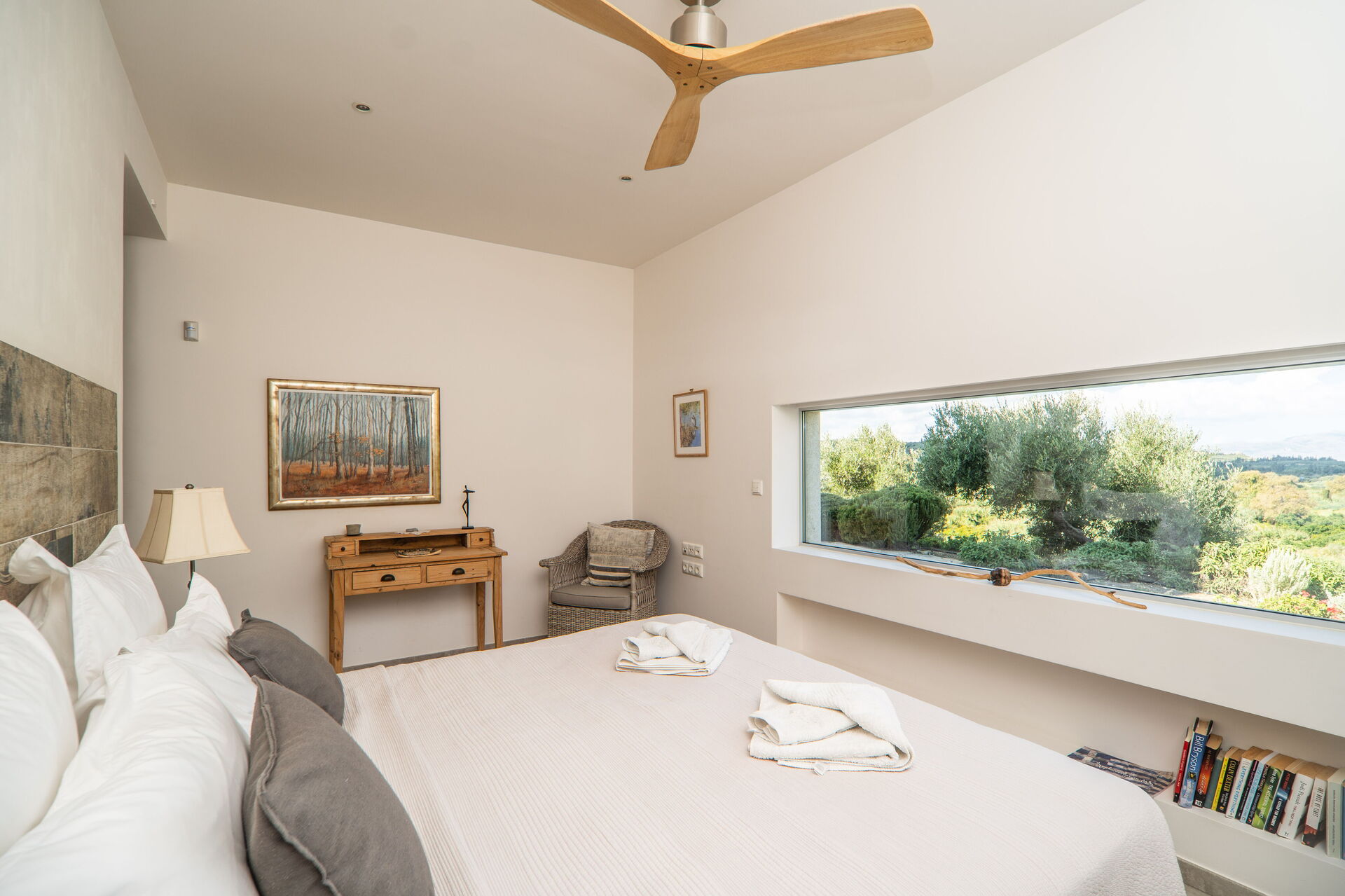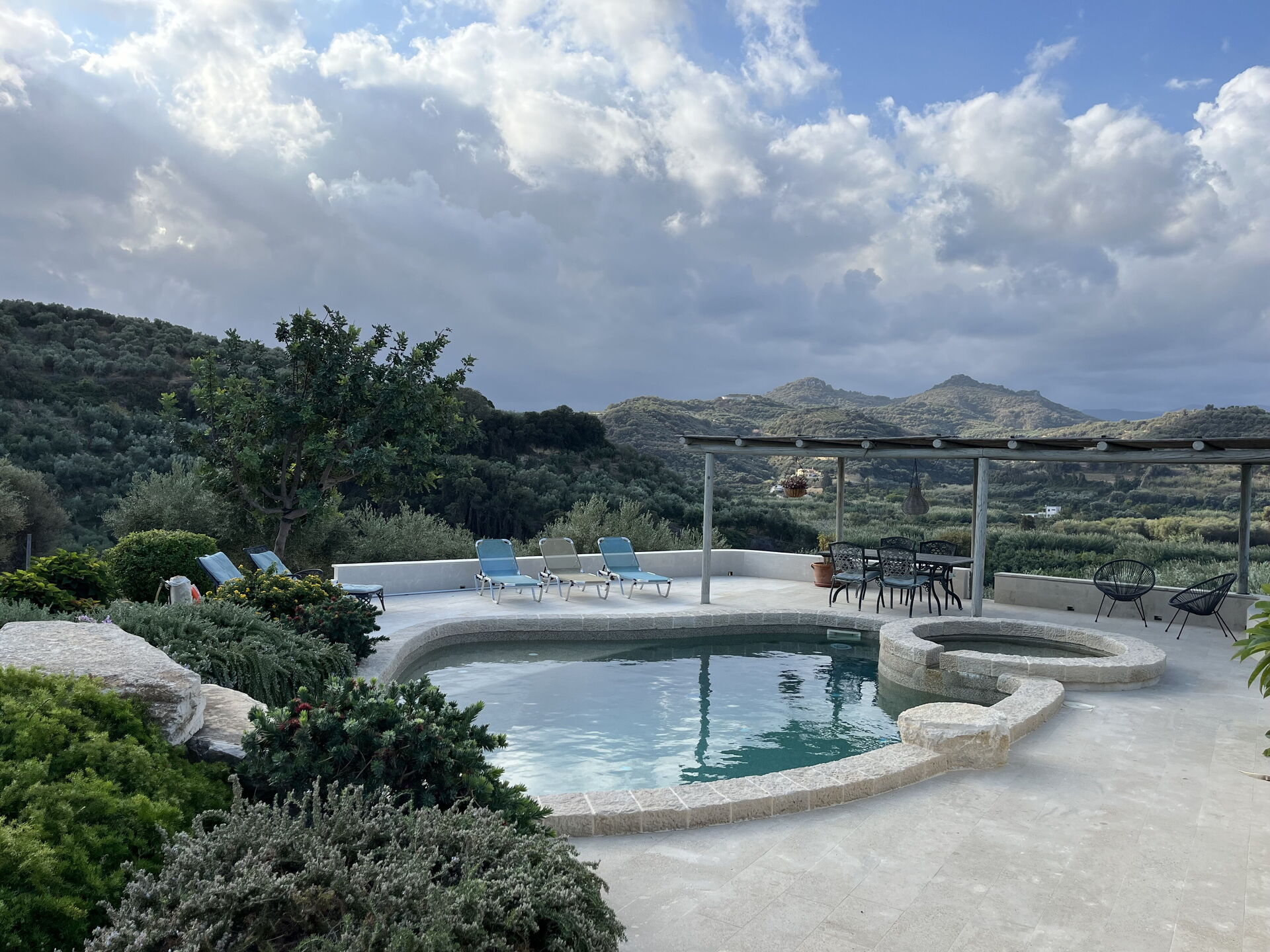 Great experience overall. Five stars. The villa and the property around are stunningly beautiful. Plus and this is a very important plus the owner Michael is a kind, helpful and pleasant person ready to resolve any issue if necessary. Spacious rooms and bedrooms each with views of surrounding mountains and valleys, modern and elegantly decorated with light colors and simple items, beautiful terrace with both a dining table and a coffee table, small and nicely shaped pool, many flowers , plants all around, olive trees few of them with a spot light that are a pleasure to watch at night. All showing a very high standard indeed. Small items to improve: pool towels were not of the same standard as the rest of the villa. Some kitchenware (ex. pans) was not found super clean, in a very beautiful kitchen that indeed is full of useful and modern appliances. Finally one suggestion to Michael: if there were a way to open the gate at the bottom of the steep driveway it would avoid stopping in front of it while climbing up by car, and secondly an automatic gate closing when leaving the property would also avoid stopping each time you exit. Final comment: such a beautiful experience that we already miss it.