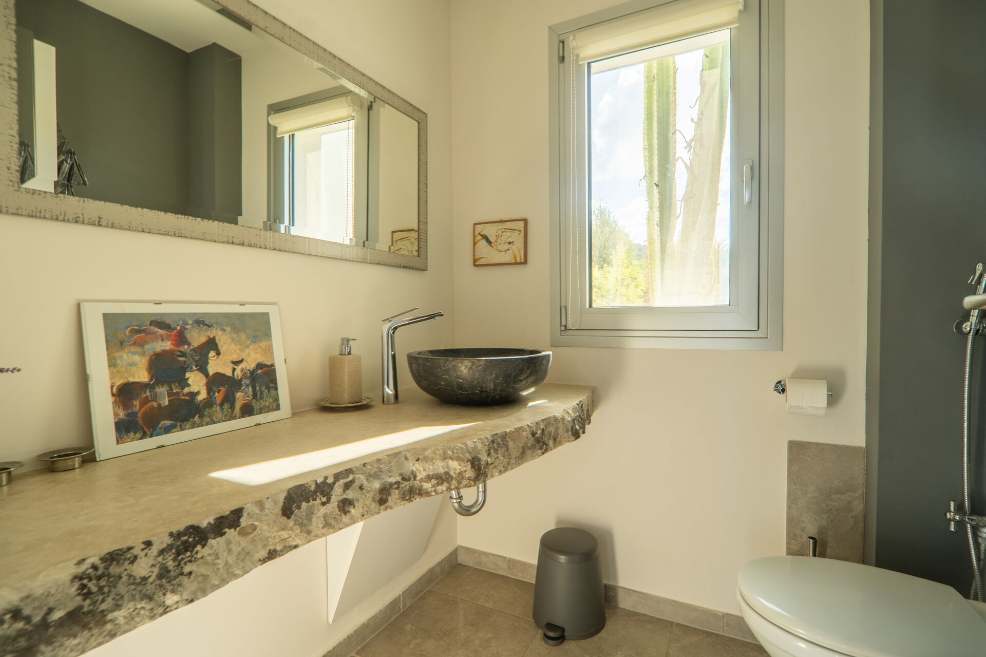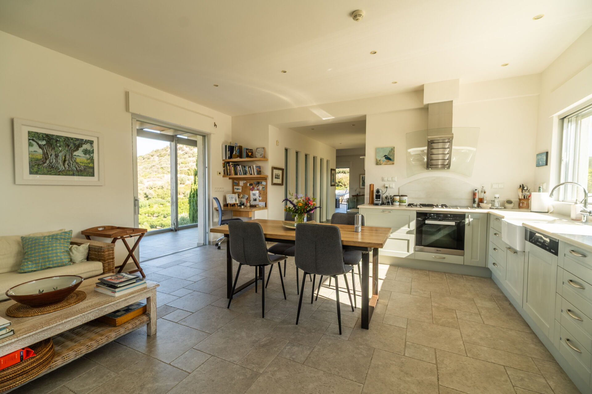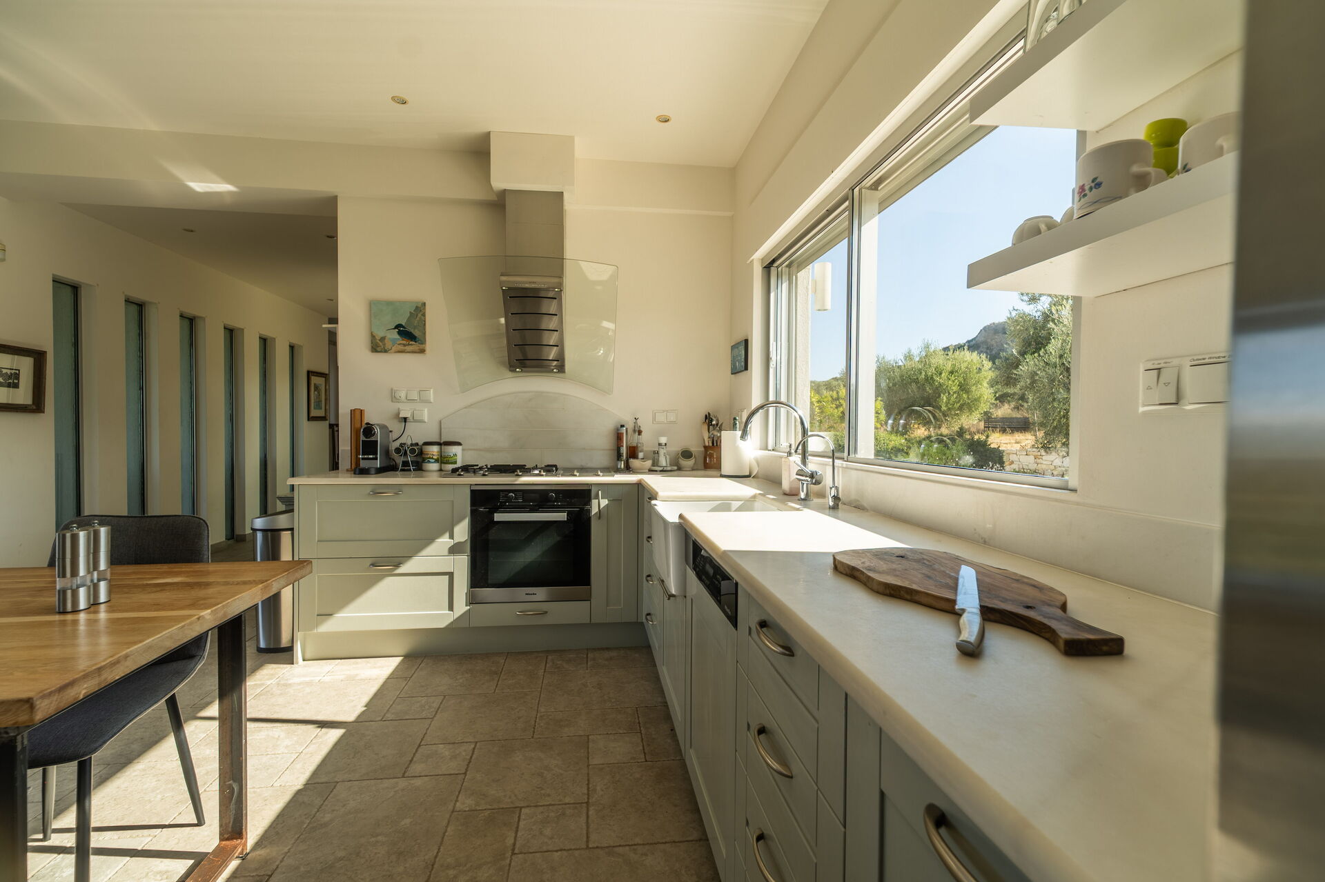 Great experience overall. Five stars. The villa and the property around are stunningly beautiful. Plus and this is a very important plus the owner Michael is a kind, helpful and pleasant person ready to resolve any issue if necessary. Spacious rooms and bedrooms each with views of surrounding mountains and valleys, modern and elegantly decorated with light colors and simple items, beautiful terrace with both a dining table and a coffee table, small and nicely shaped pool, many flowers , plants all around, olive trees few of them with a spot light that are a pleasure to watch at night. All showing a very high standard indeed. Small items to improve: pool towels were not of the same standard as the rest of the villa. Some kitchenware (ex. pans) was not found super clean, in a very beautiful kitchen that indeed is full of useful and modern appliances. Finally one suggestion to Michael: if there were a way to open the gate at the bottom of the steep driveway it would avoid stopping in front of it while climbing up by car, and secondly an automatic gate closing when leaving the property would also avoid stopping each time you exit. Final comment: such a beautiful experience that we already miss it.