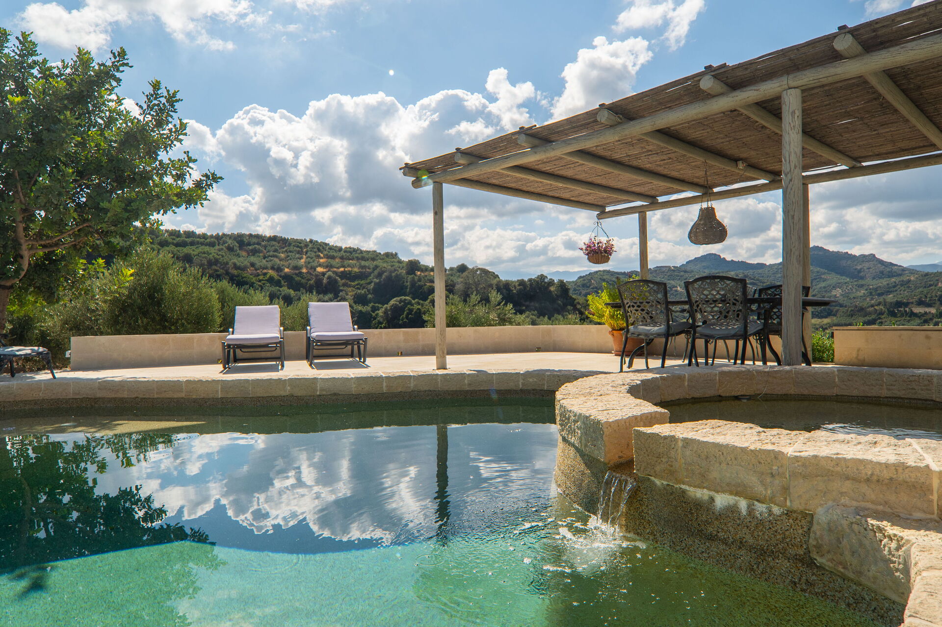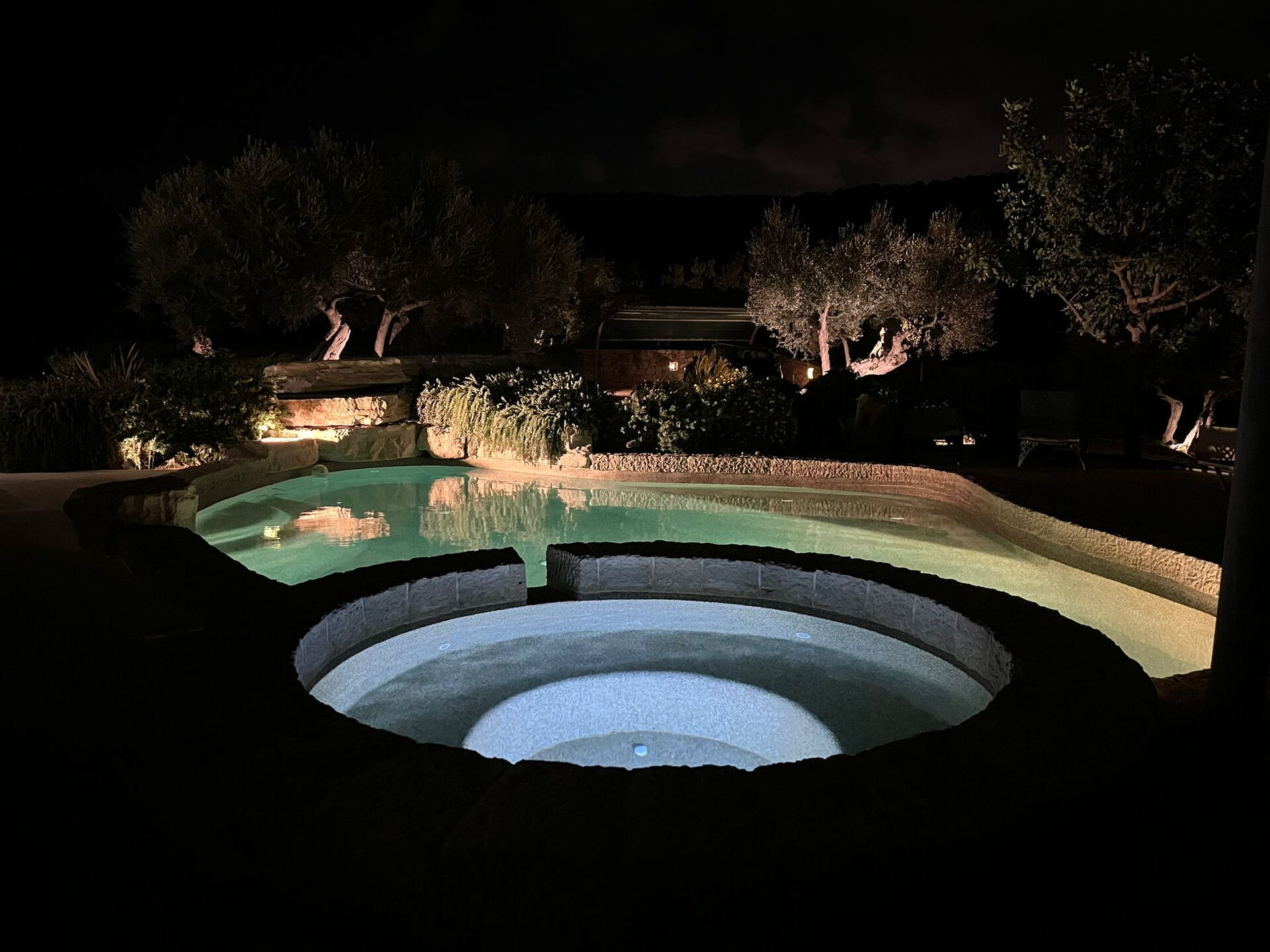 Diese prächtige Villa verfügt über ein besonderes Schwimmbad mit Wasserfall und runder Wanne mit Hydromassage. Für den Komfort des Schwimmbadbereichs sorgen die Panoramaterrassen und ein Pavillon, der mit Gartenmöbeln und einem Esstisch ausgestattet ist, um im Freien zu essen und die schönen Tage zu genießen.