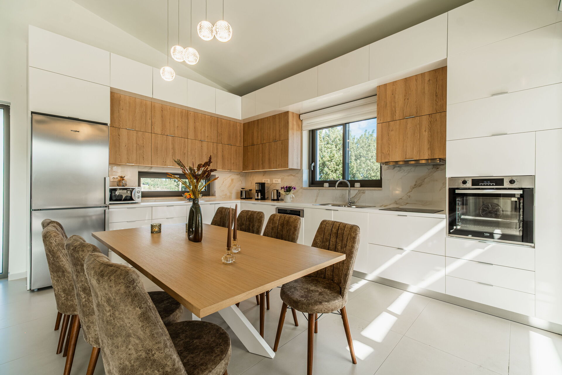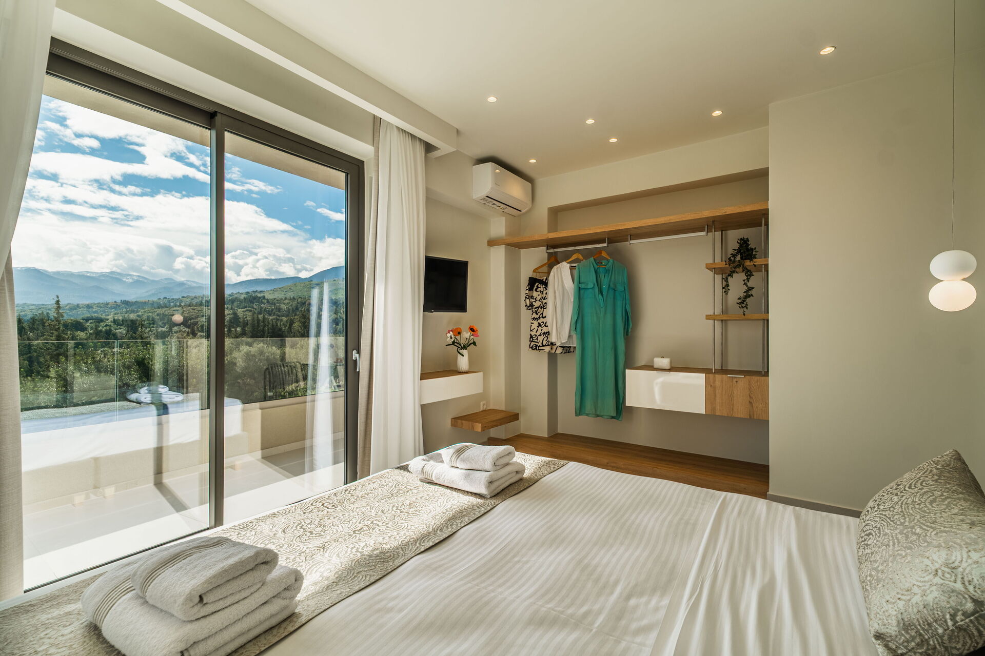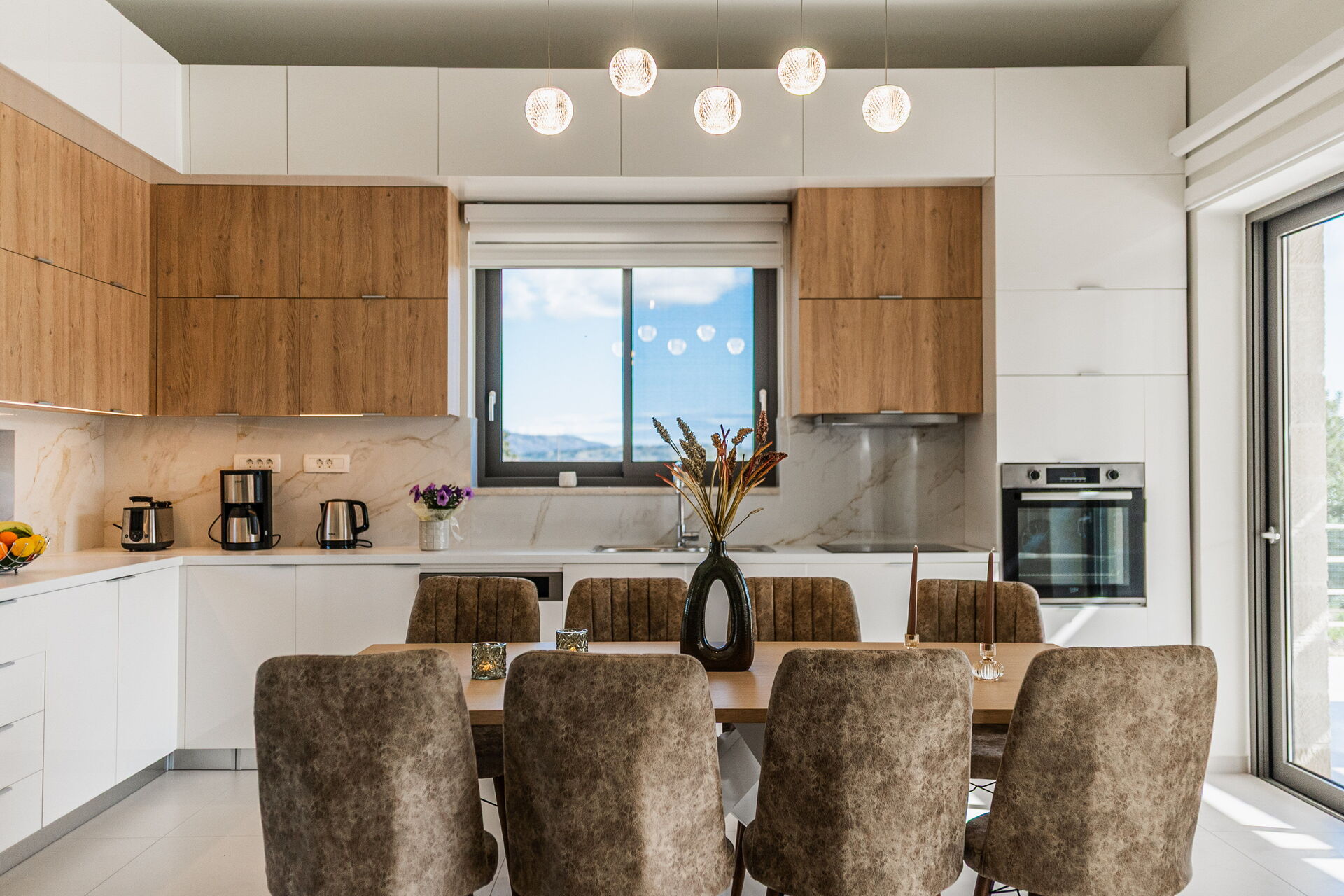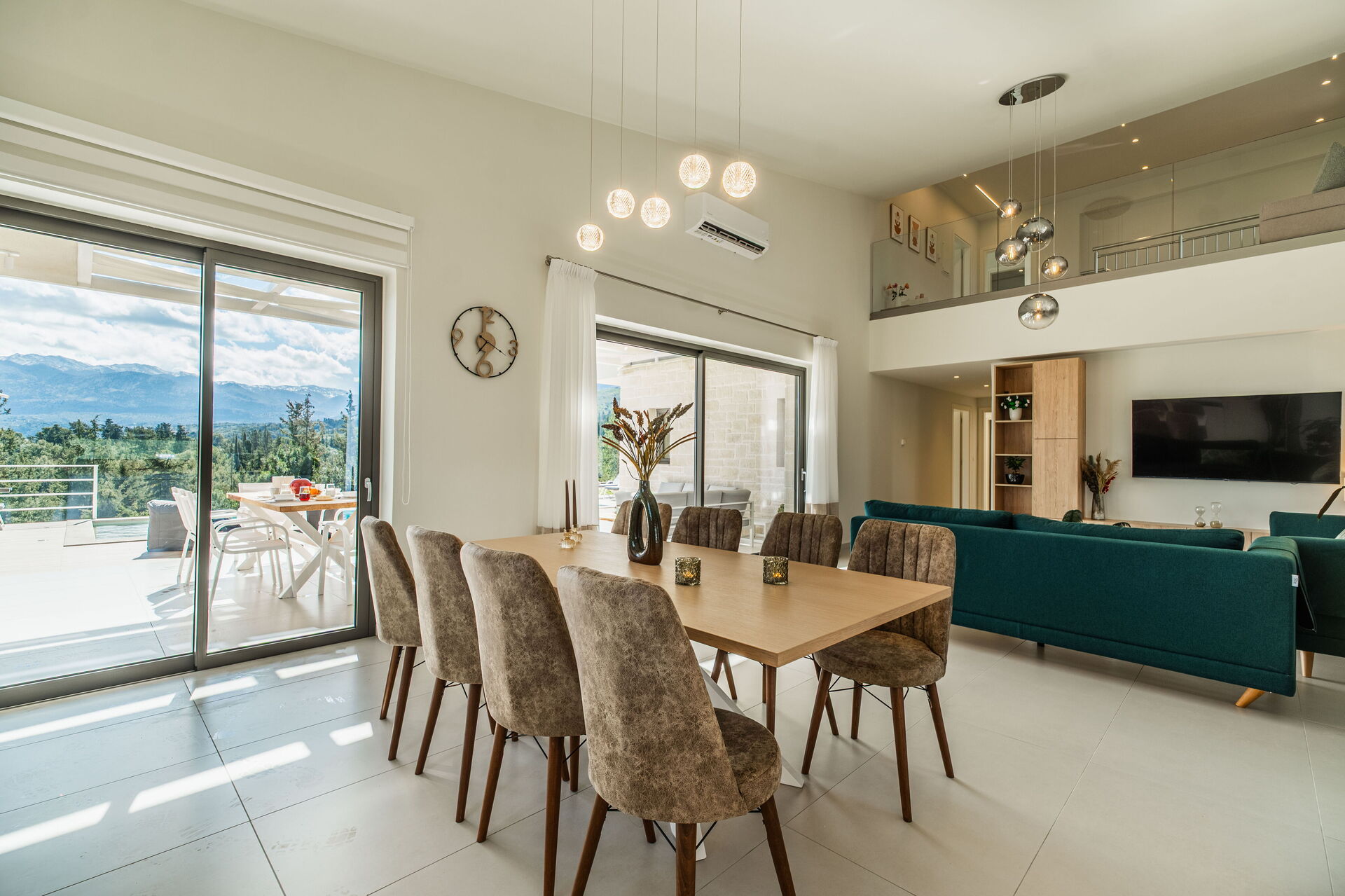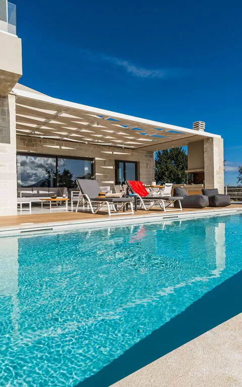 Dank seiner 4 Schlafzimmer und einem Schlafsofa bietet es Platz für 8/10 Personen in einer sehr einladenden, hellen Panorama - Umgebung. Im Aussenbereich stehen den Gästen ein wunderschöner Bereich für Mahlzeiten im Freien und ein großes Schwimmbad mit Panoramablick auf die Landschaft und das Meer zur Verfügung.