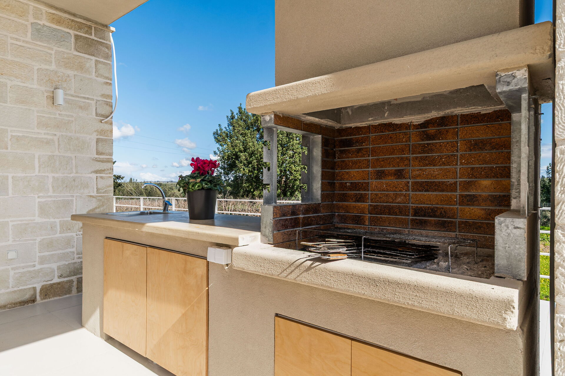 - Außenbereich, der zum Essen im Freien ausgestattet ist