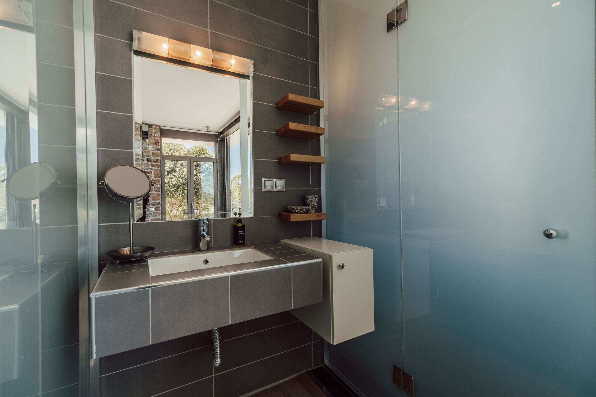 The bedrooms and bathrooms are excellent. The beds were a little soft for us, but very comfortable. Linen and towels were of high quality. The showers have both a rainfall overhead and a separate hand hose. The villa design, construction and furnishings are of high quality and well maintained. There is a washing machine and separate tumble drier in the lower ground floor which were very useful.
