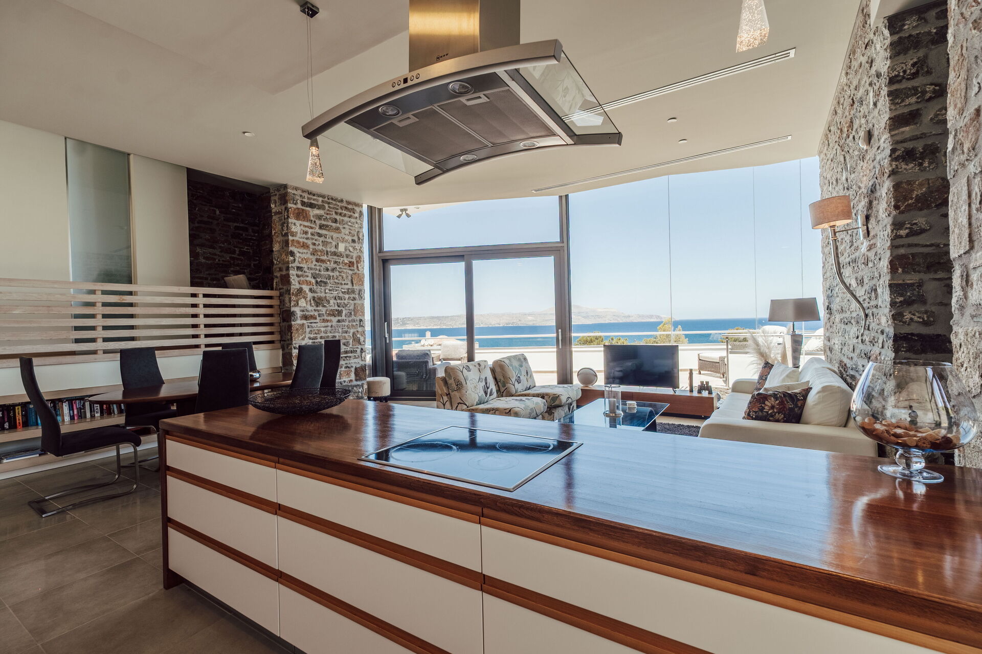 A stunning villa. Every bedroom was fantastic with comfortable beds. Master bedroom had the most beautiful views, as did the balcony and pool. The outdoor kitchen is very special and there was the lovely touch of herbs growing behind the worktop so you could use these if you wanted. At night this whole outdoor area was beautiful. There is a small cove a 10 minute walk away - steep hill back but I liked the walk. Almyrida was a ten minute walk away and all the restaurants were fabulous. Beach there is also fabulous. I’d advise taxi back at night as it’s pitch black on road, but it was only 6/7 euros for four of us or 10 euros if five of us. The coffee shop and mini market, a couple of minute walk away, was fabulous for coffee and ice creams. Very friendly. Stroll into Almyrida for a bigger shop that sells fruit, salad, veg and a greater selection of food. Our host, Vivian, was very helpful and even organised a perfectly placed table on the beachfront at Elia & Thyme for my mum’s birthday, along with the most dazzling and delectable dessert. The villa really is gorgeous and well placed.