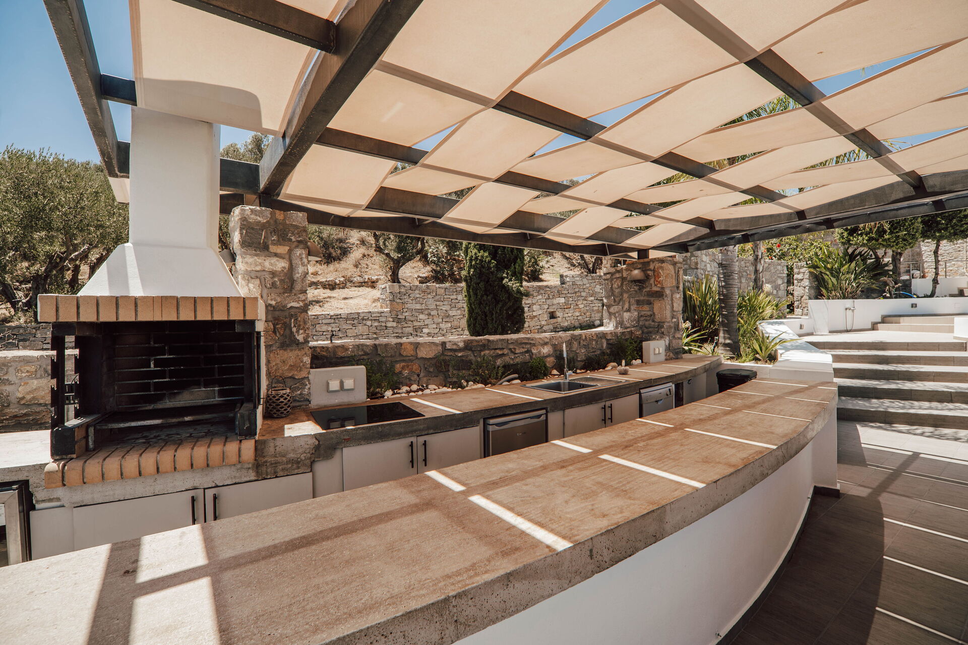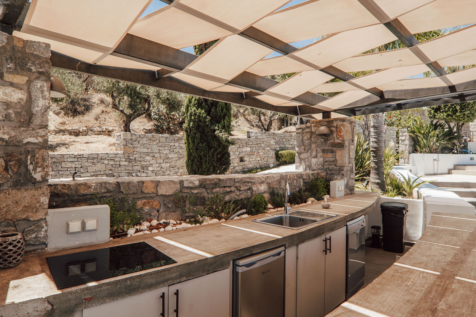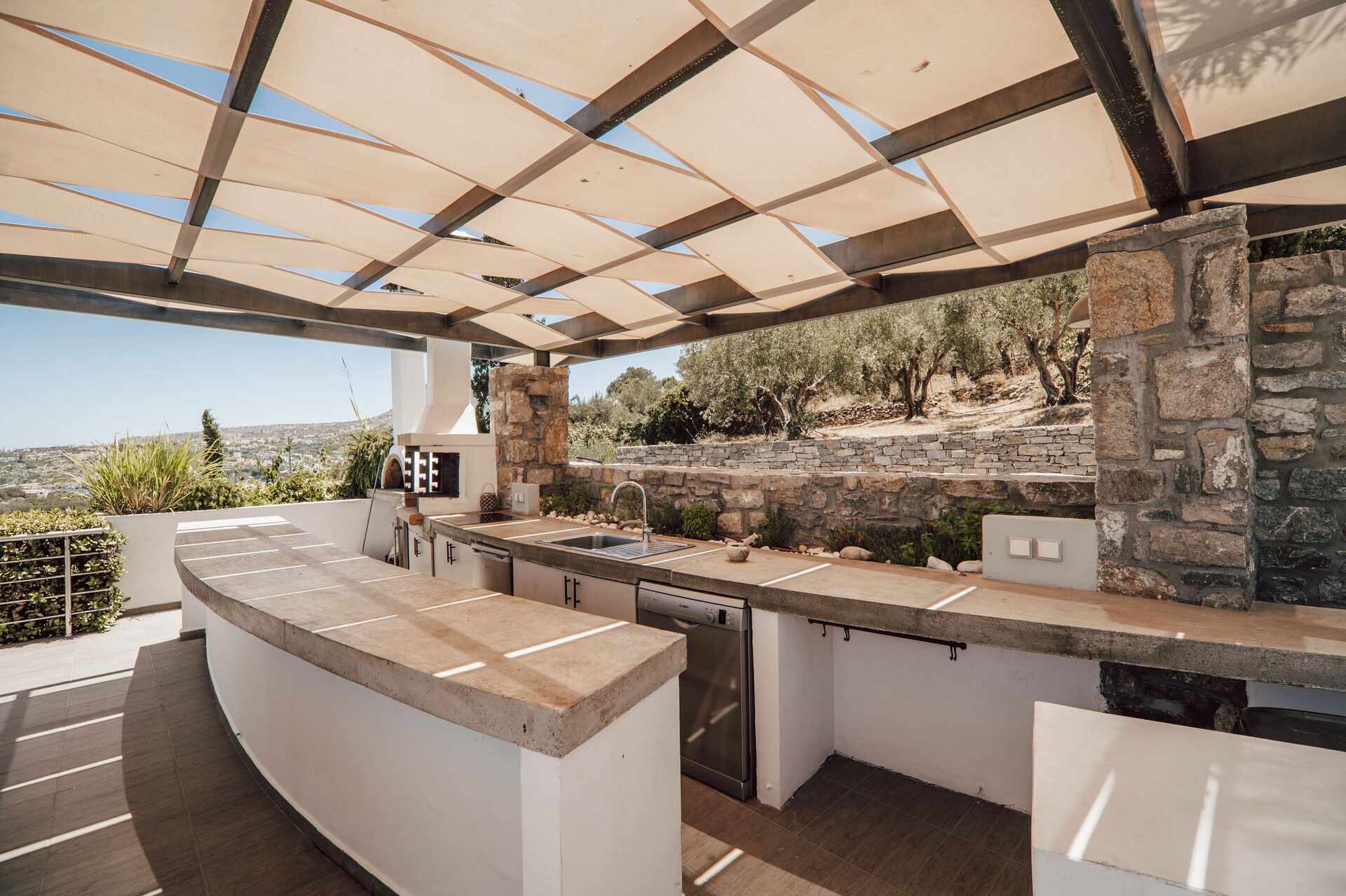 The indoor kitchen is well equipped with everything you need. The coffee machine uses paper filters of which there was a plentiful supply (not always the case in other villas we have rented). There was a welcome pack of the basics (milk, butter, bread etc) including sufficient washing and dishwasher tablets to last the whole stay.