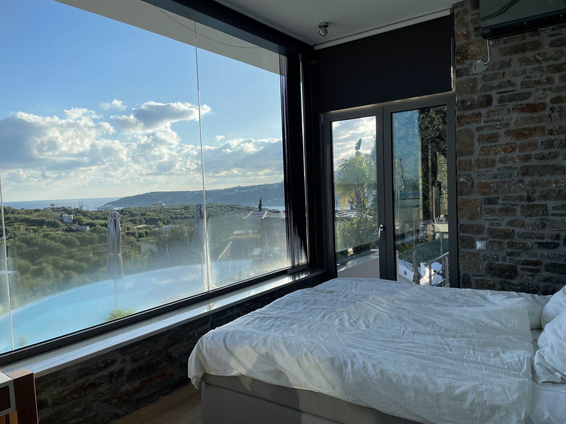 As a group of friends we had a fantastic time at this property. It is well kitted out, modern feeling, aircon in all the bedrooms. Great views and a lovely pool. A short 10min walk into Almyrida for eating out. We especially loved the outdoor kitchen dining area down by the pool and had all our meals down there. Vivian did a fantastic job with advice and recommendations and the few niggles we had were quickly sorted. Would love to come and stay again!